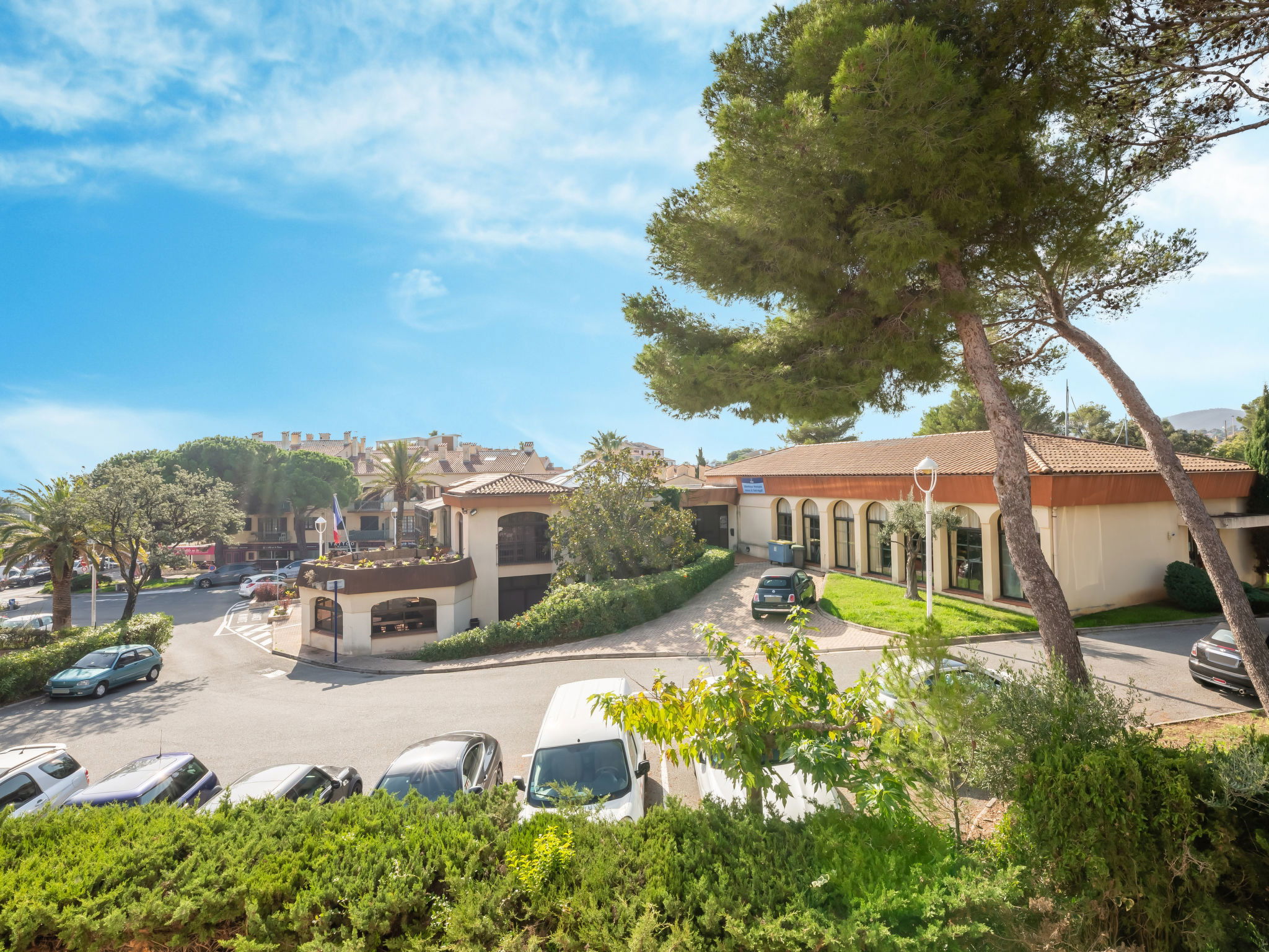 Apartment block "Timothée", 4 storeys, surrounded by trees. In the resort 190 m from the centre of Saint Aygulf, in a quiet position, in the heart of the city, 350 m from the sea, 500 m from the beach. In the complex: lift. Single garage. Shop, grocery 200 m, supermarket 5 km, restaurant 2 km, bakery 200 m, 1 minute walk to the centre, sandy beach "Les Esclamandes" 3 km pebble beach "Calanque des Louvans" 500 m, park "Areca" 900 m. Sports harbour 2 km, golf course (18 hole) 8 km, riding stable 1 km. Nearby attractions: Luna Park, Aqualand 4 km, Fréjus 7 km, Saint Raphael 9 km, Saint Tropez 30 km. Please note: car recommended. The keys‘ handover takes place by the agency in Saint Aygulf.