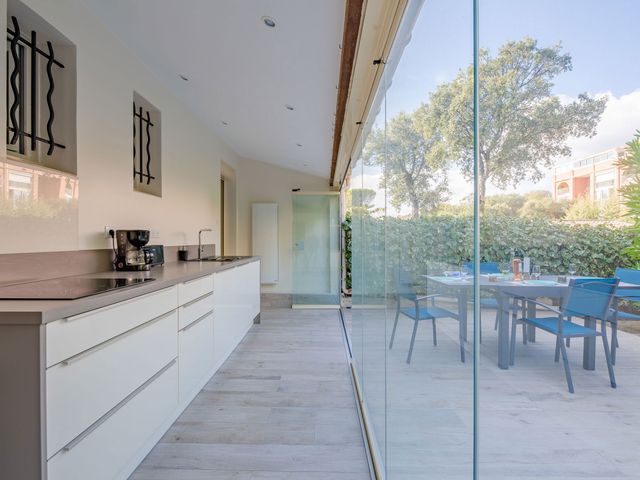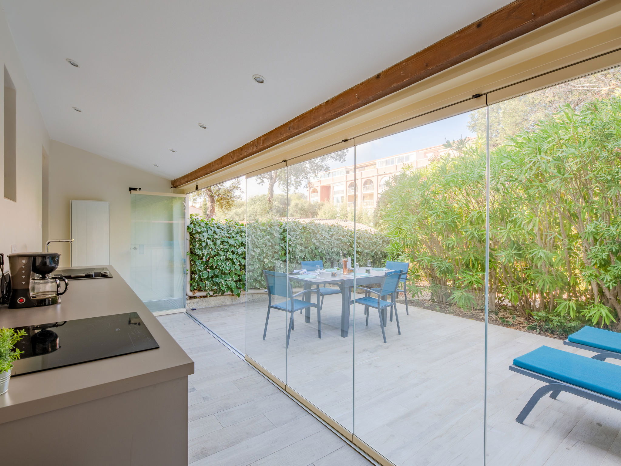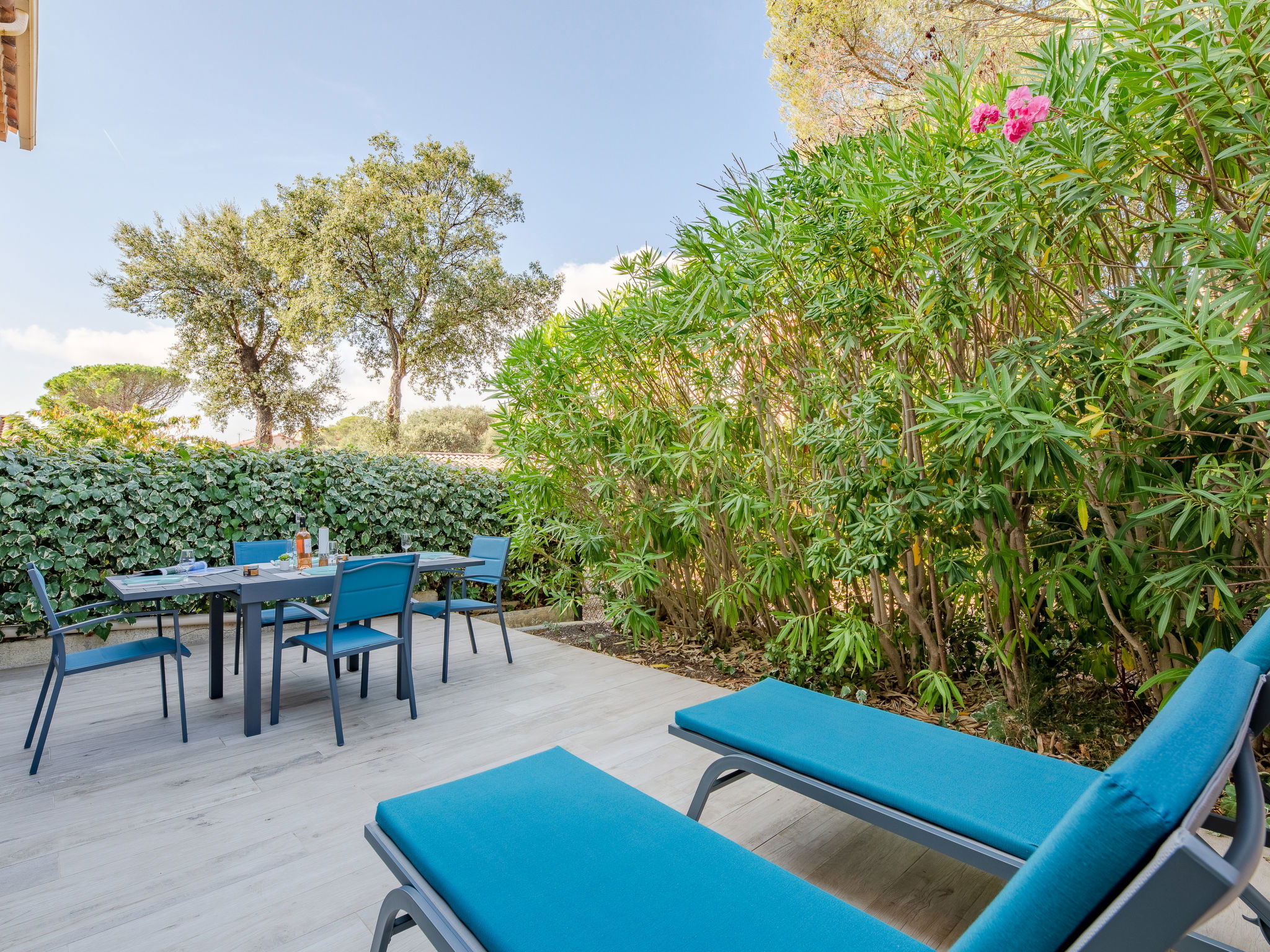 Residence "Le Mas des Calanques". In the resort, in a quiet position, 150 m from the sea, 150 m from the beach. Parking. Grocery 400 m, restaurant 500 m, bakery, café 400 m, sandy beach "Plage de Saint Aygulf" 1 km, park "Areca" 250 m, diving center 7 km, outdoor swimming pool 6 km. Marina 700 m. Nearby attractions: Aqualand 5 km, Lunapark 5 km, Fréjus 6 km, St Tropez 30 km, Marineland 55 km. The keys‘ handover takes place by the agency in Saint Aygulf.