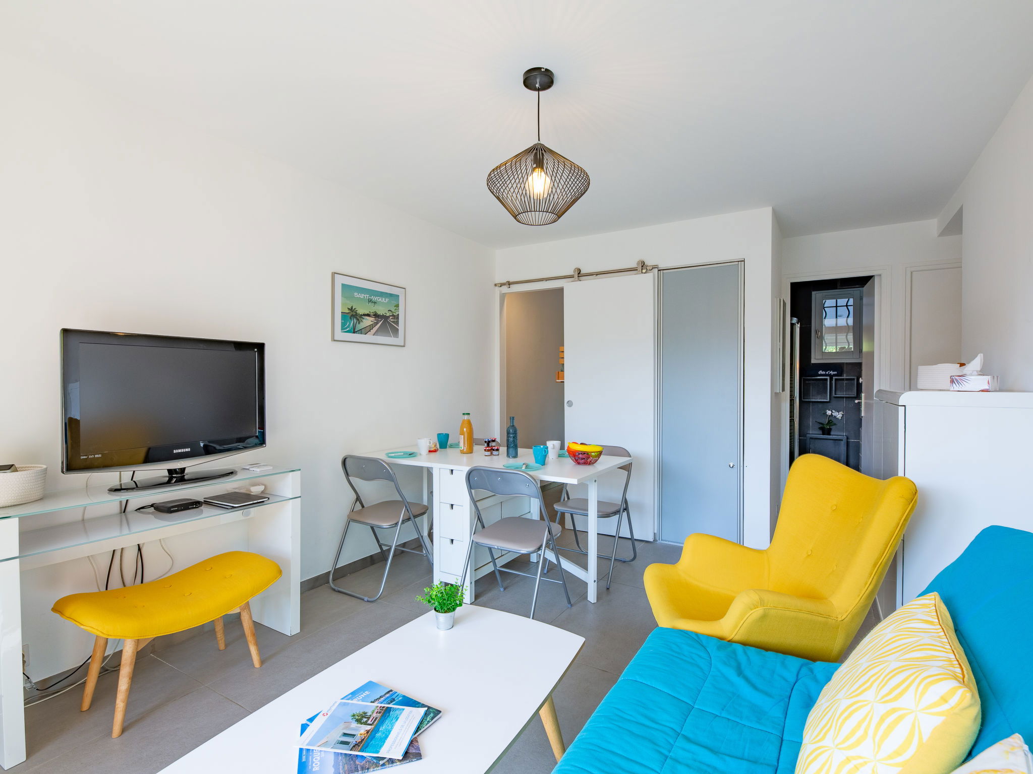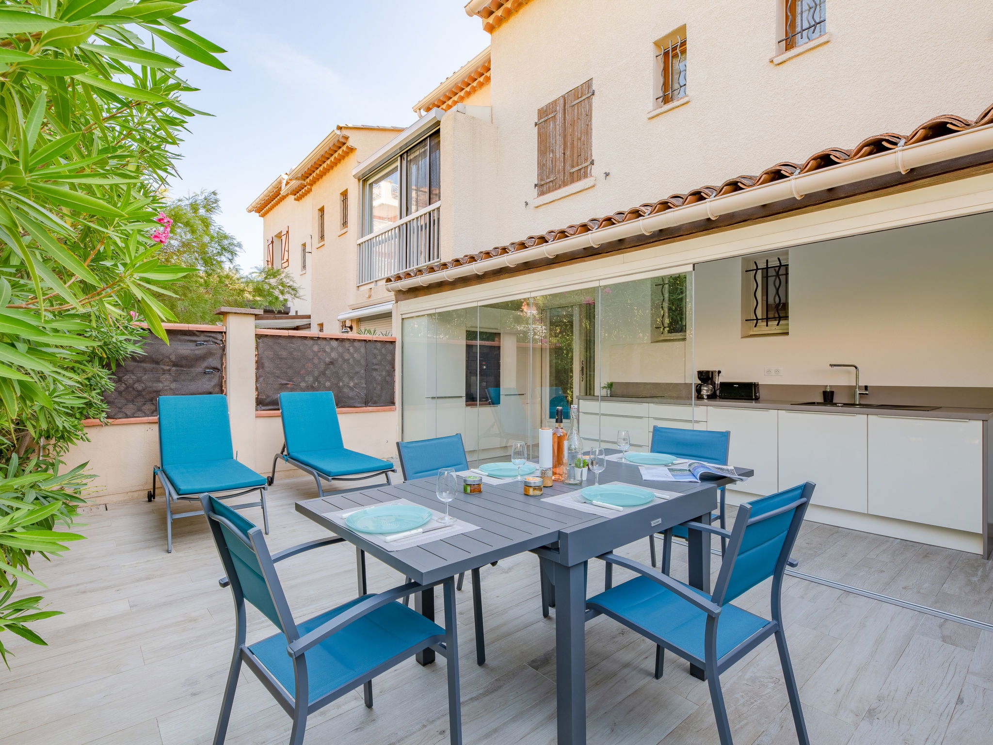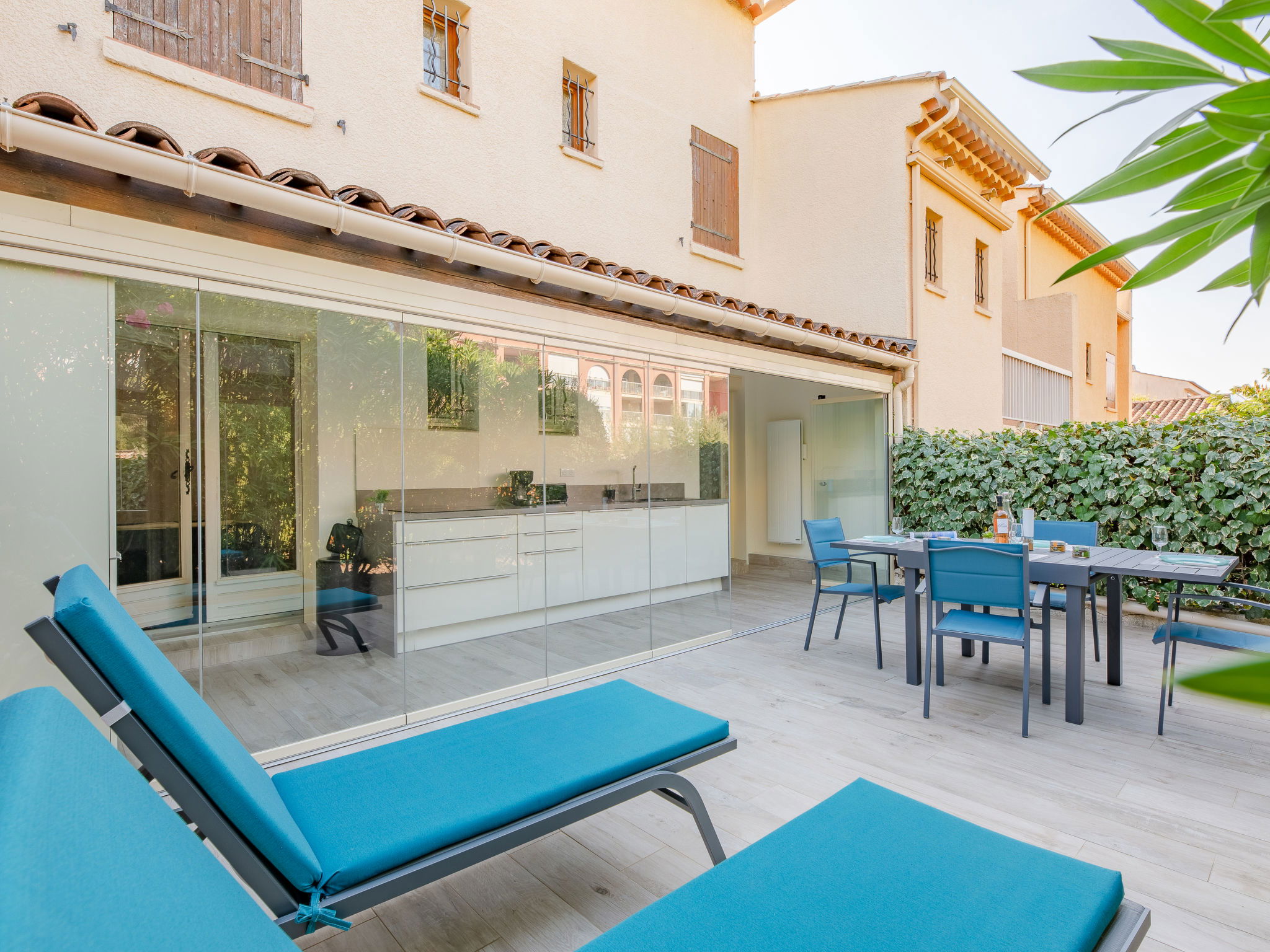 Residence "Le Mas des Calanques". In the resort, in a quiet position, 150 m from the sea, 150 m from the beach. Parking. Grocery 400 m, restaurant 500 m, bakery, café 400 m, sandy beach "Plage de Saint Aygulf" 1 km, park "Areca" 250 m, diving center 7 km, outdoor swimming pool 6 km. Marina 700 m. Nearby attractions: Aqualand 5 km, Lunapark 5 km, Fréjus 6 km, St Tropez 30 km, Marineland 55 km. The keys‘ handover takes place by the agency in Saint Aygulf.
