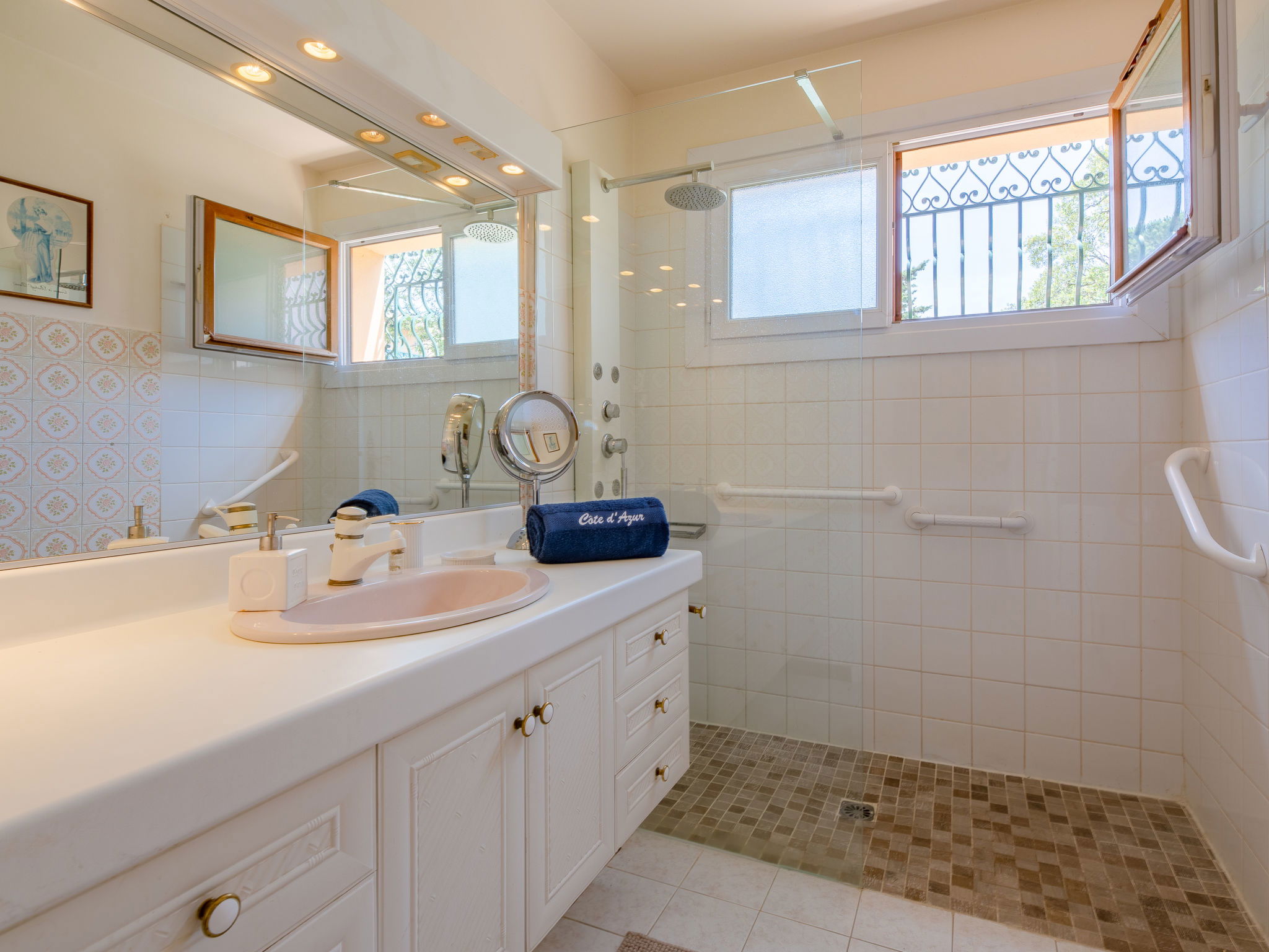 Residence "Les Mimosas", 2 storeys. On the outskirts, 1 km from the centre of de Saint Aygulf, 900 m from the sea, 1 km from the beach. Shop 600 m, shopping centre 6 km, 10 minute walk to the centre, bus stop "Saint-Aygulf La Poste" 700 m, railway station "Fréjus" 7 km, sandy beach "Saint Aygulf" 1.4 km pebble beach "Calanque des Louvans" 800 m, park "Areca" 1 km, diving center 7 km, thermal baths "Thalasso de Port Fréjus" 7 km. Sports harbour 1.5 km, golf course (18 hole) 8 km, sailing school 7 km, riding stable 2 km, sports centre 1 km. Nearby attractions: Aqualand, Luna Park 6 km, Fréjus 7 km, Saint Raphaël 9 km, Saint Tropez 30 km, Cannes 45 km, Nice 71 km. Well-known ski regions can easily be reached: Auron, Isola 2000 150 km. Well-known lakes can easily be reached: Lac de St Cassien 45 km, Lac du Du Verdon 90 km. Hiking paths: Estérel 16 km, Sentier du Littoral 1 km. Please note: no lift. The keys‘ handover takes place by the agency in Saint Aygulf.