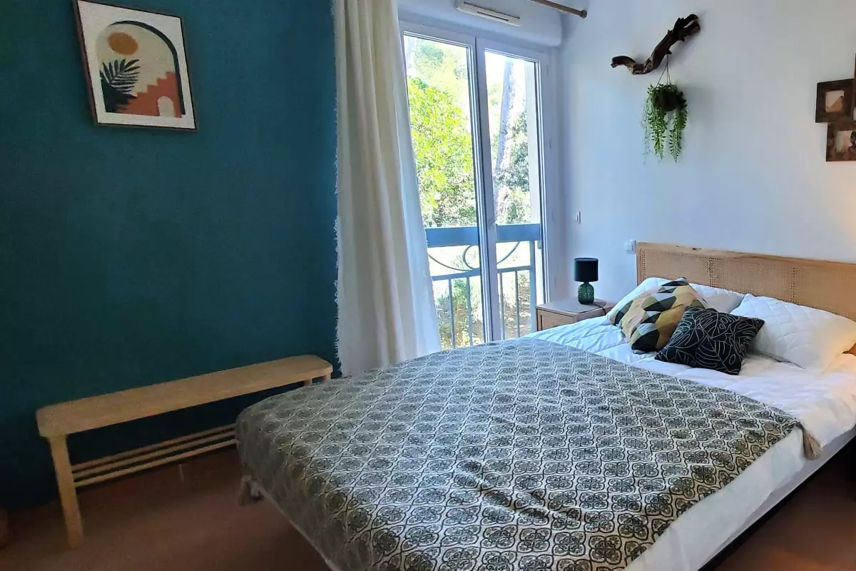 The apartment is nestled in an exceptional wooded garden. Renovated, it features a furnished terrace and can accommodate up to four people. Private parking is also available.