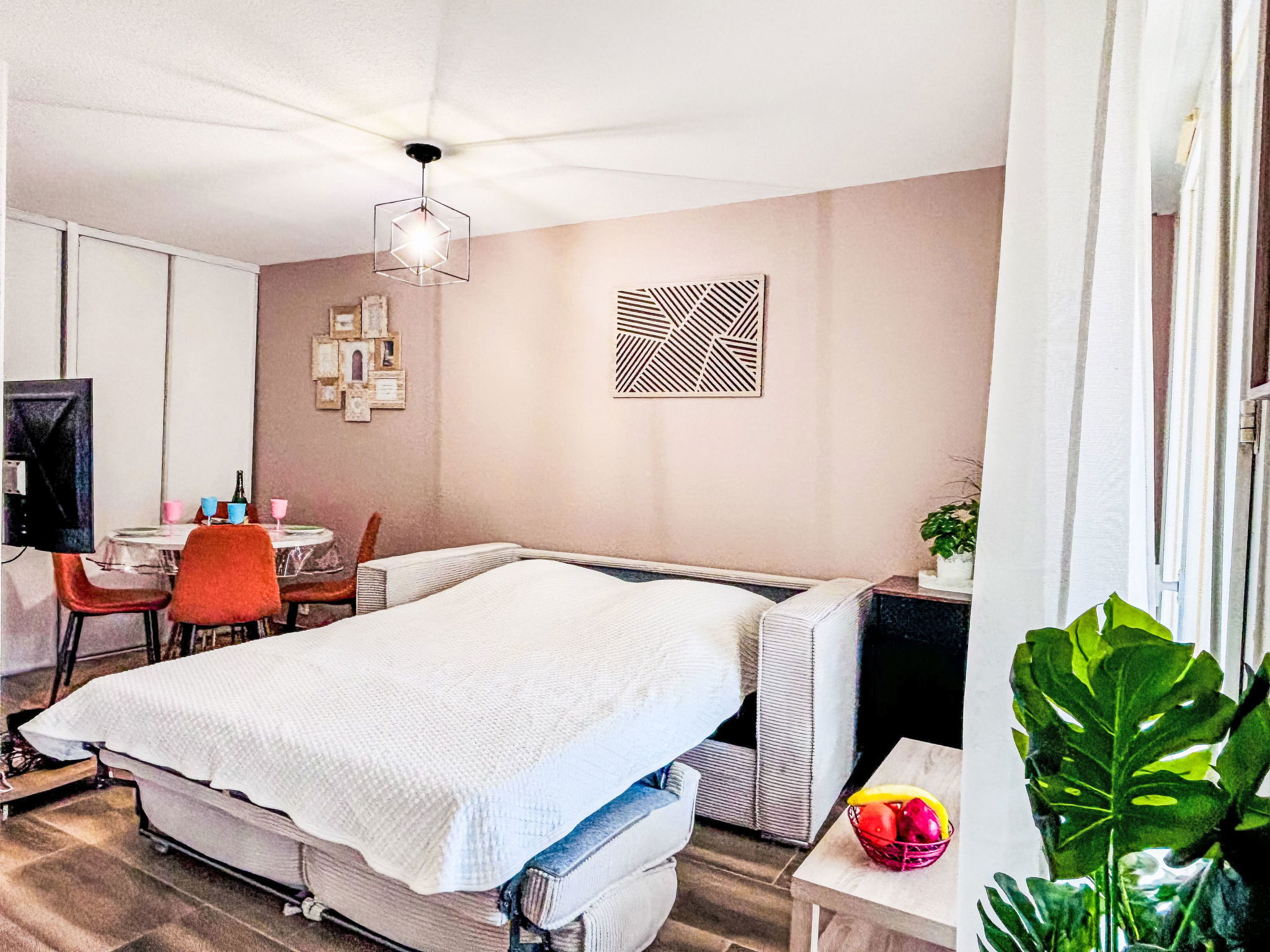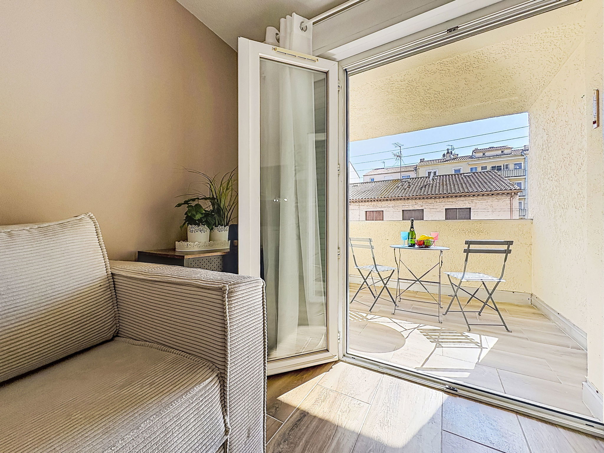 2-room apartment 35 m2 on 1st floor. Fully renovated in 2026, tasteful furnishings: living/dining room with 1 double sofabed (1 x 140 cm, length 190 cm), TV (flat screen), fan. Exit to the balcony. 1 room with 1 double sofabed (1 x 140 cm, length 190 cm), fan. Kitchenette (oven, 2 ceramic glass hob hotplates, kettle, microwave, freezer, electric coffee machine, Capsules for coffee machine (BOSH) extra). Shower, sep. WC. Heating. Balcony 5 m2. Facilities: washing machine, iron, hair dryer. Internet (WiFi, free). Parking space n 32. Please note: non-smokers only. TV only FR. Smoke alarm. Offer by a private individual according to Art. 155, IV of CGI.