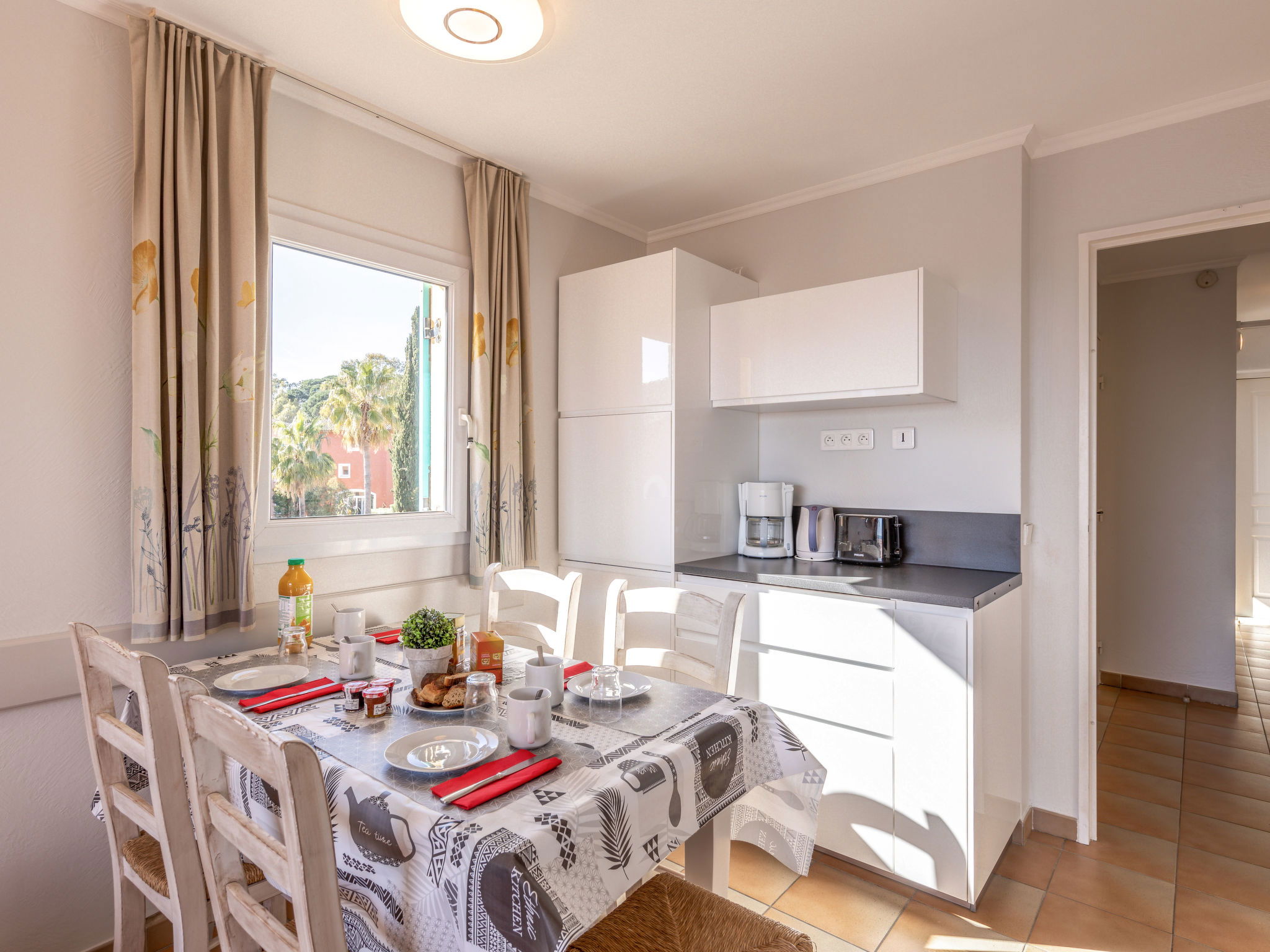 Residence "Les Rivages des Issambres", 3 storeys. In the resort 400 m from the centre of Les Issambres, in a sunny position, 150 m from the sea, 150 m from the beach. For shared use: swimming pool (8 x 17 m, depth 90 - 175 cm, seasonal availability: 01.Jun. - 20.Sep.) with internal staircase. Children's pool, outdoor shower, table tennis, children's playground. In the complex: washing machine (extra). Public parking on the road. Shop, supermarket 350 m, shopping centre 8 km, restaurant 200 m, bakery 500 m, bus stop 250 m, railway station "Saint-Raphael TGV" 16 km, sandy beach 150 m, thermal baths "Thalasso Les Issambres" 350 m. Sports harbour 100 m, golf course (18 hole) 7 km, tennis 2 km. Nearby attractions: Navette/Shuttle Boat St Tropez 20min 100 m, Aqualand waterpark 8 km, Sainte-Maxime 6 km, Saint-Tropez/Ramatuelle 21 km, Port-Grimaud 18 km, Gorges du Verdon 95 km. Hiking paths: Massif des Maures 15 km, Massif de l'Esterel 30 km. Please note: residence with electric gates. Airfield 70 km from the property. Additional accommodations can be booked. Thalassotherapy centre 400 m.