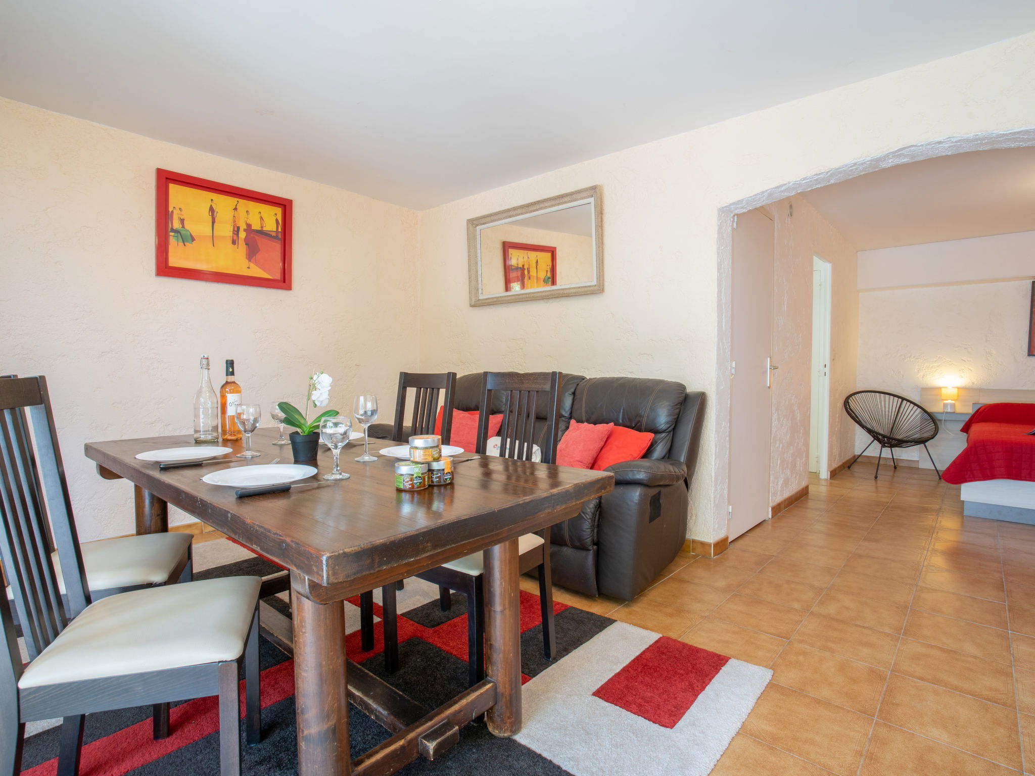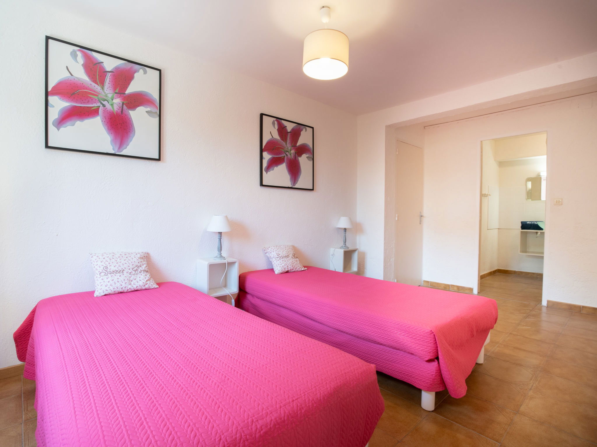 3-family house "Il était une fois", 2 storeys. 500 m from the sea, 650 m from the beach. Parking on the premises. Shop 2 km, grocery 1.5 km, shopping centre 8 km, restaurant 600 m, bar 1 km, bakery 300 m, 15 minute walk to the centre, bus stop "les Mouettes" 450 m, railway station "Fréjus" 8 km, sandy beach "Plage de la Gaillarde" 650 m pebble beach "St Aygulf" 1 km, park "Areca St Aygulf" 2 km, diving center 8 km, thermal baths "Thalasso les Issambres" 5 km, lake Lac St Cassien 45 km. Sports harbour 1 km, marina 4 km, golf course (18 hole) 11 km, sailing school 8 km, tennis 3 km, minigolf 12 km, riding stable 6 km, sports centre 2 km, walking paths from the house 2 km. Nearby attractions: Lunapark 6 km, Aqualand 6 km, Fréjus 7 km, Ste Maxime 15 km, St Tropez 28 km, Cannes 45 km. Well-known ski regions can easily be reached: Auron 150 km, Isola 2000 150 km. Well-known lakes can easily be reached: Lac de St Cassien 45 km, Lac du Verdon 90 km. Hiking paths: Petites Maures 2 km, Estérel 20 km, Sentier du Littoral 1 km. Please note: car recommended. The keys‘ handover takes place by the agency in Saint Aygulf, 2 km. The owner lives in the same residence. Additional accommodations can be booked.