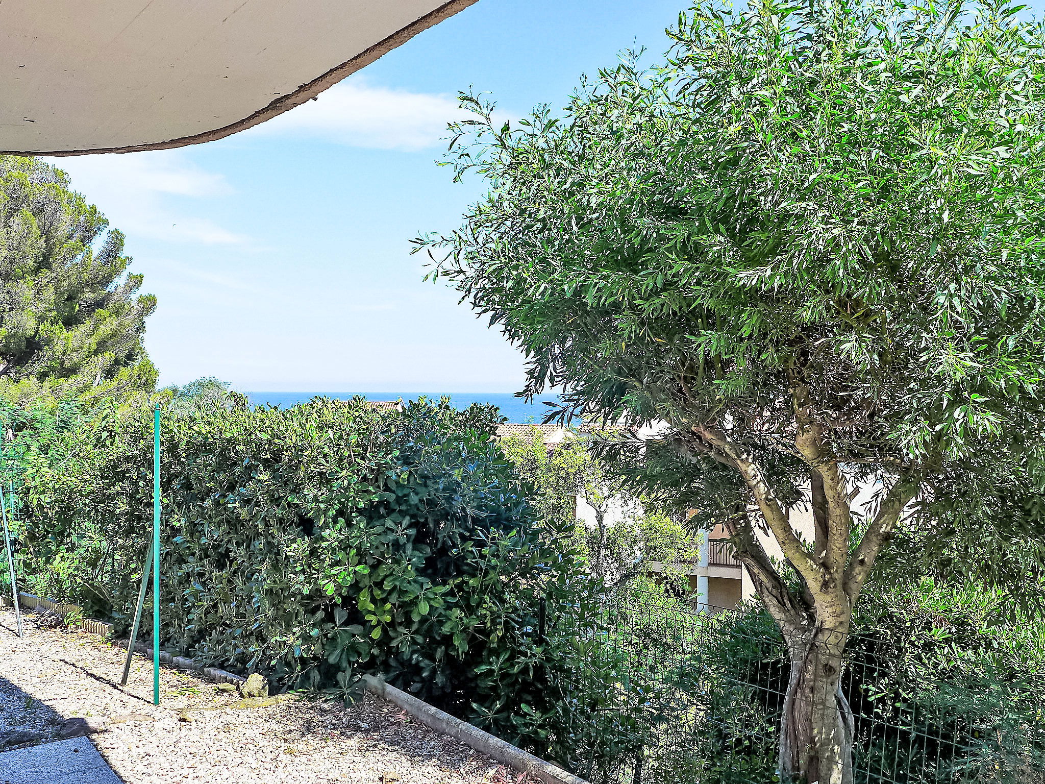2-room apartment 70 m2, south facing position. Beautiful furnishings: living/dining room with TV. Exit to the terrace. 1 room with 2 beds (90 cm, length 190 cm), shower/WC and fan. 1 open room with curtain with 1 french bed (1 x 160 cm, length 200 cm), shower/WC and fan. Open kitchen (mini-oven, dishwasher, 2 gas rings, toaster, microwave, freezer, electric coffee machine). Heating. Terrace 25 m2, patio. Terrace furniture, deck chairs (1). Distant view of the sea. Facilities: washing machine, iron, hair dryer. Internet (WiFi, extra). Parking. Please note: TV only FR. Smoke alarm. The owner occupies the 1st floor of the house. 83107000282KX
