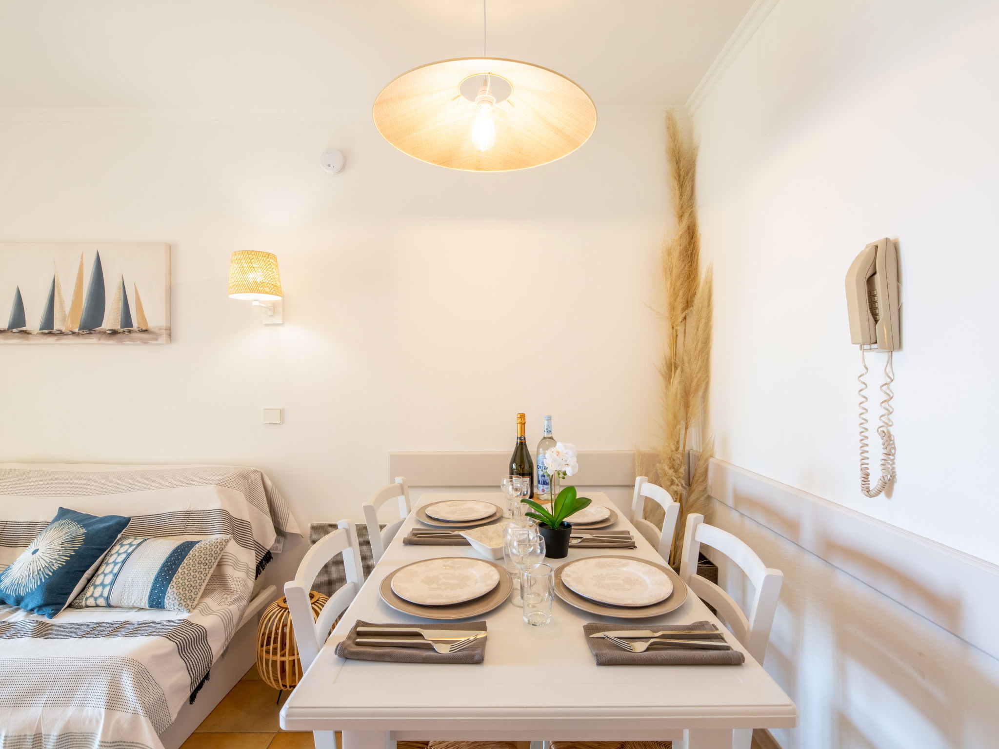 2-room apartment 35 m2, on the ground floor, south facing position. Comfortable and beautiful furnishings: living/dining room with 2 sofabeds (80 cm, length 190 cm), TV (flat screen). Exit to the terrace, to the patio. 1 room with 1 french bed (1 x 140 cm, length 190 cm). Open kitchen (dishwasher, 2 ceramic glass hob hotplates, toaster, kettle, electric coffee machine, Capsules for coffee machine (Tassimo) extra, combination microwave). Bath/WC. Electric heating. Terrace 8 m2 partly roofed. Terrace furniture. Facilities: iron, hair dryer. Internet (WiFi, extra). Reserved parking space n 206. Please note: non-smokers only. Smoke alarm. 83107000921OG