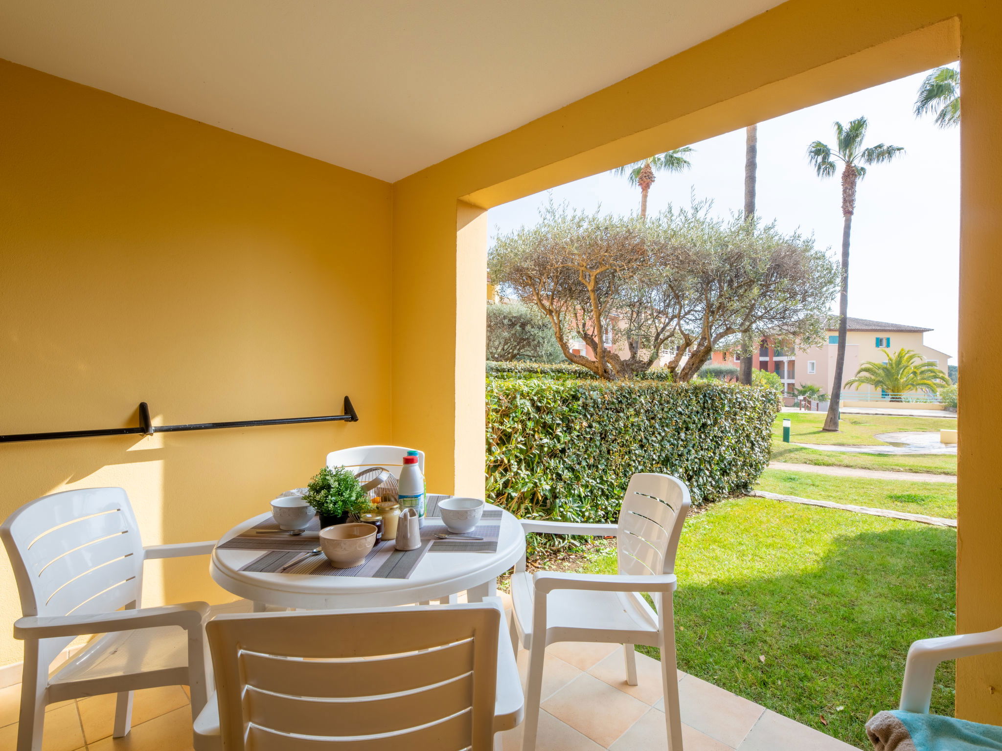 Residence "Les Rivages des Issambres", 3 storeys. In the resort 400 m from the centre of Les Issambres, in a sunny position, 150 m from the sea, 150 m from the beach. For shared use: swimming pool (8 x 17 m, depth 90 - 175 cm, seasonal availability: 21.Apr. - 20.Sep.) with internal staircase. Children's pool, outdoor shower, table tennis, children's playground. In the complex: public parking on the road. Shop, supermarket 350 m, shopping centre 8 km, restaurant 200 m, bakery 500 m, bus stop 200 m, railway station "Saint-Raphael TGV" 16 km, sandy beach 150 m, thermal baths "Thalasso Les Issambres" 350 m. Sports harbour 100 m, golf course (18 hole) 7 km. Nearby attractions: Navette/Shuttle Boat St Tropez 20min 100 m, Aqualand waterpark 8 km, Sainte-Maxime 6 km, Saint-Tropez/Ramatuelle 21 km, Port-Grimaud 18 km, Gorges du Verdon 95 km. Hiking paths: Massif des Maures 15 km, Massif de l'Esterel 30 km. Please note: residence with electric gates. Airfield 70 km from the property. Additional accommodations can be booked. Thalassotherapy centre 400 m.