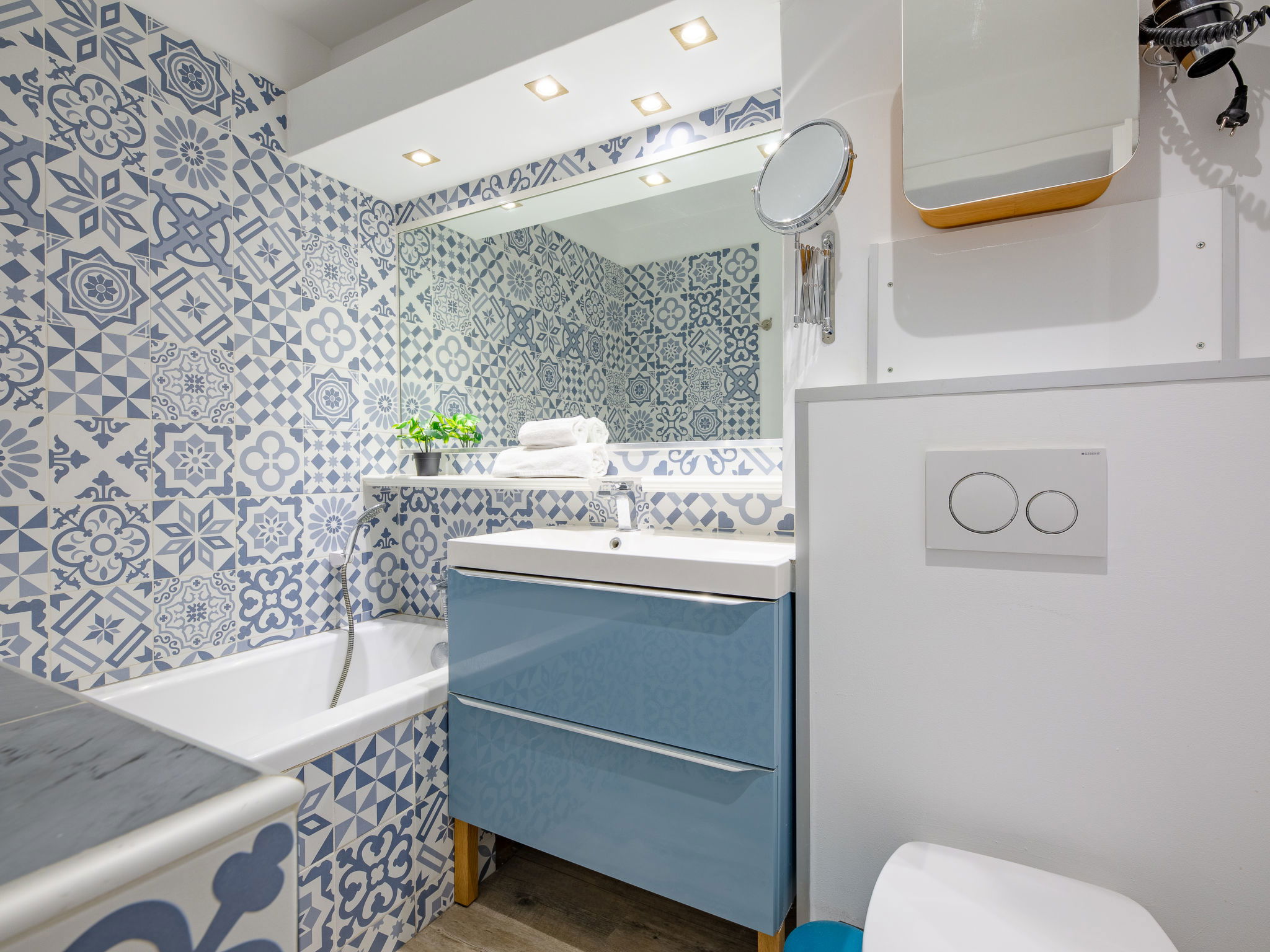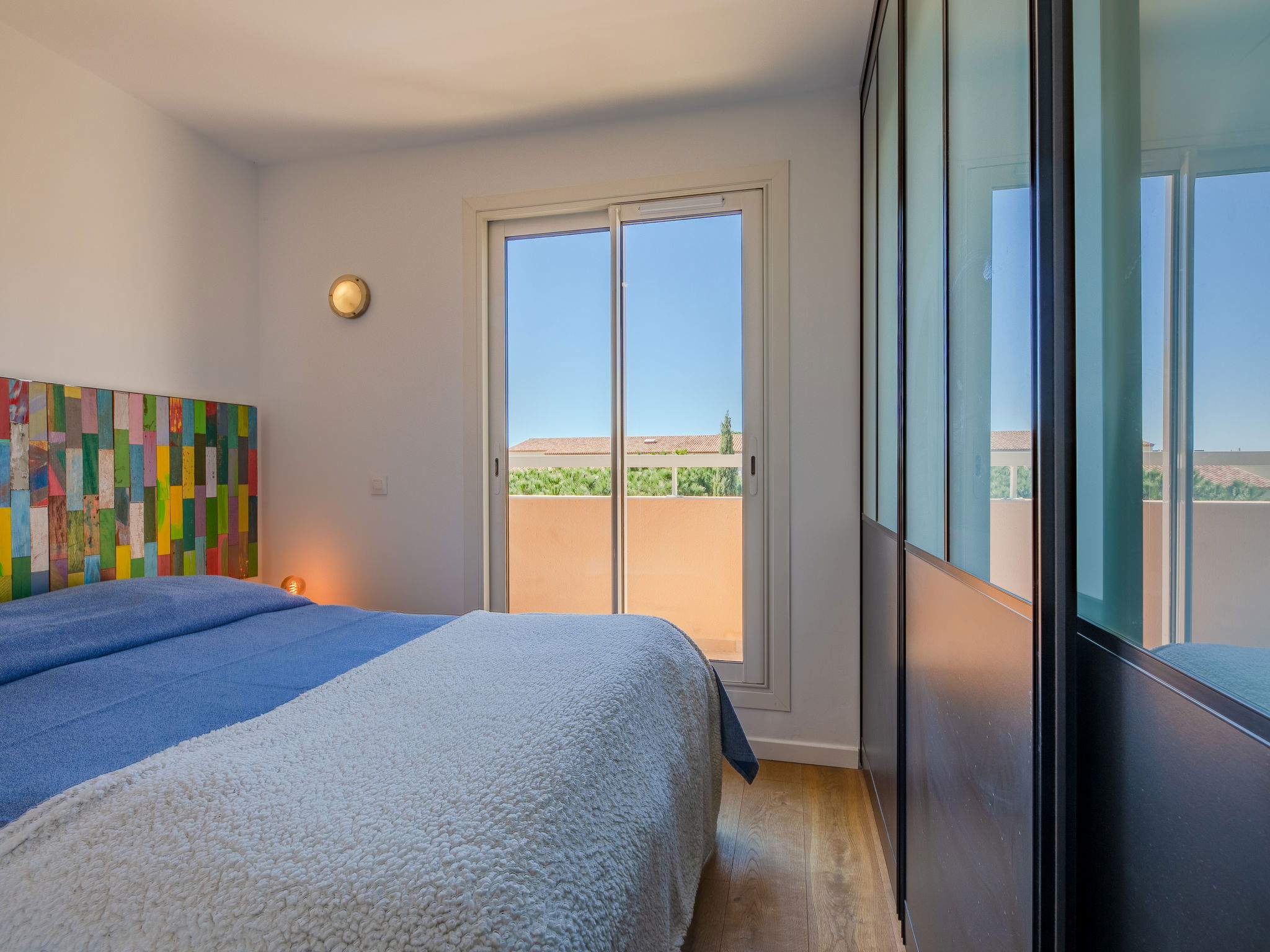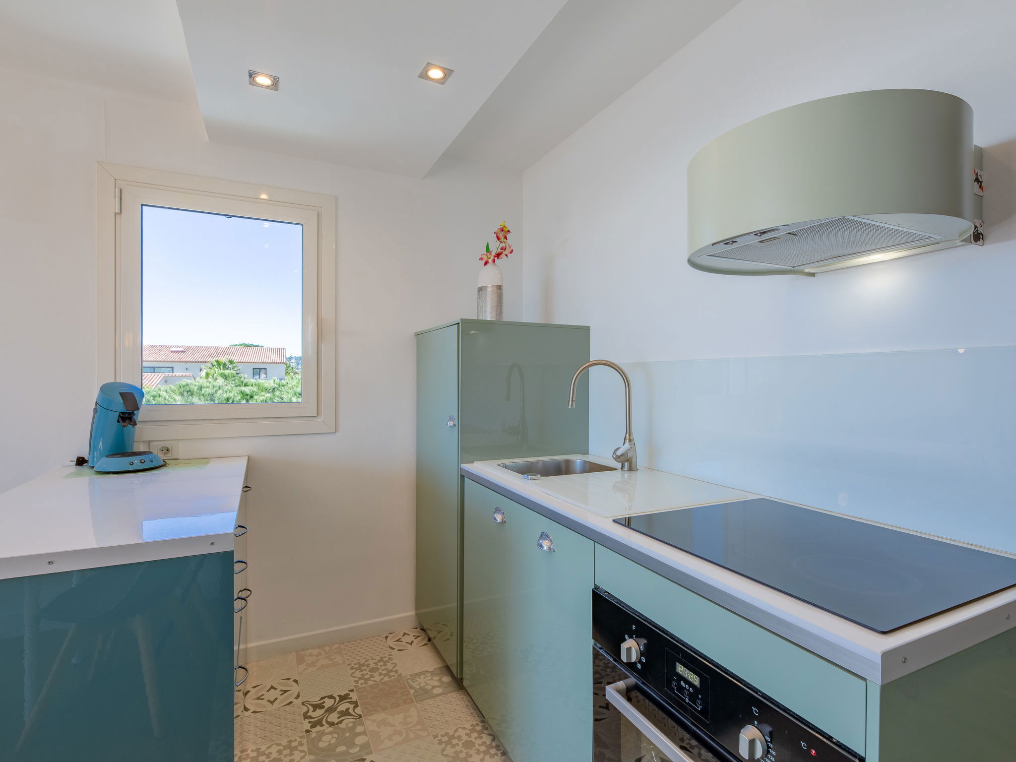 2-room apartment 30 m2 on 3rd floor, south facing position. Object suitable for 2 adults + 2 children. Bright, comfortable and beautiful furnishings: living/dining room with 1 double sofabed (120 cm, length 190 cm), TV. Exit to the terrace. 1 open double bedroom with 1 french bed (1 x 140 cm, length 190 cm). Exit to the balcony. Open kitchen (dishwasher, 4 ceramic glass hob hotplates, toaster, kettle, microwave, electric coffee machine). Bath/WC. Electric heating, air-conditioning. Balcony 3 m2, west facing position, terrace 8 m2, south facing position. Balcony furniture. Beautiful view of the sea. Facilities: washing machine, iron, hair dryer. Internet (WiFi, extra). Reserved parking space n 372 (roofed). Please note: non-smokers only. Smoke alarm. Offer by a private individual according to Art. 155, IV of CGI. 83107001225T9