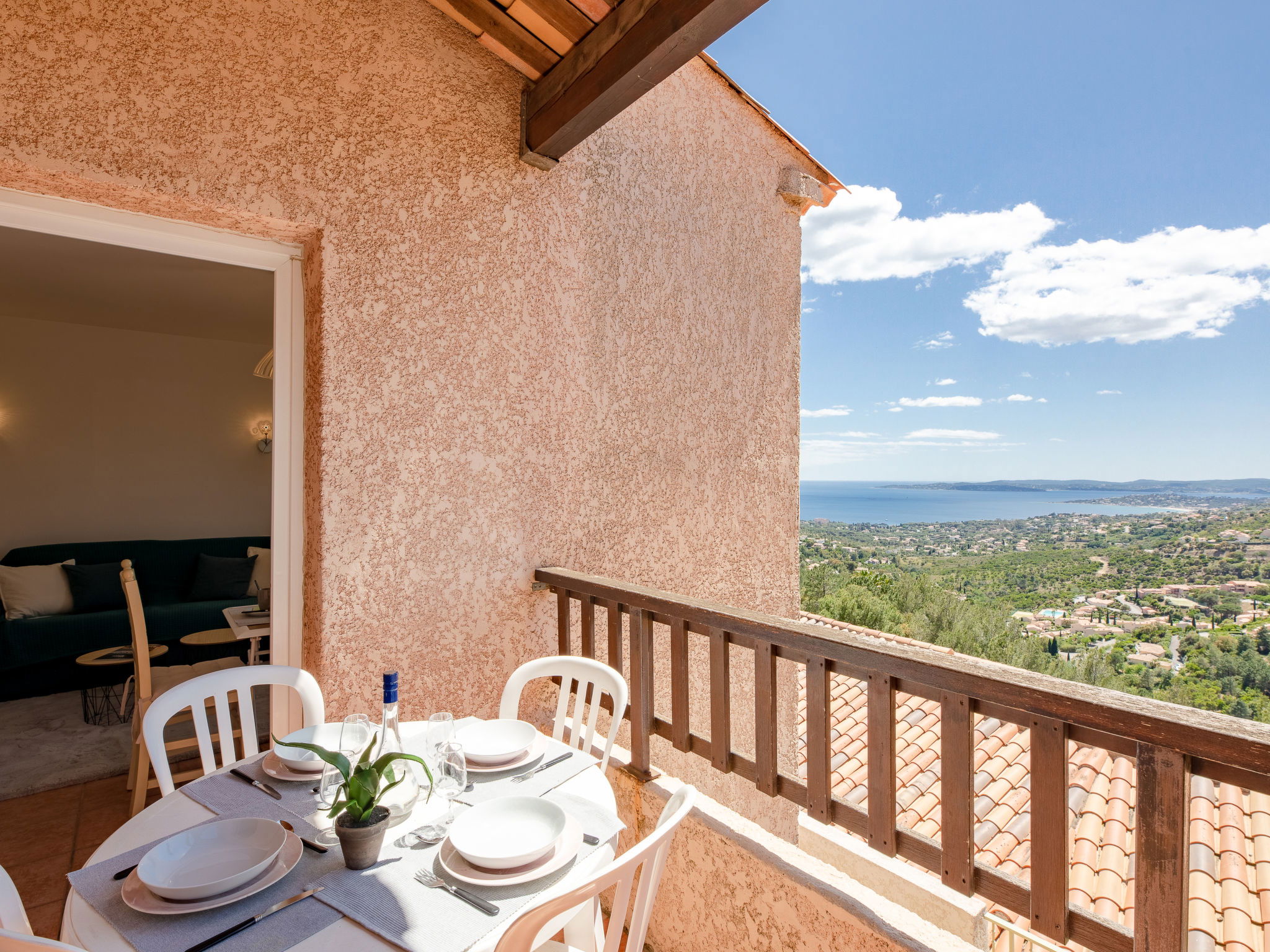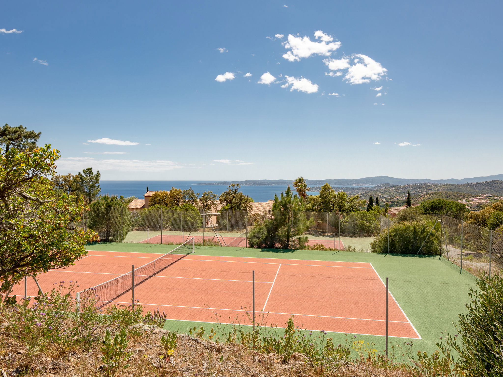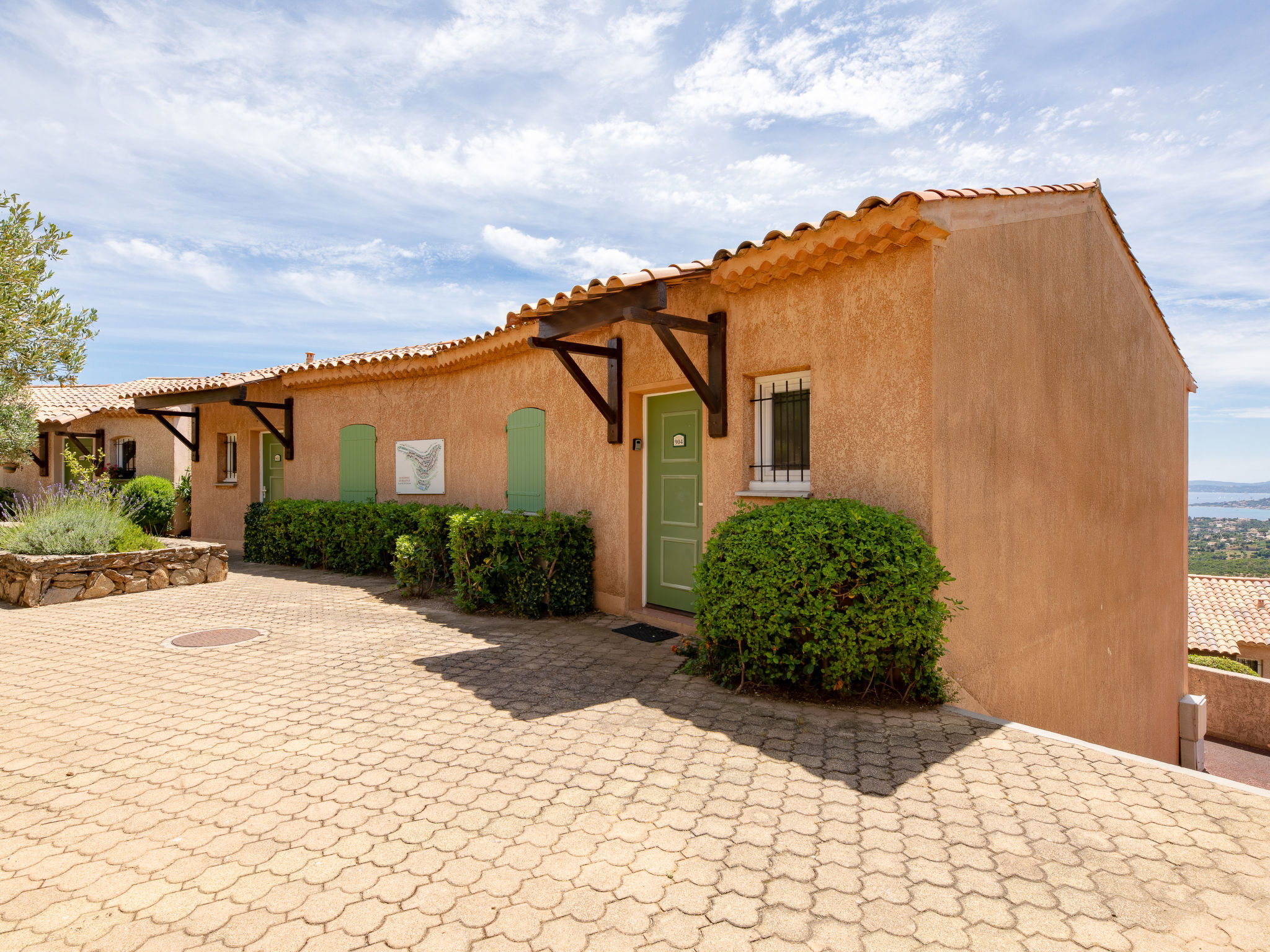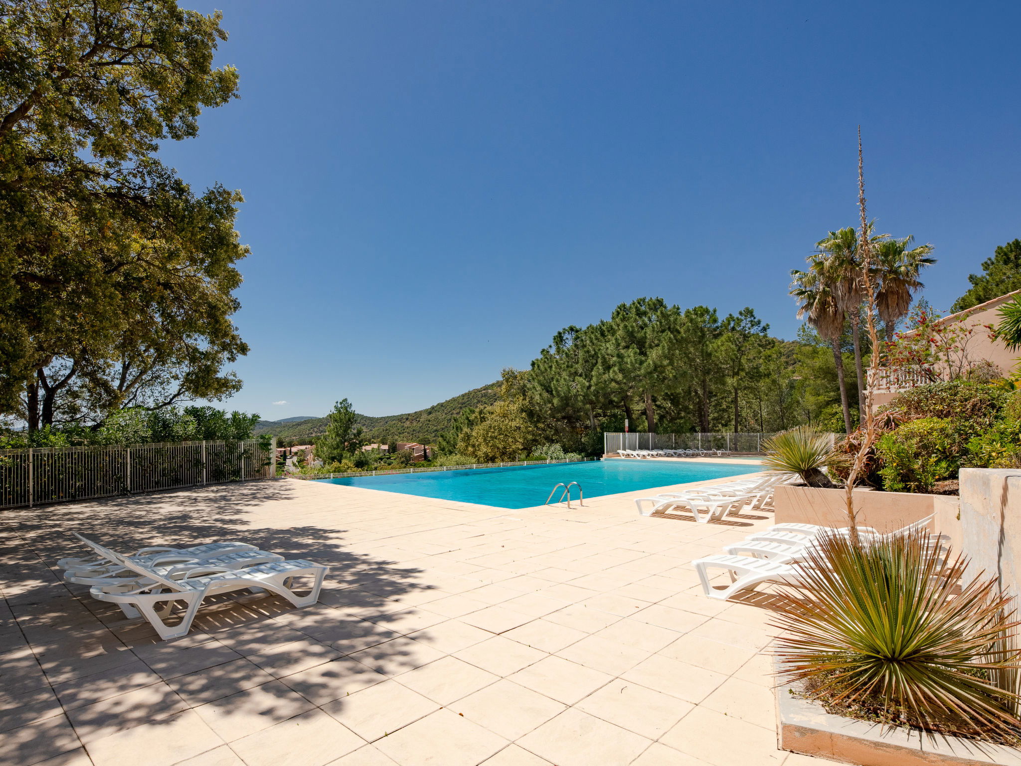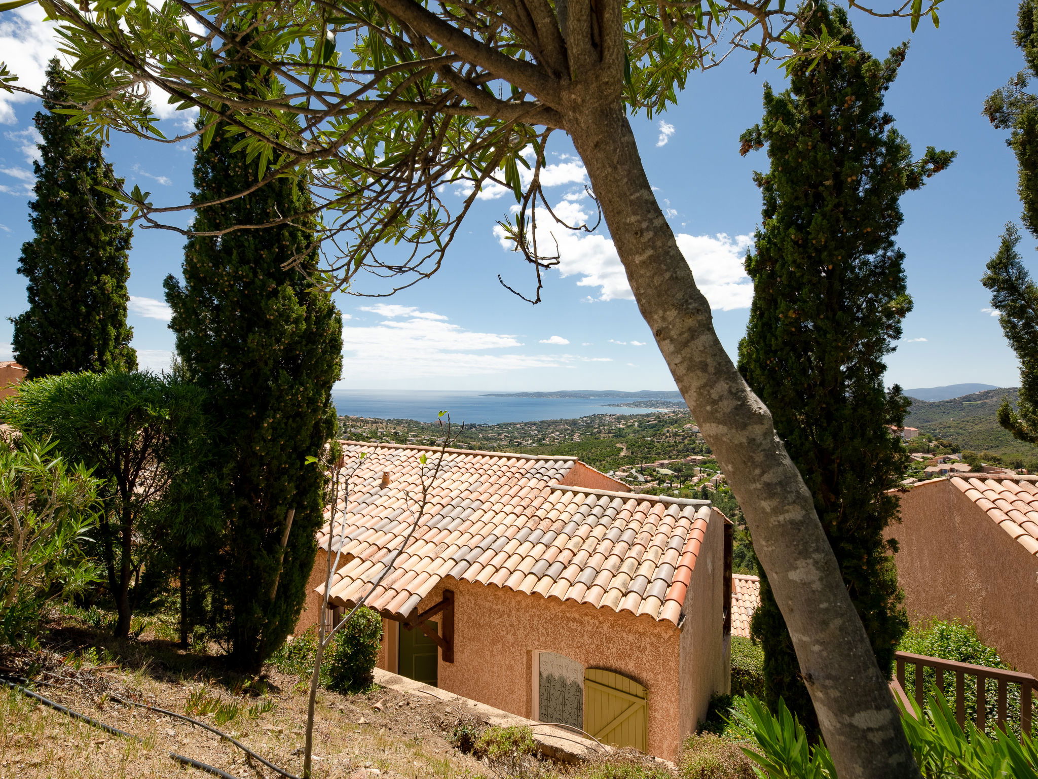 Farm estate "Résidence Bellevue". Above Issambres, outside the resort, 4 km from the centre of San Peire, in a quiet, sunny, elevated position, 3 km from the sea, 3 km from the beach, south-west facing position. For shared use: swimming pool fenced (20 x 6 m, depth 80 - 140 cm, seasonal availability: 15.May. - 30.Sep.). Children's pool, tennis, boccia. Shop 4 km, grocery 3 km, bakery 3 km, railway station "Saint Raphael TGV" 16 km, sandy beach 3 km, thermal baths "Thalasso Les Issambres" 3 km. Sports harbour 3 km, golf course (18 hole) 10 km, walking paths from the house 50 m. Nearby attractions: Sainte-Maxime 8 km, Navette/Shuttle boat St Tropez 20min 4 km, Saint-Tropez/Ramatuelle 23 km, Port-Grimaud 16 km, Fréjus /Saint Raphael 15 km, Gorges du Verdon 90 km. Hiking paths: Massif des Maures 200 m, Massif de l'Esterel 20 km. Please note: car recommended. The keys‘ handover takes place by the agency in Sainte Maxime, 8 km.