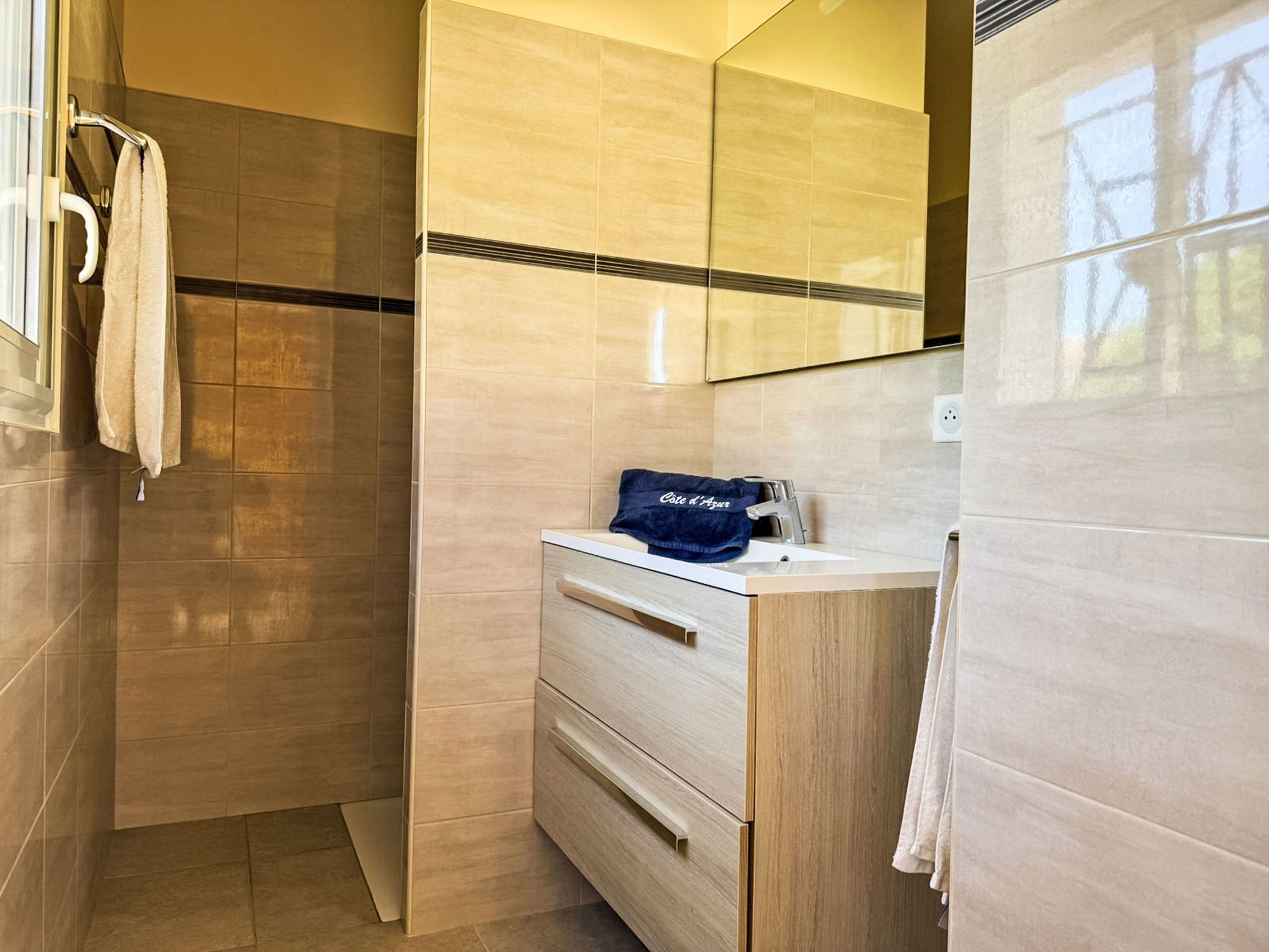 Small house "Parc de la Vigie". In the district of Parc de la Vigie, outside the resort, 2.5 km from the centre of St Aygulf, in a quiet, sunny position on top of a hill, in the residential district, 500 m from the sea, 700 m from the beach. For shared use: property (fenced), swimming pool kidney-shaped (seasonal availability: 01.Jun. - 30.Sep. pool opening hours: 09:00-21:00) with internal staircase and alarm system. Shower/WC in the pool area, parking at the house. Shop 2.5 km, grocery 1.6 km, shopping centre 9 km, restaurant 700 m, bar 1 km, bakery 400 m, 30 minute walk to the centre, bus stop "Les Mouettes" 450 m, railway station "Fréjus" 9 km, sandy beach "Grand Boucharel" 500 m pebble beach "St Aygulf" 5 km, park "Areca St Aygulf" 3 km, diving center 9 km, thermal baths "Thalasso les Issambres" 6 km, lake Lac St Cassien 45 km. Sports harbour 1 km, marina 4 km, golf course (18 hole) 11 km, sailing school 8 km, tennis 3 km, minigolf 12 km, riding stable 6 km, sports centre 2 km, walking paths from the house 2 km. Nearby attractions: Aqualand, Lunapark 7 km, Fréjus 8 km, Ste Maxime 13 km, St Raphael 10 km, St Tropez 27 km, Cannes 50 km. Well-known ski regions can easily be reached: Auron 150 km, Isola 2000 150 km. Well-known lakes can easily be reached: Lac de St Cassien 45 km, Lac du Verdon 90 km. Hiking paths: Petites Maures 2 km, Estérel 20 km, Sentier du Littoral 1 km. Please note: car recommended. Object suitable for 2 adults. The keys‘ handover takes place by the agency in Saint-Aygulf, 3 km. The owner lives on the same property.