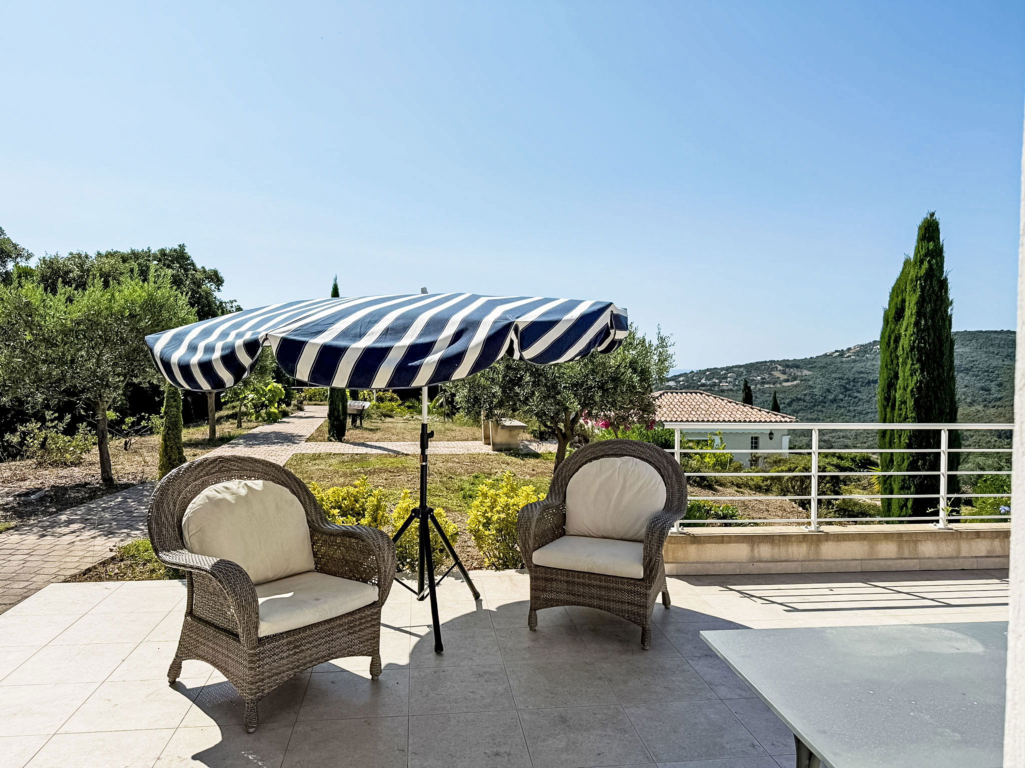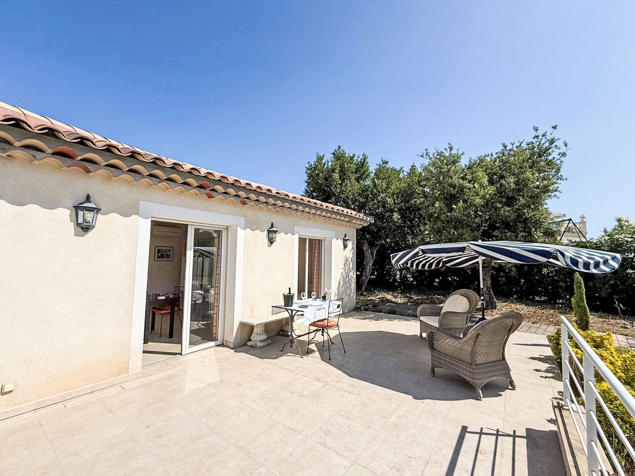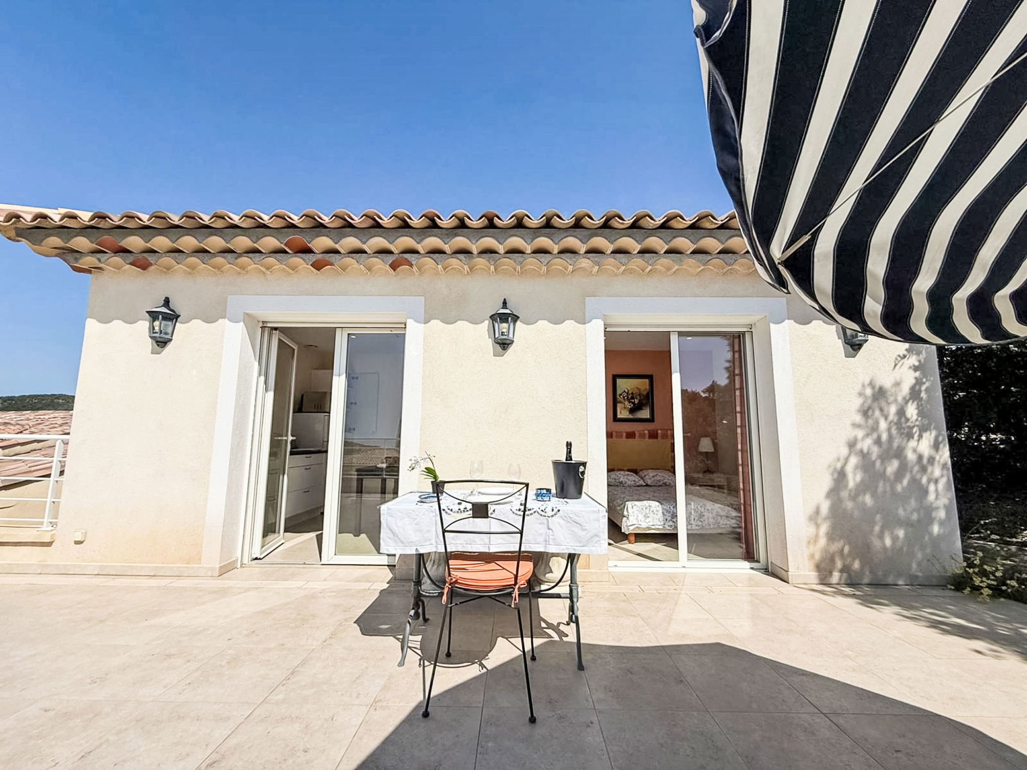 1-room house 33 m2, on the upper floor. Living/sleeping room with 1 french bed (1 x 140 cm, length 200 cm). Exit to the terrace. Open kitchen (2 ceramic glass hob hotplates, toaster, kettle, freezer, electric coffee machine, combination microwave) with dining table, TV (flat screen), air conditioning. Exit to the terrace. Shower, sep. WC. Electric heating. Large terrace 35 m2, south facing position and, east facing position, large garden. Terrace furniture, deck chairs (2). Very beautiful view of the sea. Facilities: iron, hair dryer. Internet (WiFi, free). Parking (1 car). Please note: maximum 1 pet/ dog allowed. TV only FR. Smoke alarm. Offer by a private individual according to Art. 155, IV of CGI. 831070027761J