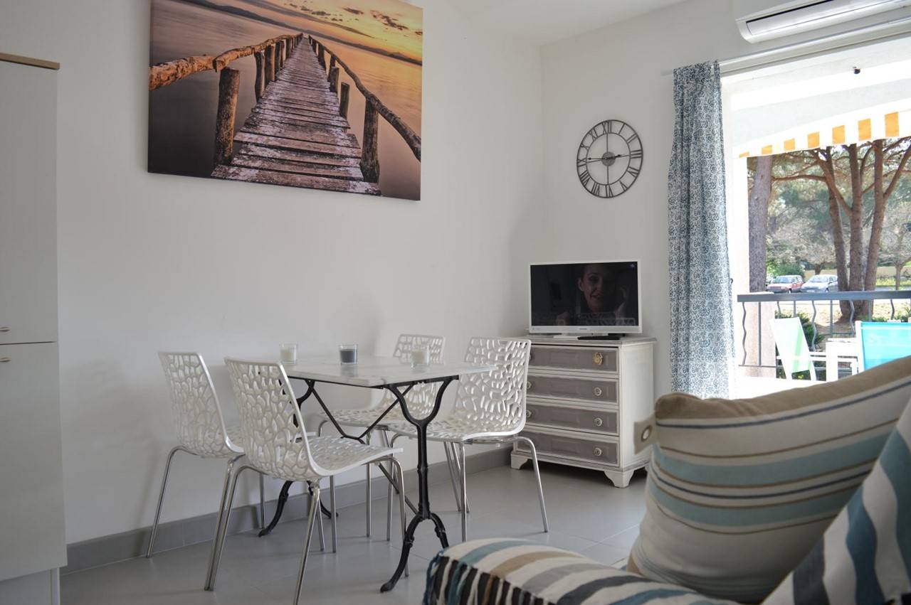 The advantages of this vacation rental near the sea: its location 200 m from the most beautiful sandy beach in Sainte-Maxime, its comfort (air conditioning, wifi, dishwasher, washing machine, etc.) Practical information: the residence is located at the end of a dead end and has a huge enclosed car park in the pine forest.