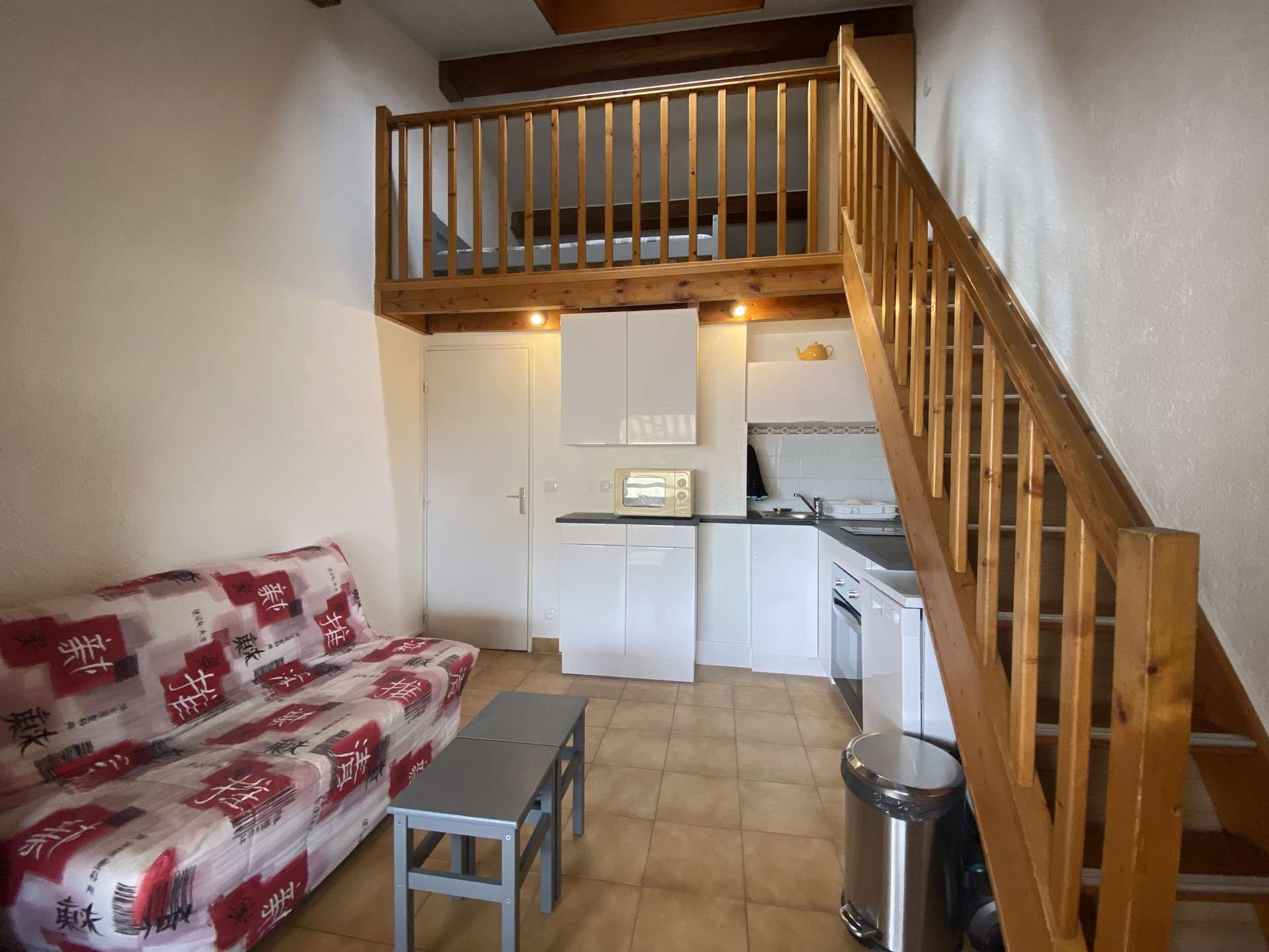Sainte-Maxime (83) - City center - La Vacanceraie Studio cabin - approximately 32 m² - up to 5 people accommodation: Come and drop off your suitcases in this holiday accommodation ideally located 50m from the beach, the casino and the shops of downtown. This very bright studio is on the 3rd floor with lift and has a beautiful south-facing loggia with a view of the city and the sea. The kitchen area is equipped with a 2-burner induction hob, a micro- wave, a dishwasher and a washing machine. The living room has a two-seater sofa bed and a flat screen TV. A staircase gives you access to the mezzanine where you will have two single beds. A private parking space. The advantages of this vacation rental: the beach is close at hand and many shops are at the foot of the building. Cleaning with disinfection included. You will be barely 5 minutes on foot from the historic center of Sainte-Maxime and 15 minutes by green boat shuttle for an excursion to Saint-Tropez and Port Grimaud.