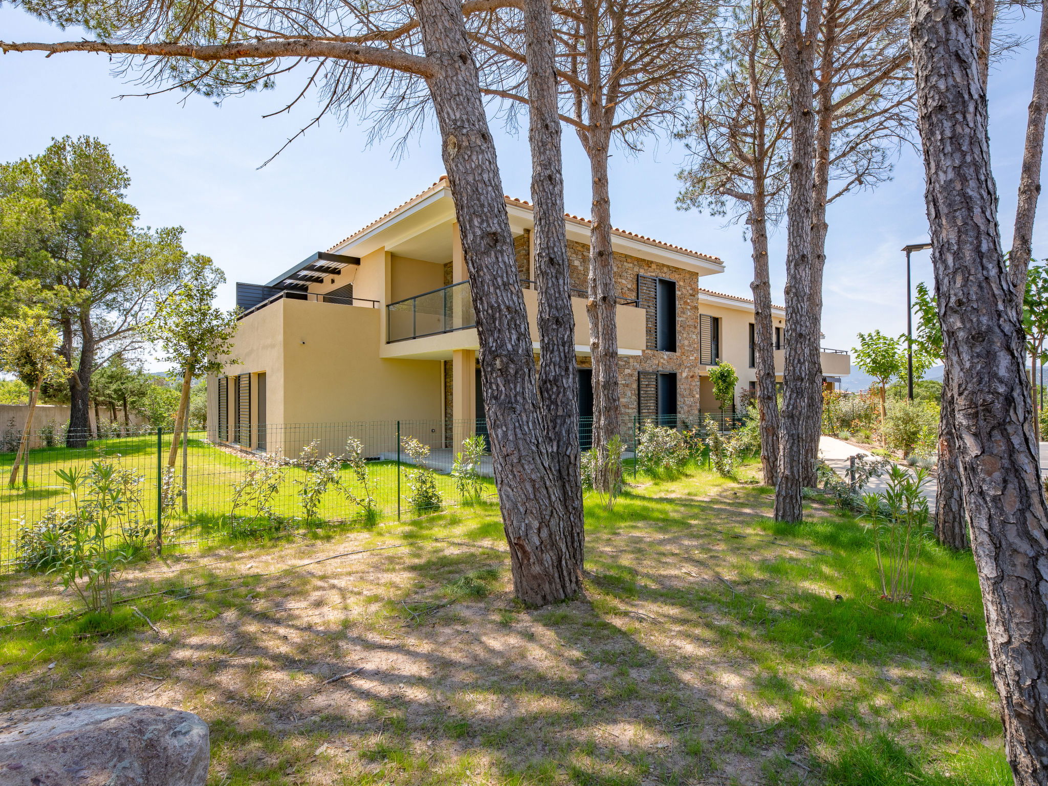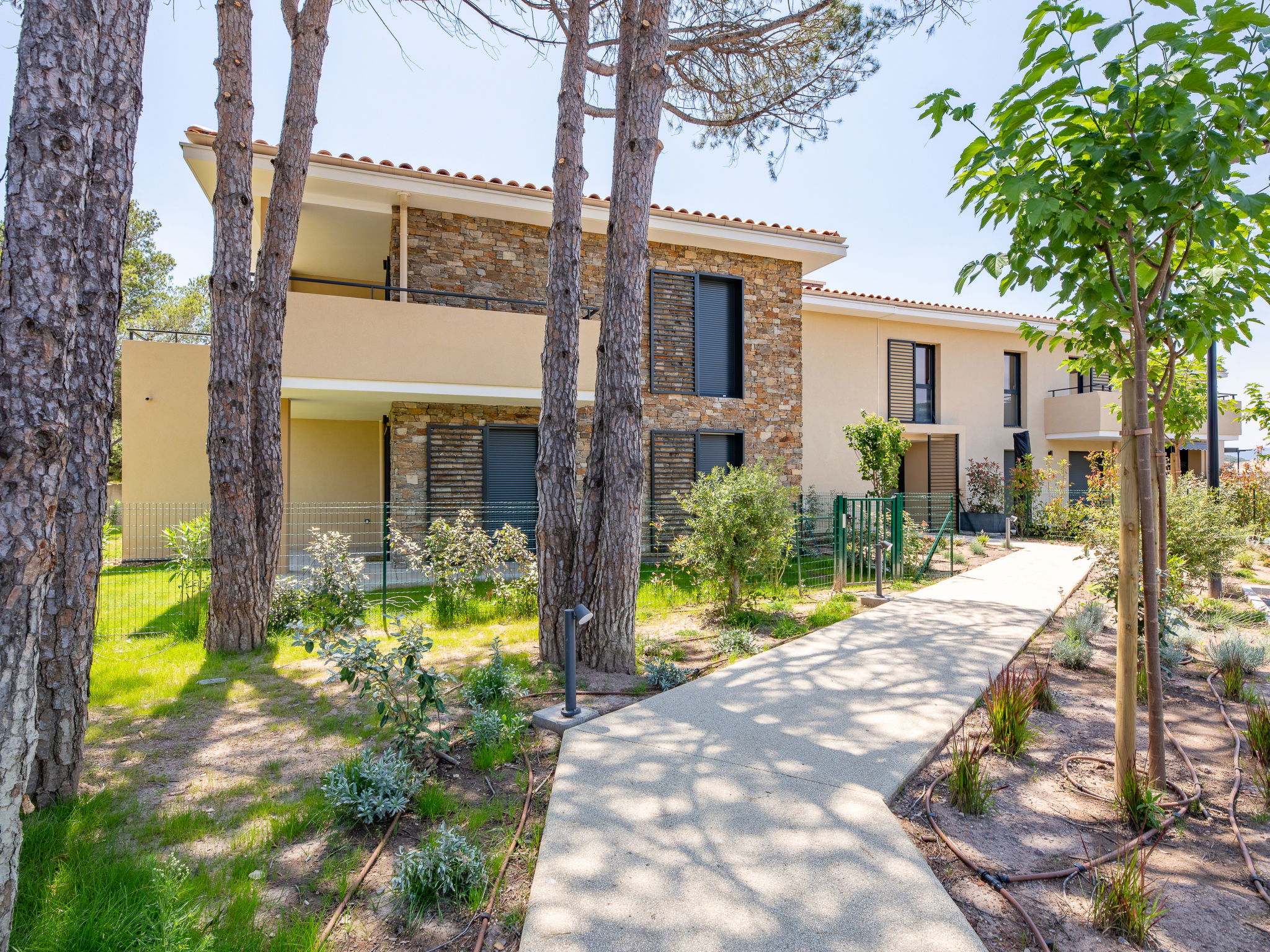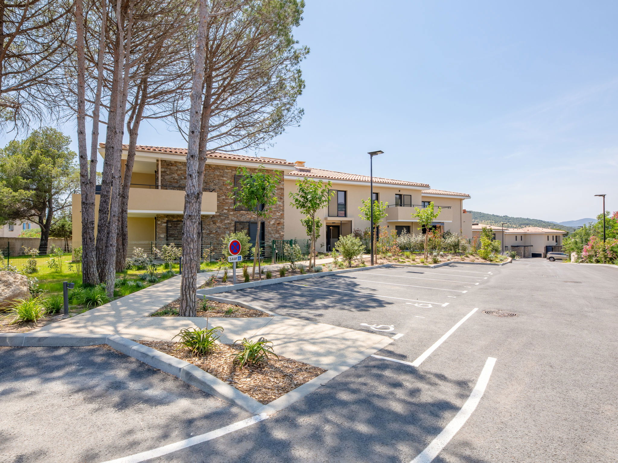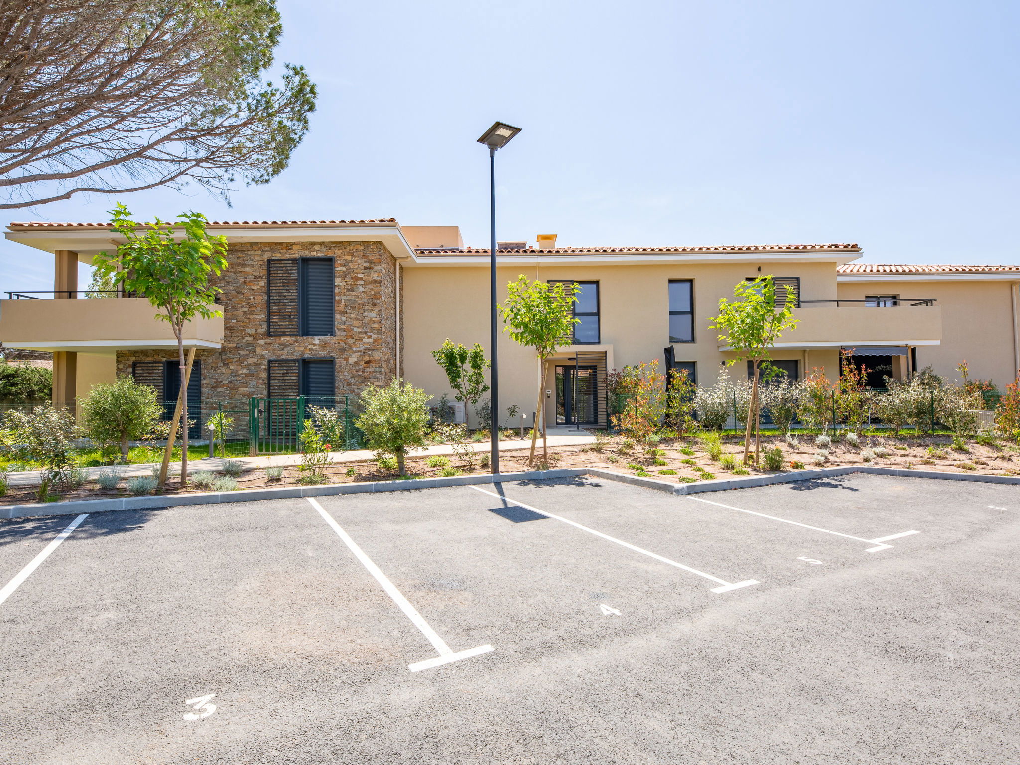 Modern apartment block "Le Clos d'Alice", 2 storeys, built in 2024. 10 apartments in the residence. In the district of Saquèdes, on the outskirts, 1.3 km from the centre, in a quiet, sunny position in the residential district, traffic calmed area, 1.5 km from the sea, 1.5 km from the beach, in the countryside. For shared use: well-kept garden, swimming pool angular fenced (10 x 5 m, depth 180 cm, seasonal availability: 01.Jun. - 30.Sep.). Parking. Grocery 400 m, supermarket 1.8 km, bakery 400 m, 15 minute walk to the centre, bus stop 450 m, sandy beach "centre Ville" 1.5 km, thermal baths "Thalasso Spa des Issambres" 7 km. Sports harbour 1.5 km, golf course (18 hole) 4 km, tennis 3 km. Nearby attractions: Aqualand Waterpark 2 km, Navette/Shuttle boat St Tropez 20min 1.5 km, St Tropez / Ramatuelle 17 km, Port-Grimaud 10 km, Gorges du Verdon 80 km. Hiking paths: Massif des Maures 5 m, Massif de l'Esterel 25 m. Please note: car recommended. Residence with electric gates. The keys‘ handover takes place by the agency in Sainte Maxime. Neighbourhood highly sensitive to noise. Quietness and good behaviour expected.