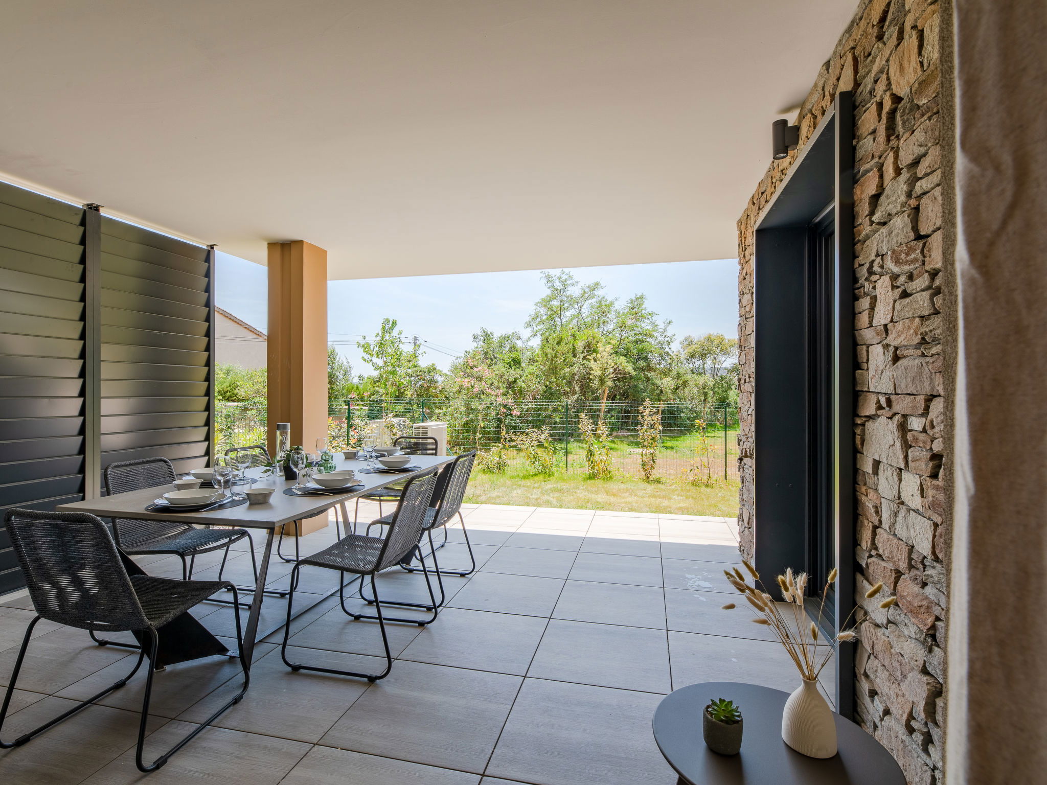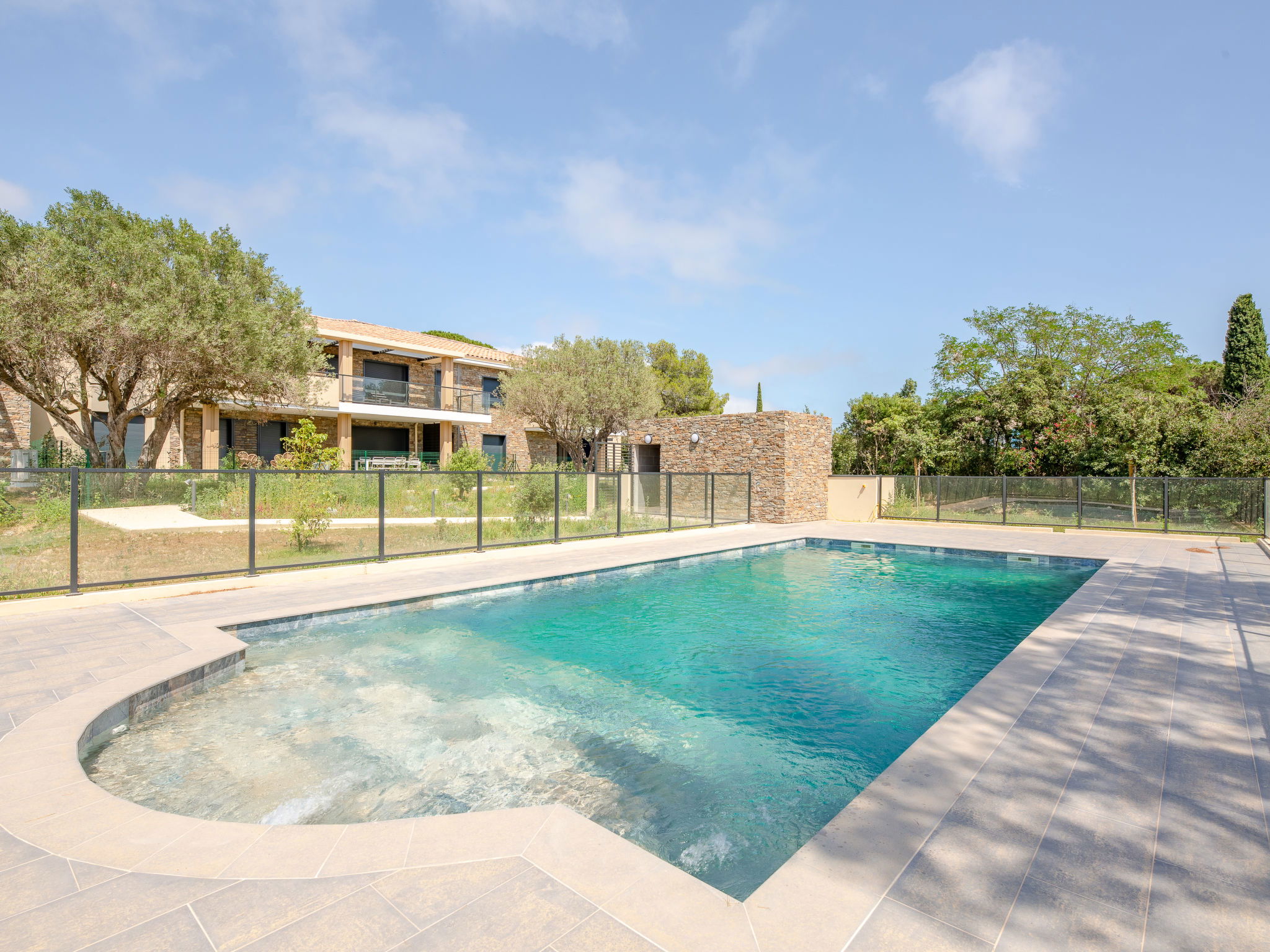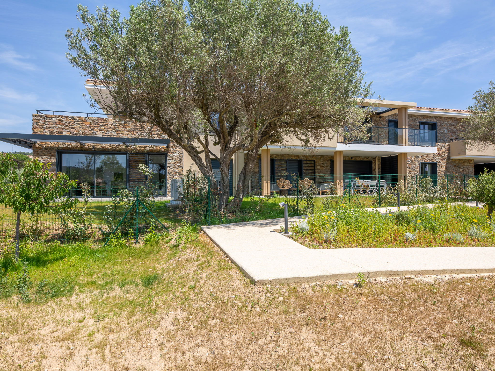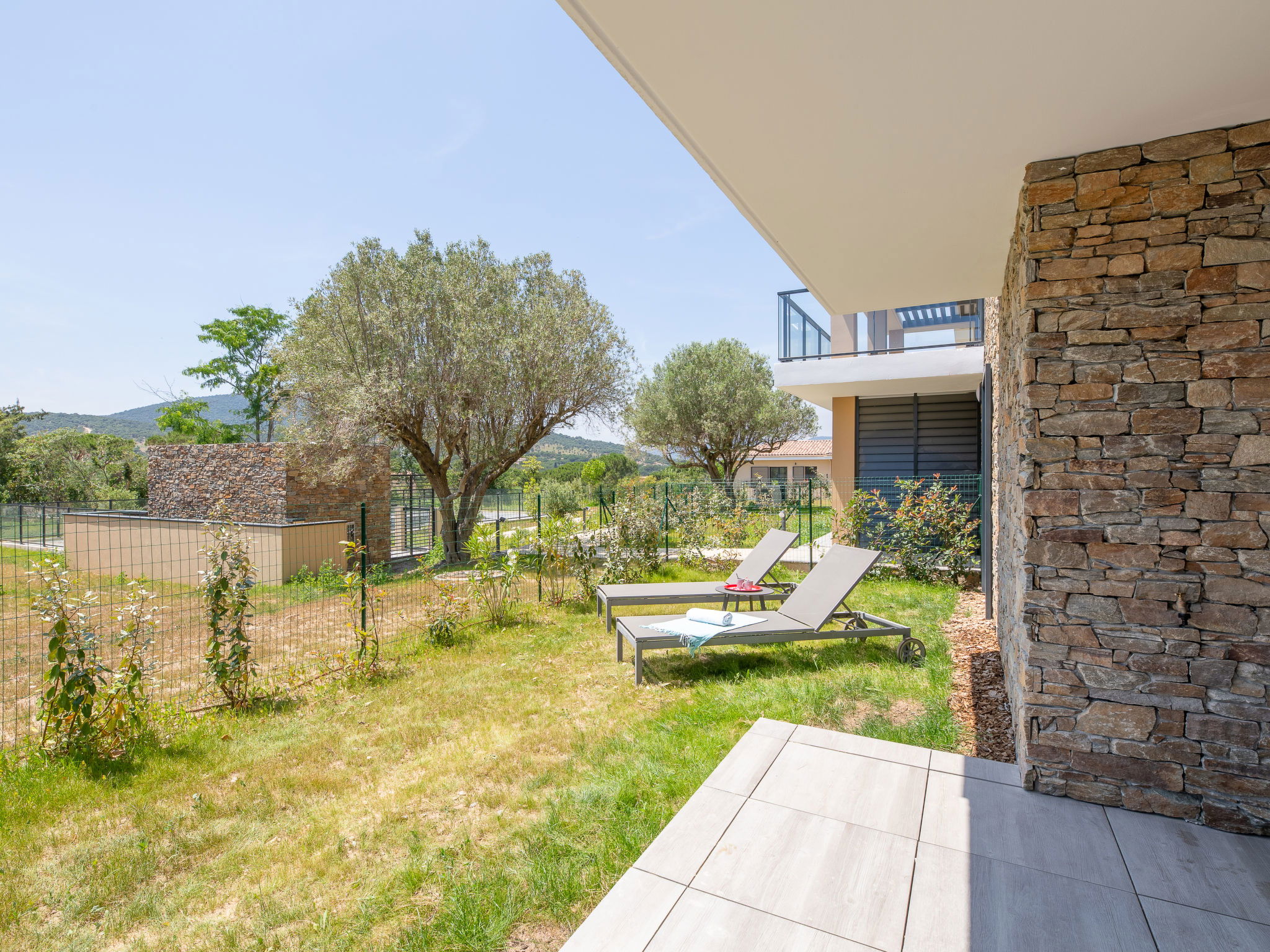Modern apartment block "Le Clos d'Alice", 2 storeys, built in 2024. 10 apartments in the residence. In the district of Saquèdes, on the outskirts, 1.3 km from the centre, in a quiet, sunny position in the residential district, traffic calmed area, 1.5 km from the sea, 1.5 km from the beach, in the countryside. For shared use: well-kept garden, swimming pool angular fenced (10 x 5 m, depth 180 cm, seasonal availability: 01.Jun. - 30.Sep.). Parking. Grocery 400 m, supermarket 1.8 km, bakery 400 m, 15 minute walk to the centre, bus stop 450 m, sandy beach "centre Ville" 1.5 km, thermal baths "Thalasso Spa des Issambres" 7 km. Sports harbour 1.5 km, golf course (18 hole) 4 km, tennis 3 km. Nearby attractions: Aqualand Waterpark 2 km, Navette/Shuttle boat St Tropez 20min 1.5 km, St Tropez / Ramatuelle 17 km, Port-Grimaud 10 km, Gorges du Verdon 80 km. Hiking paths: Massif des Maures 5 m, Massif de l'Esterel 25 m. Please note: car recommended. Residence with electric gates. The keys‘ handover takes place by the agency in Sainte Maxime. Neighbourhood highly sensitive to noise. Quietness and good behaviour expected.
