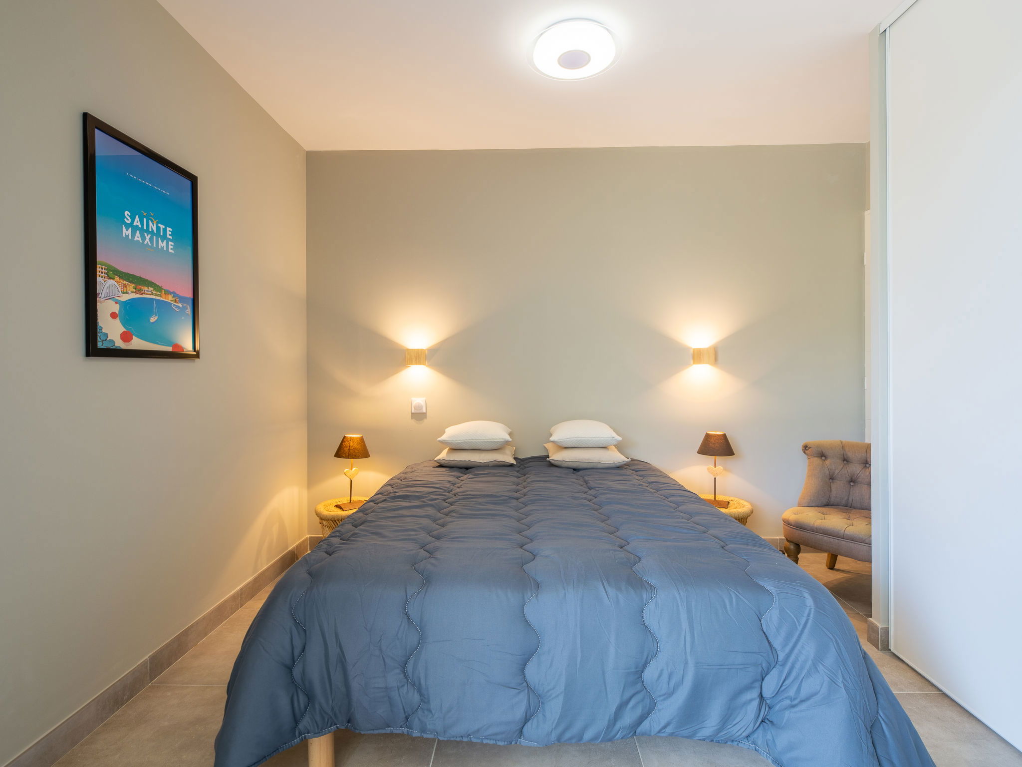 3-room apartment 75 m2, on the ground floor, south-west facing position. Spacious, beautiful and modern furnishings: entrance hall with separate WC. Large living/dining room with 1 sofabed (130 cm, length 190 cm), TV (flat screen). Exit to the terrace, to the patio. 1 room with 1 french bed (1 x 160 cm, length 200 cm). Exit to the garden. 1 room with 1 french bed (1 x 140 cm, length 190 cm). Exit to the terrace. Large, open kitchen (oven, dishwasher, 3 induction hot plates, toaster, kettle, microwave, freezer, electric coffee machine). Shower. Air-conditioning, forced-air heating. Terrace 20 m2, roofed, south-west facing position, patio 40 m2, south-west facing position. Terrace furniture. View of the swimming pool and the garden. Facilities: washing machine, iron, hair dryer. Internet (WiFi, free). Garage space n 28/29, height 190 cm, width 300 cm. Please note: non-smokers only. Maximum 1 pet/ dog allowed. Smoke alarm. Single storey accommodation, accessible by wheelchair or with reduced mobility. Offer by a private individual according to Art. 155, IV of CGI. 83115005166AV