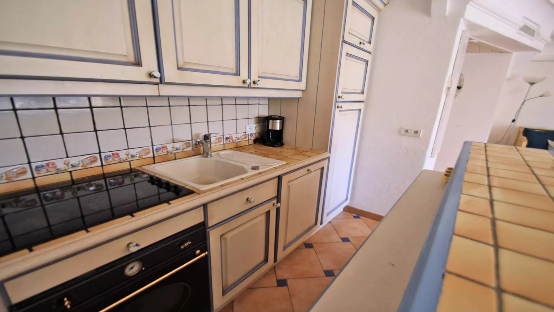 - Kitchen open to the living/dining room: 4-burner hob, dishwasher, coffee maker, toaster, kettle, oven, refrigerator, worktop...