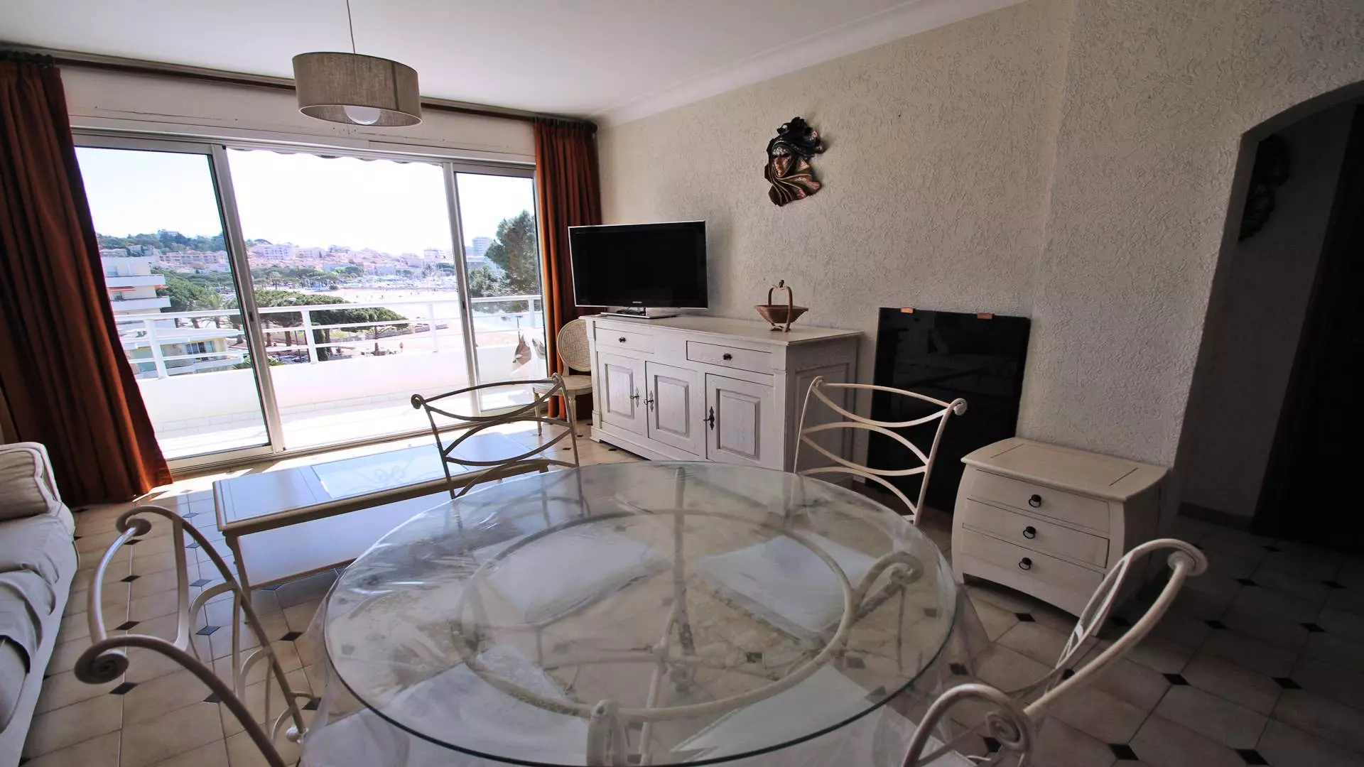 - Beautiful air-conditioned living room: sofa and flat-screen television, dining room with direct access to the terrace and sea view