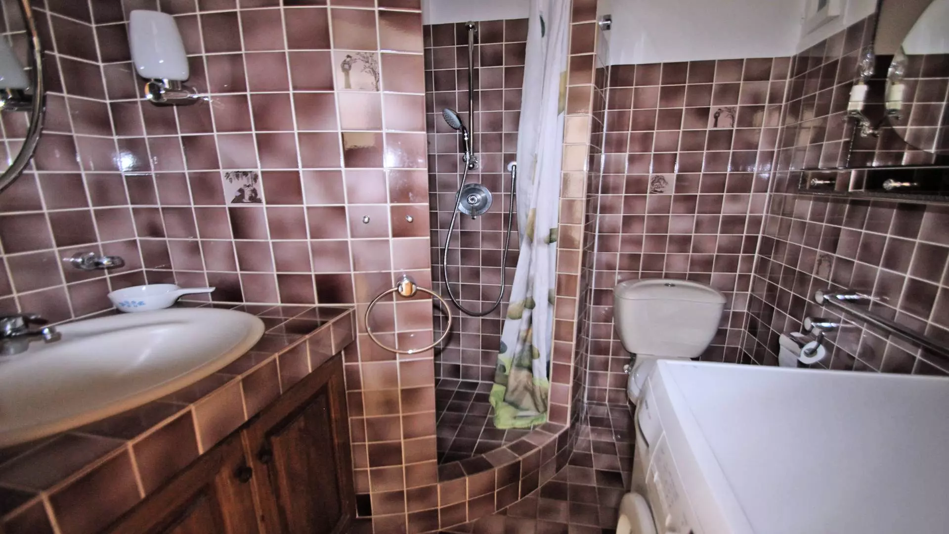- Shower room with shower, vanity unit and WC, washing machine