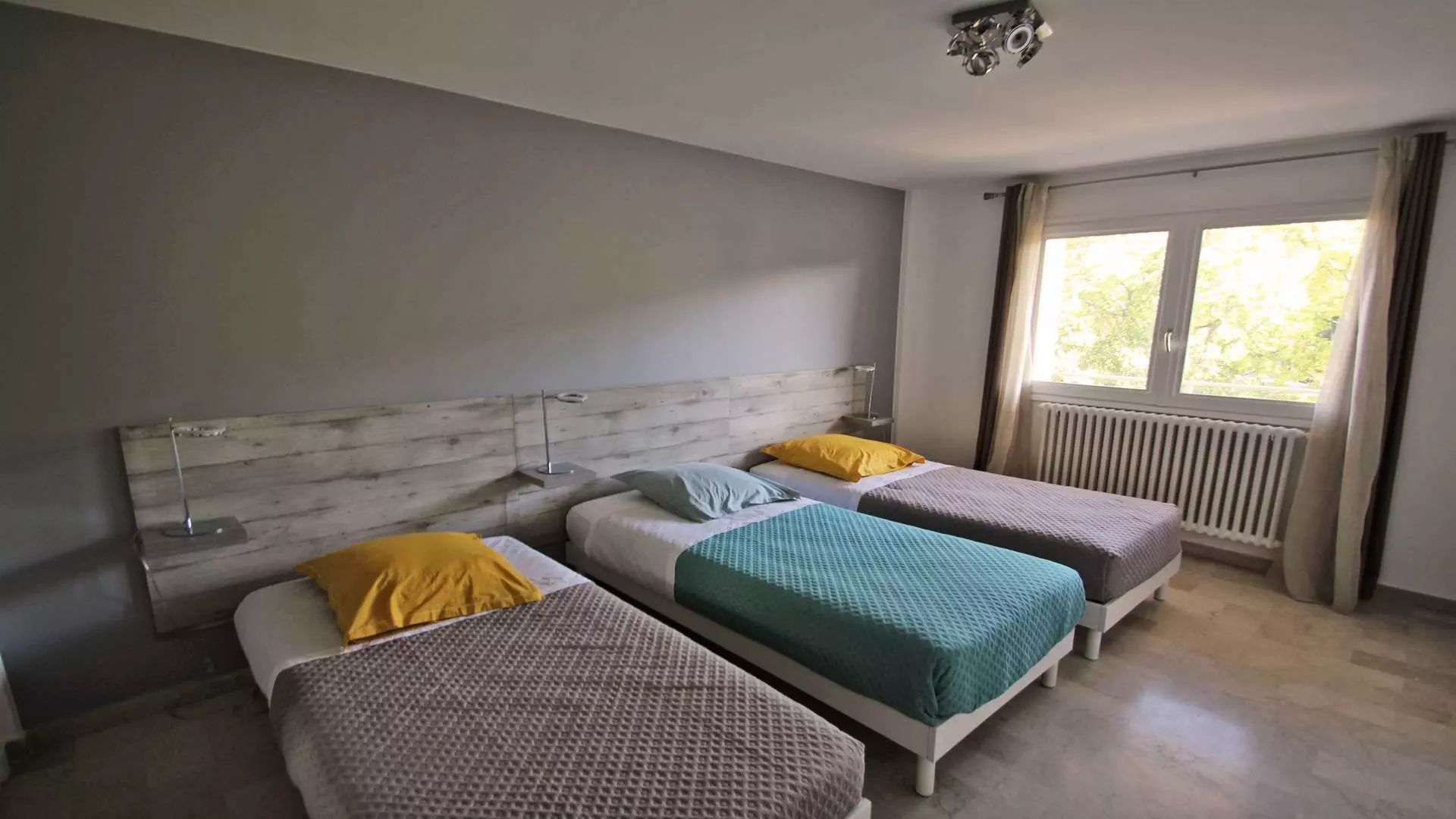 - Bedroom 2: 3 single beds 90, storage