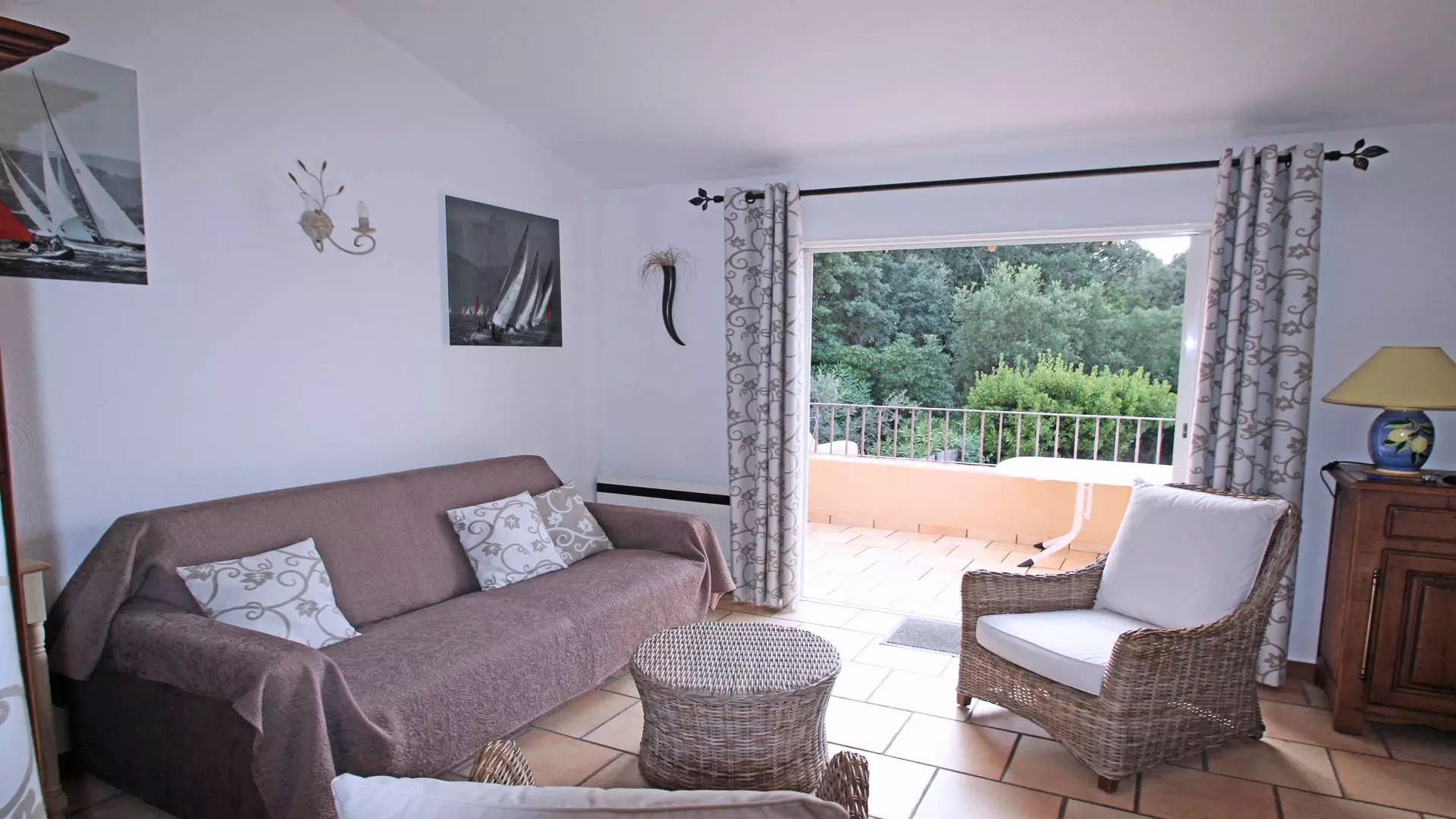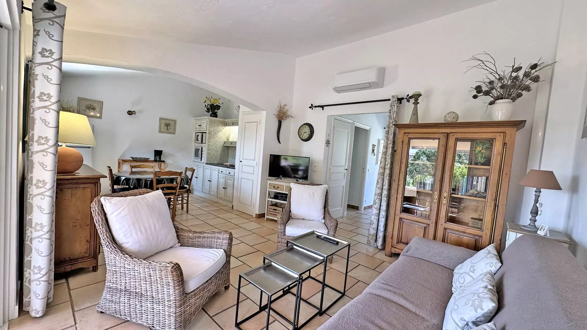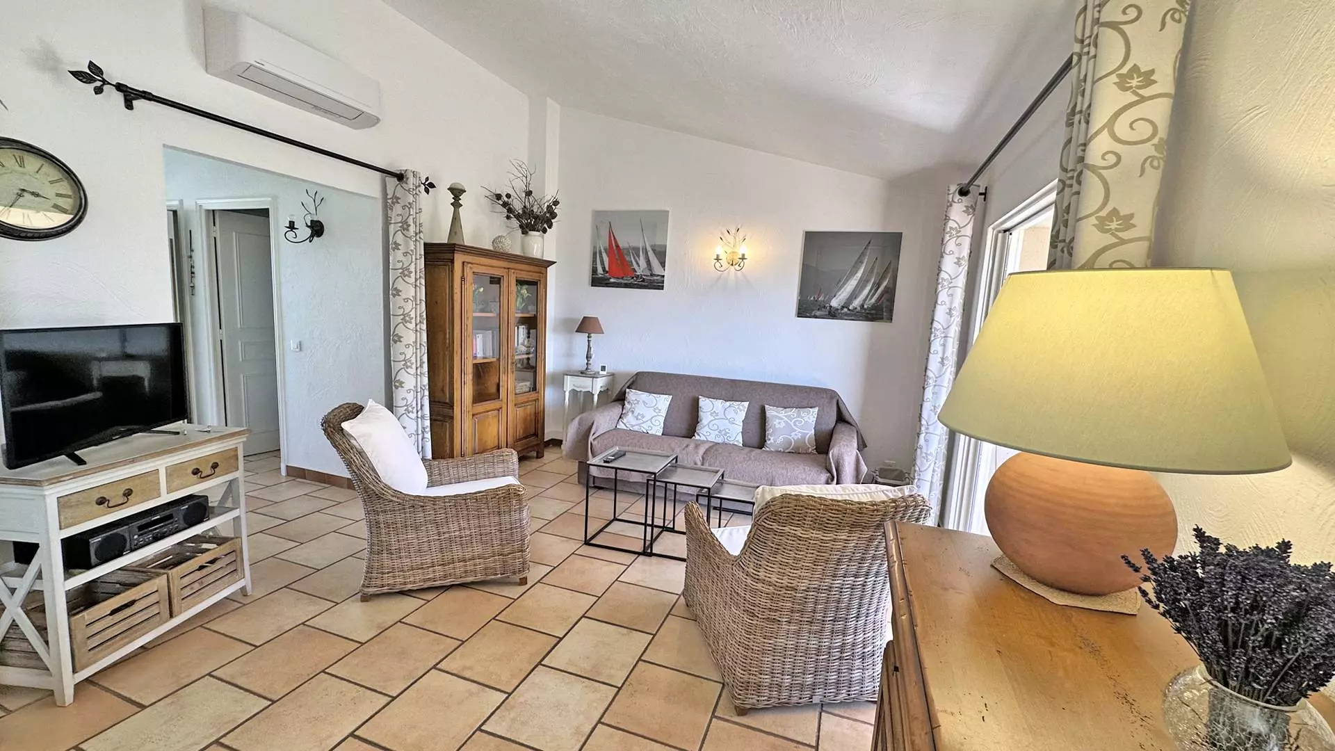 - Air-conditioned living room with rapido sofa bed (140), armchairs and flat screen television, terrace access