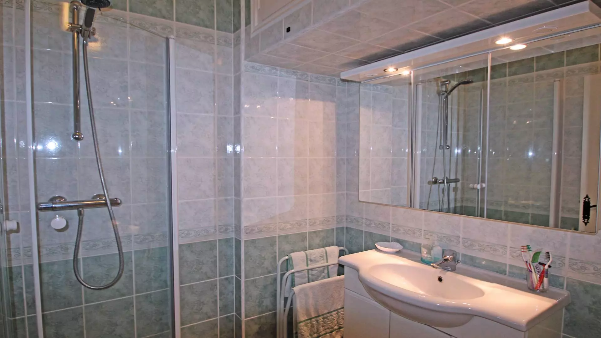 - Shower room with vanity unit, shower