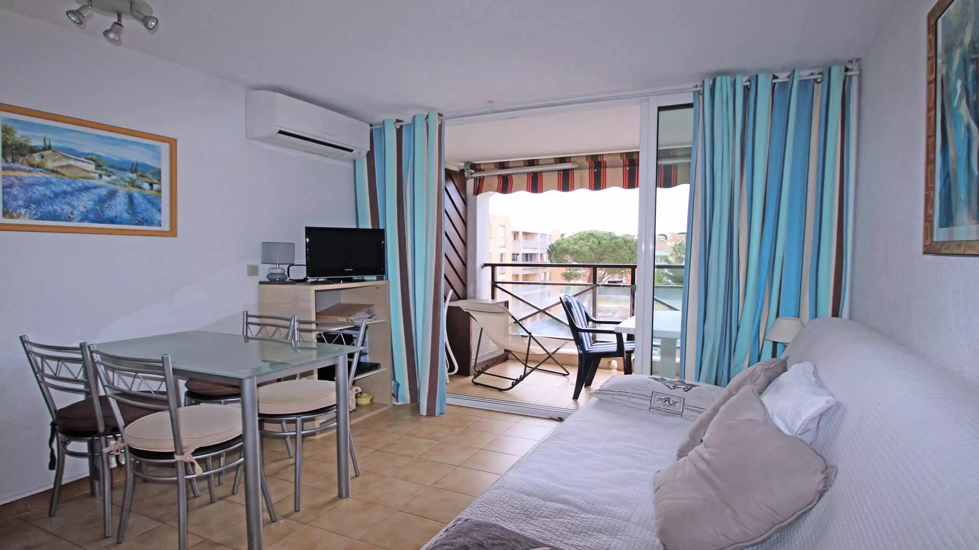 - Air-conditioned living room with 140cm sofa bed, flat screen television