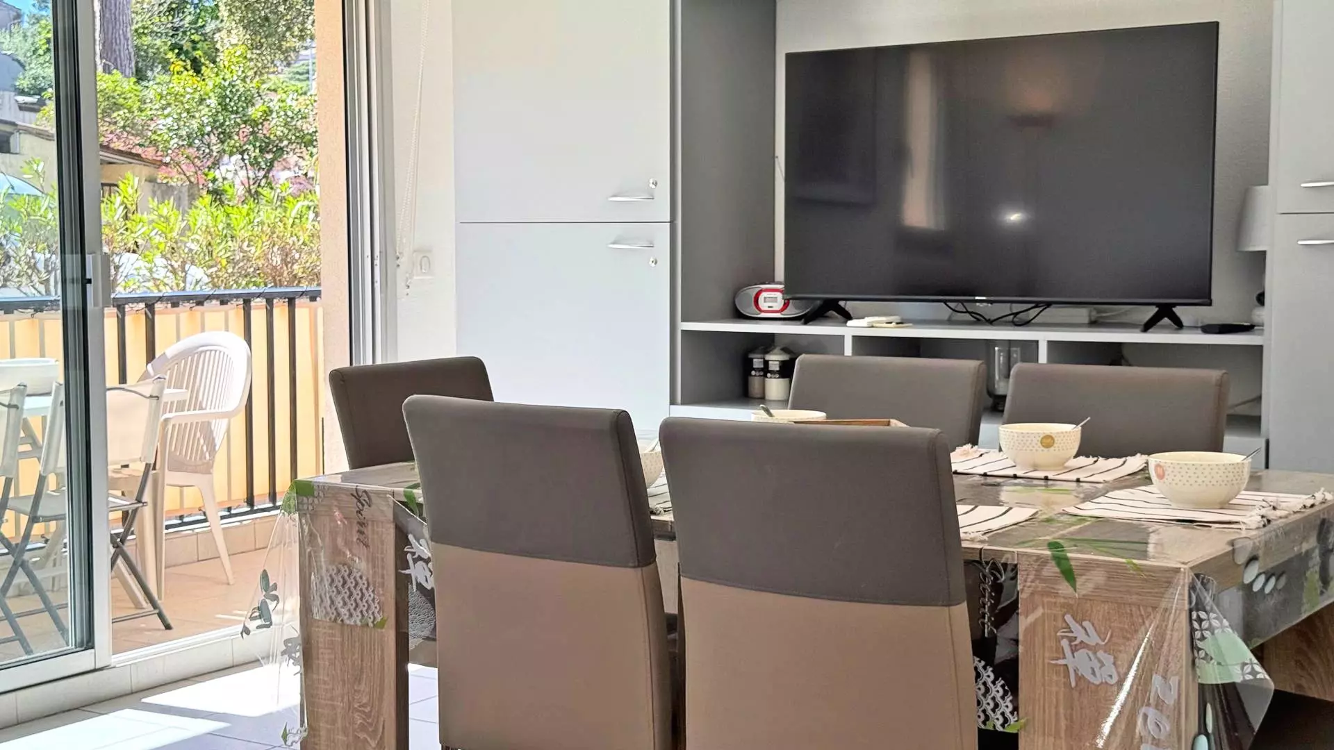 - Beautiful air-conditioned living room with "rapido" convertible sofa (140), extendable console dining table and 6 chairs, flat screen television, terrace access