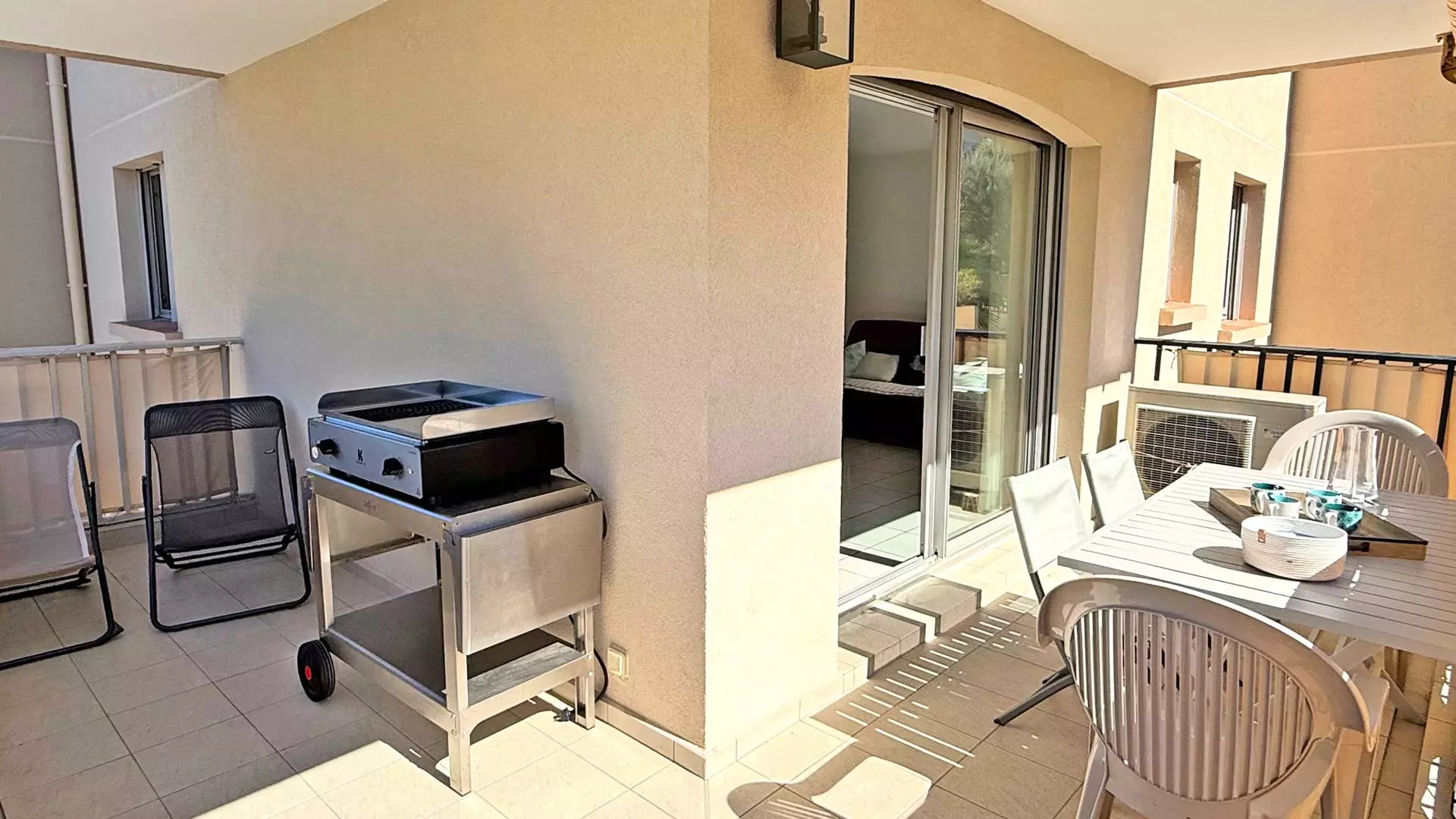 Beautiful holiday apartment that can accommodate up to 5 people in a secure residence with swimming pool, close to all shops and around ten minutes' walk from the town centre and the beach of Sainte-Maxime.