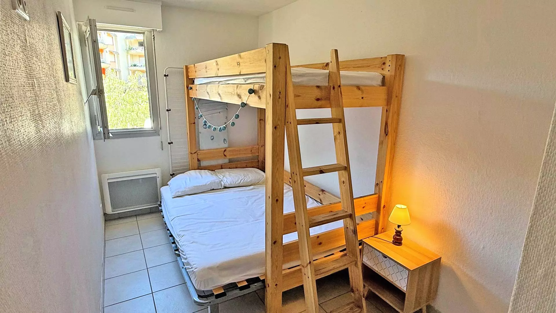 - Bedroom 2 with BZ sofa bed (140) and bunk bed (1x90), closet