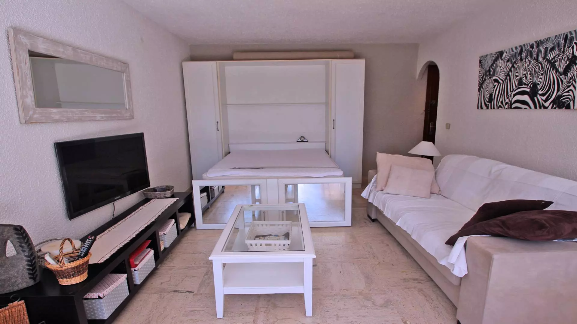 - Main room with fold-away bed (140) and "rapido" sofa bed (140), television