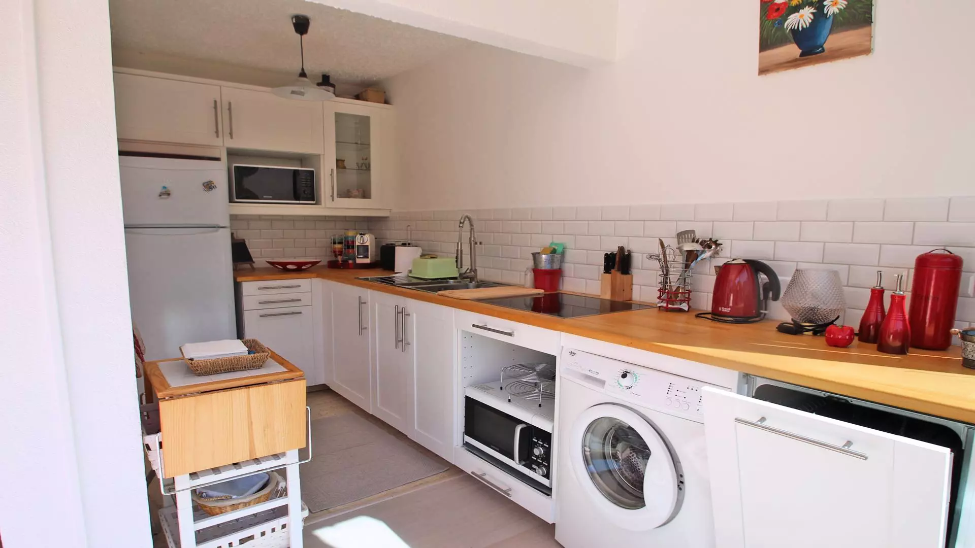 - Equipped kitchen (ceramic hob (4 burners), refrigerator, toaster, kettle, coffee maker, coffee machine, washing machine, microwave)