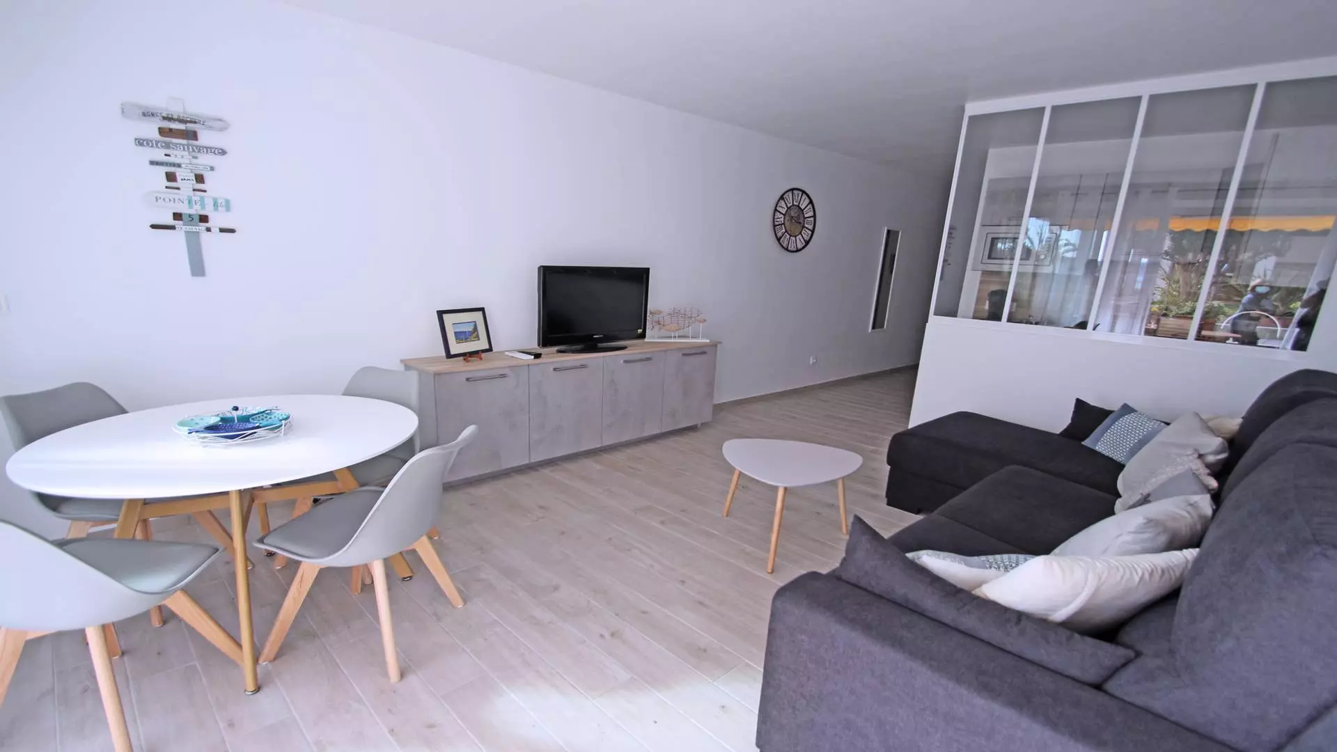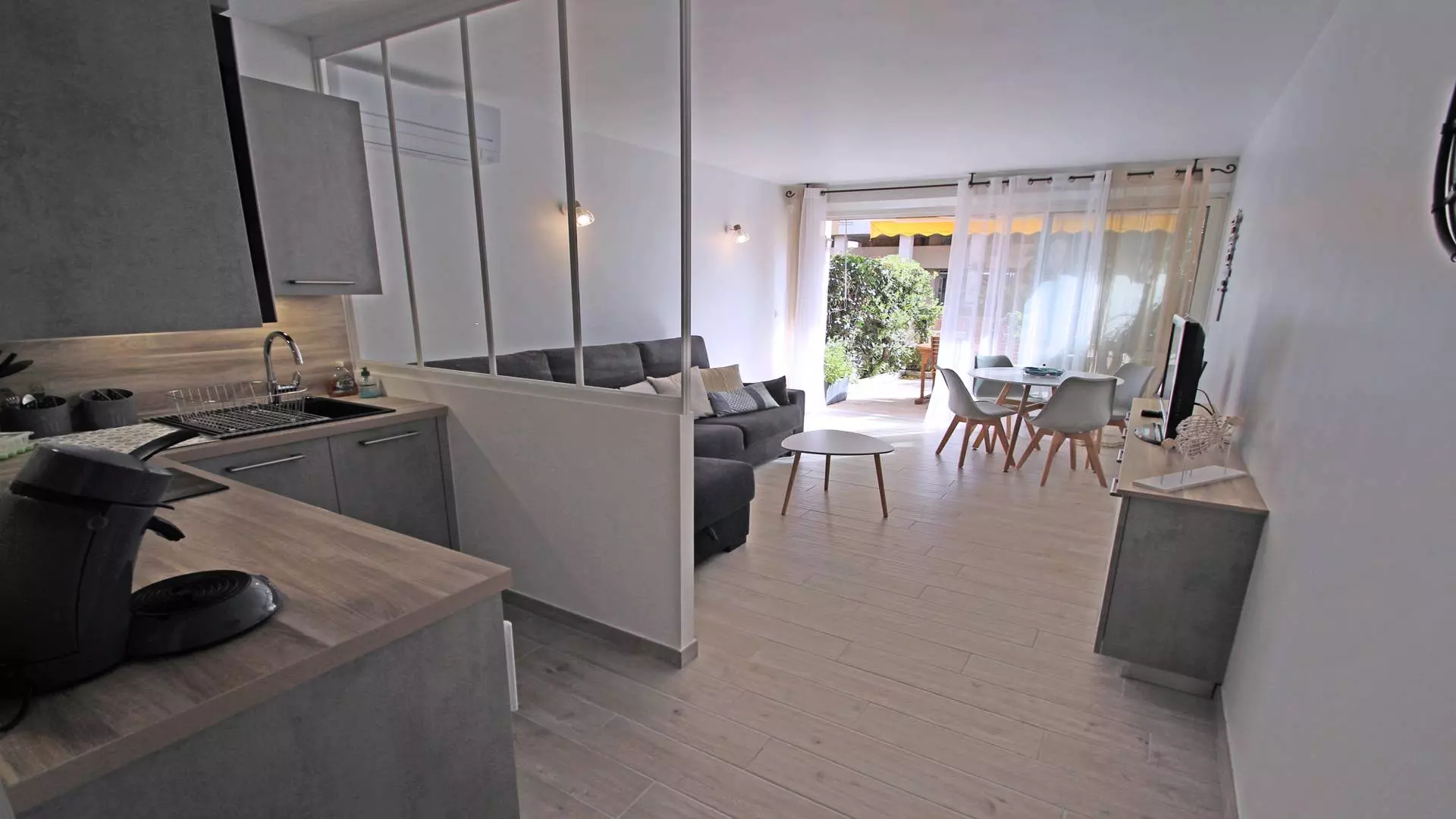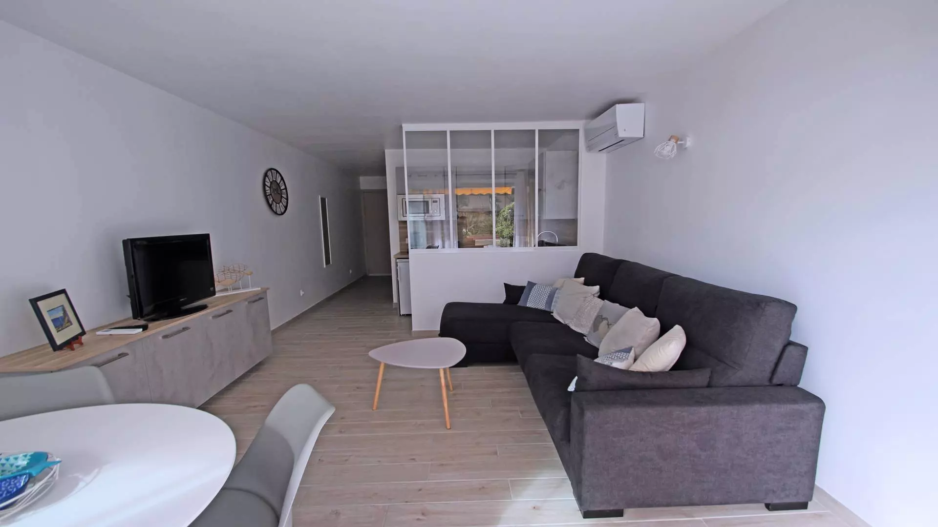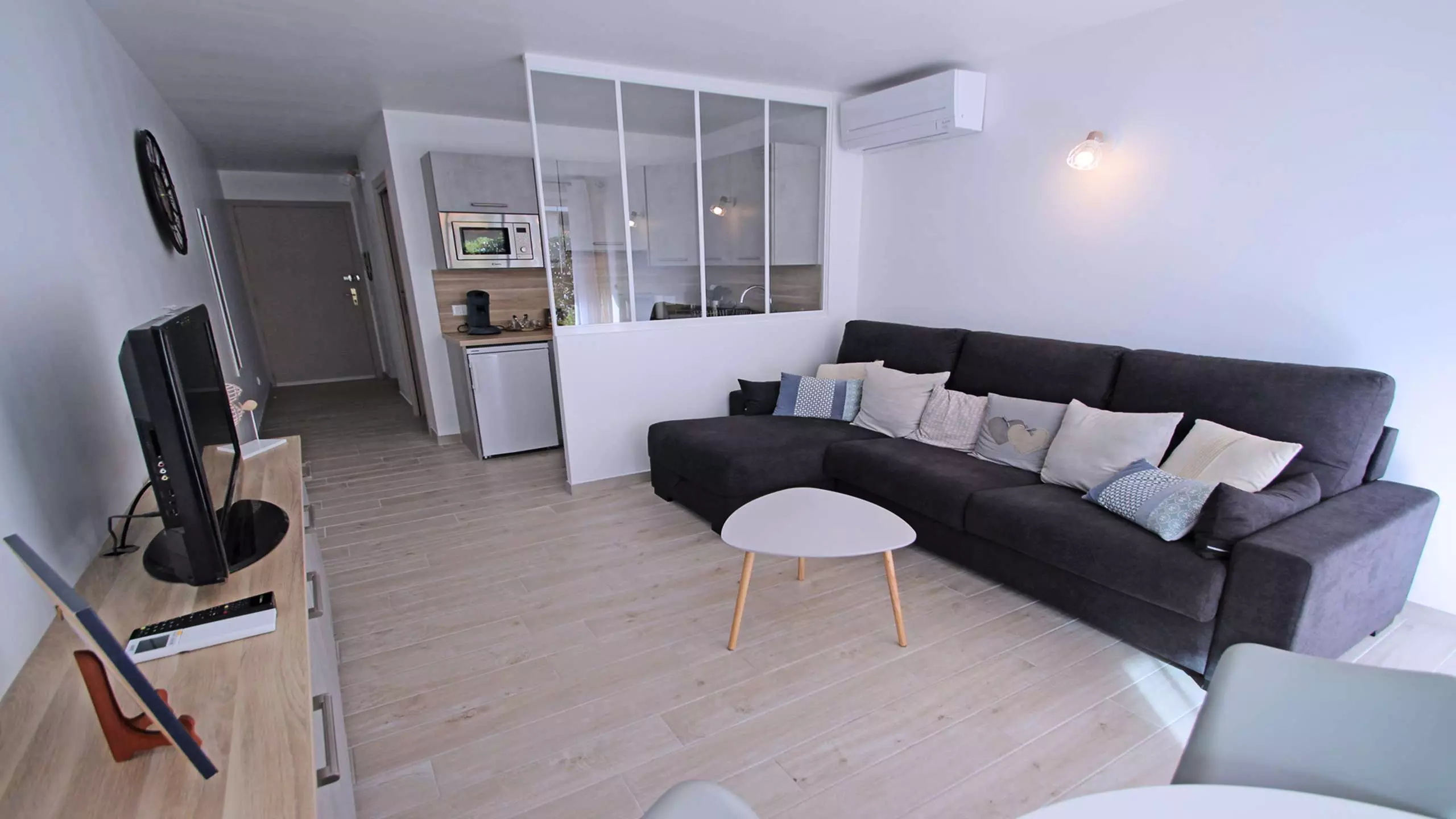 This magnificent, fully renovated studio for two people is located in a residence facing the port of Sainte-Maxime. You'll be captivated by its refined decor and high-quality amenities.