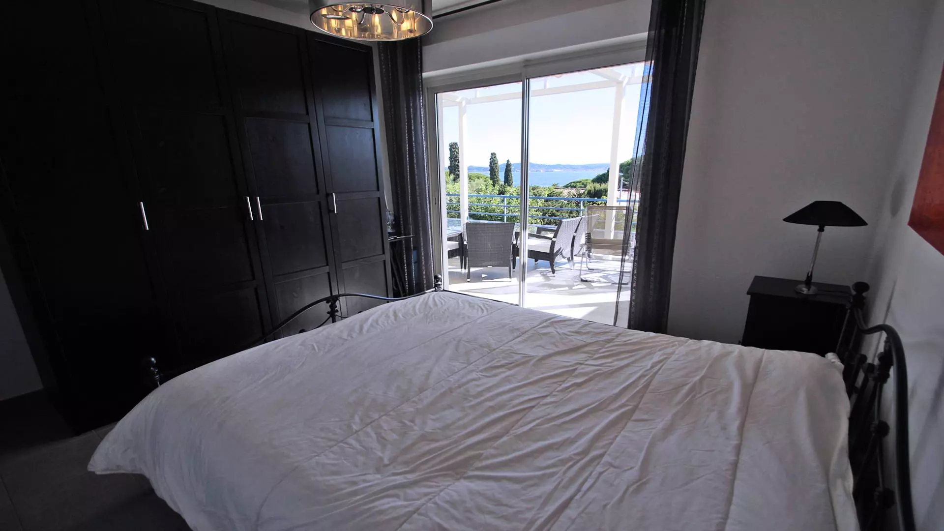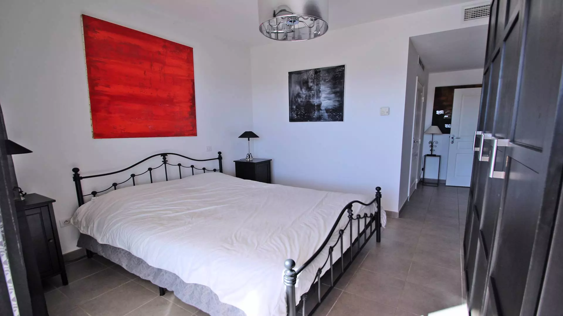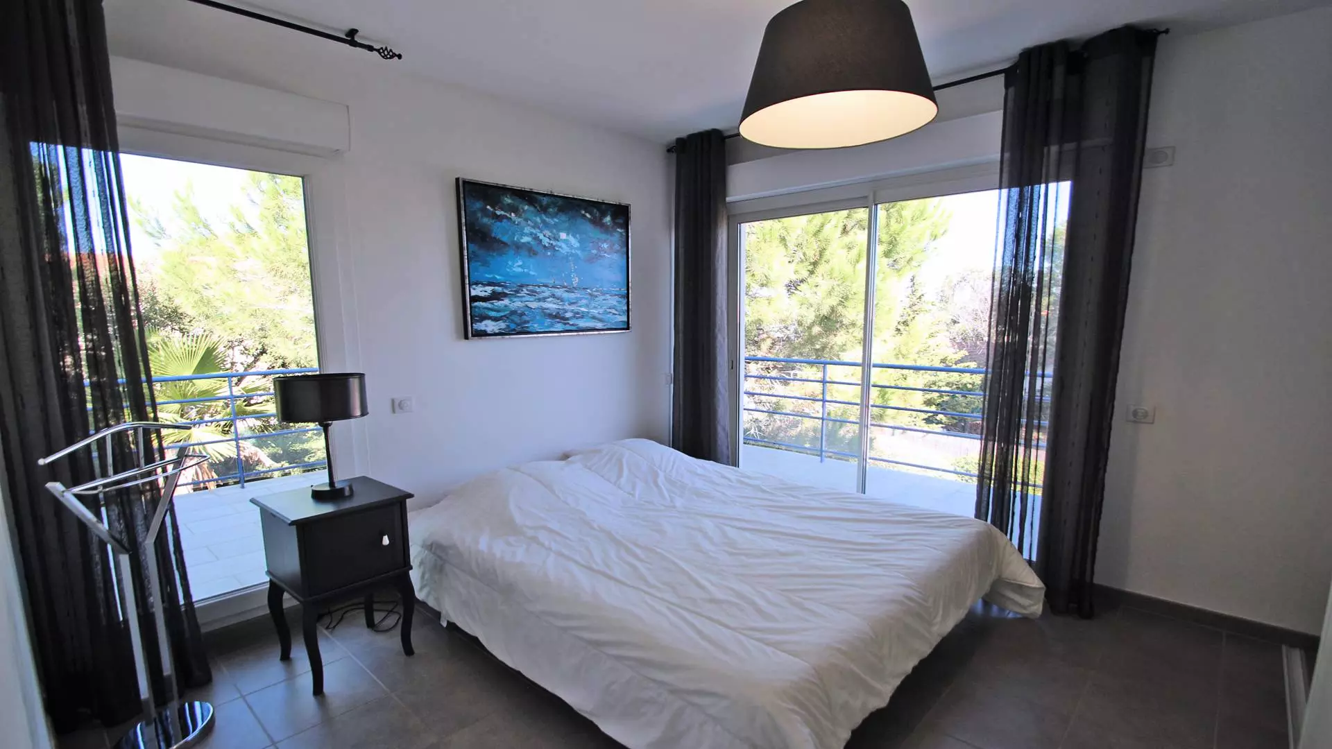 - Bedroom 1 with 160cm double bed, wardrobe, terrace access, sea view