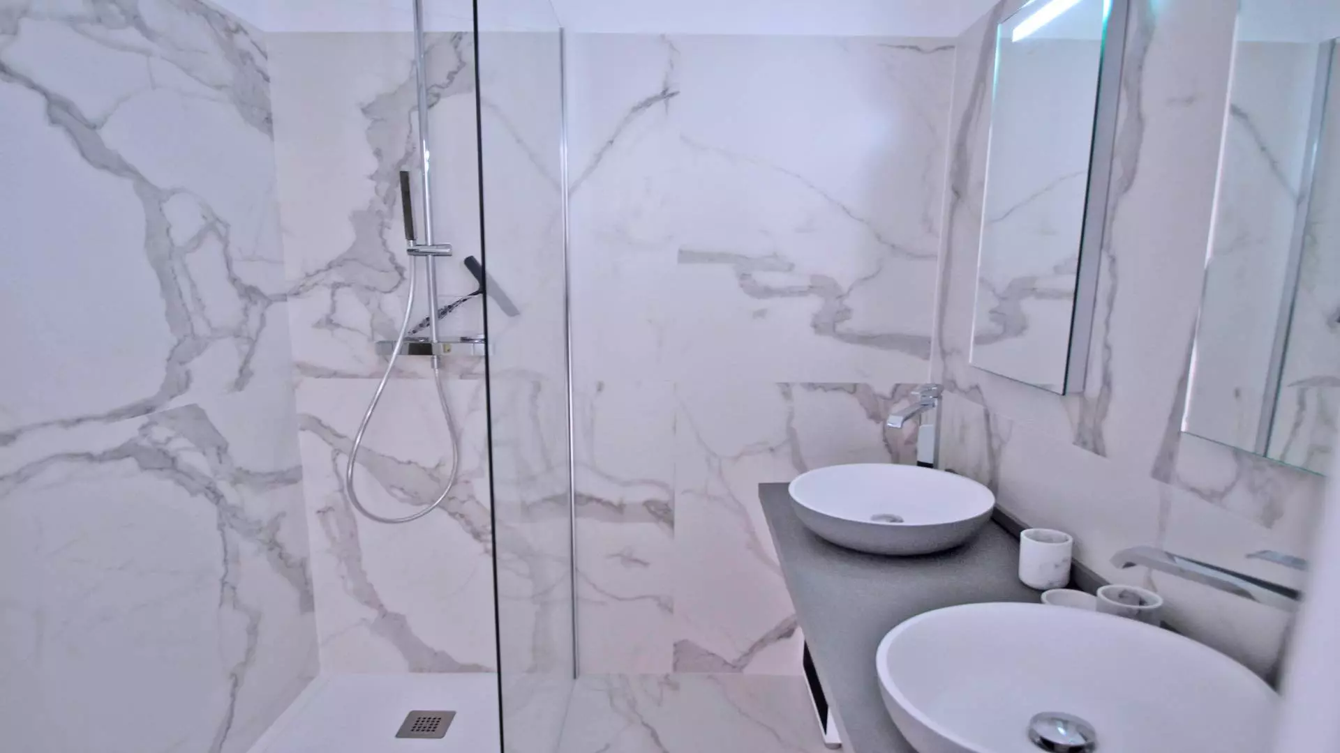 - Shower room with double sink, towel dryer and walk-in shower