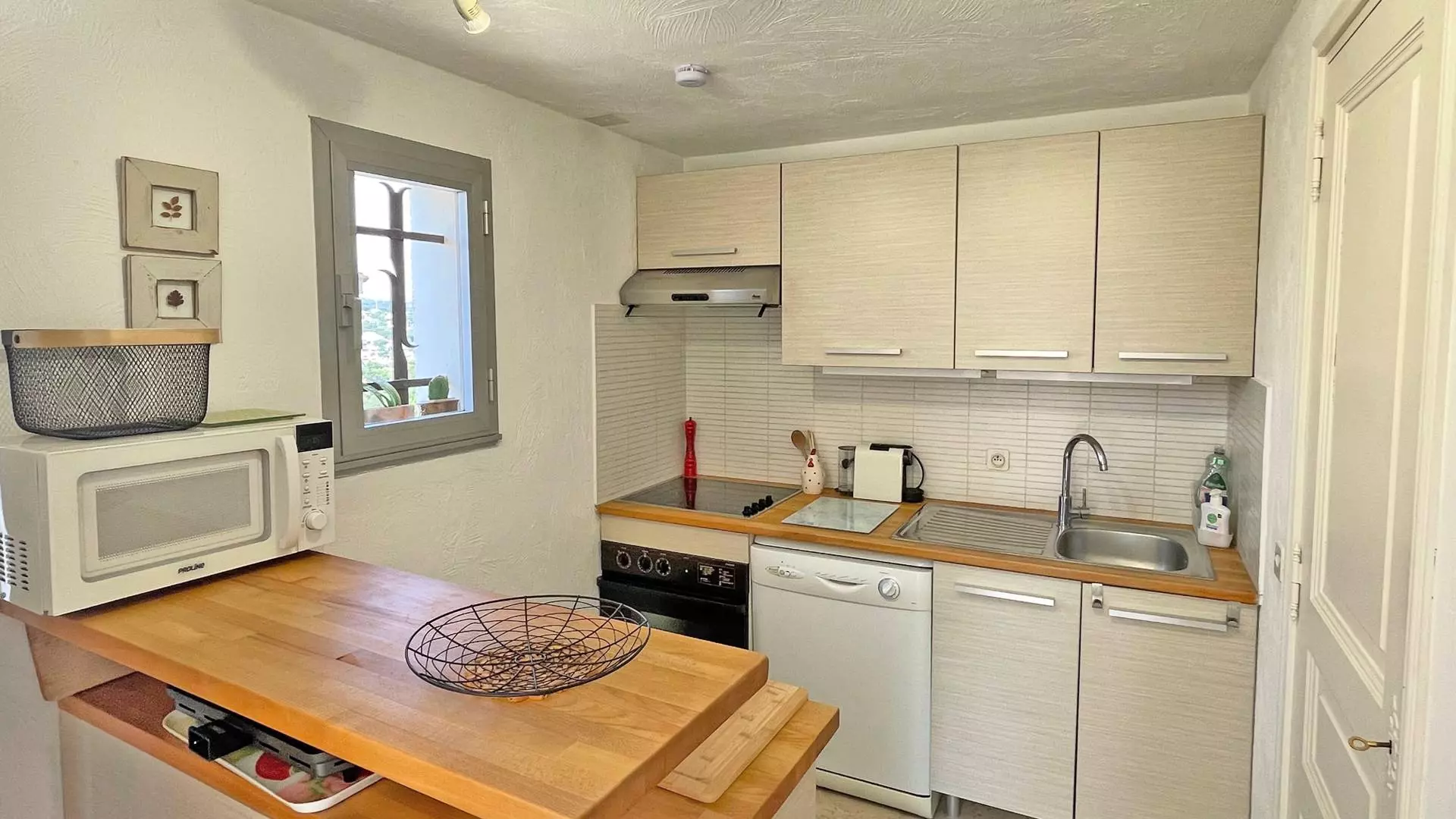 - Beautiful open kitchen, cupboards, ceramic hob, TOP fridge, dishwasher, oven, microwave, various dishes, etc.