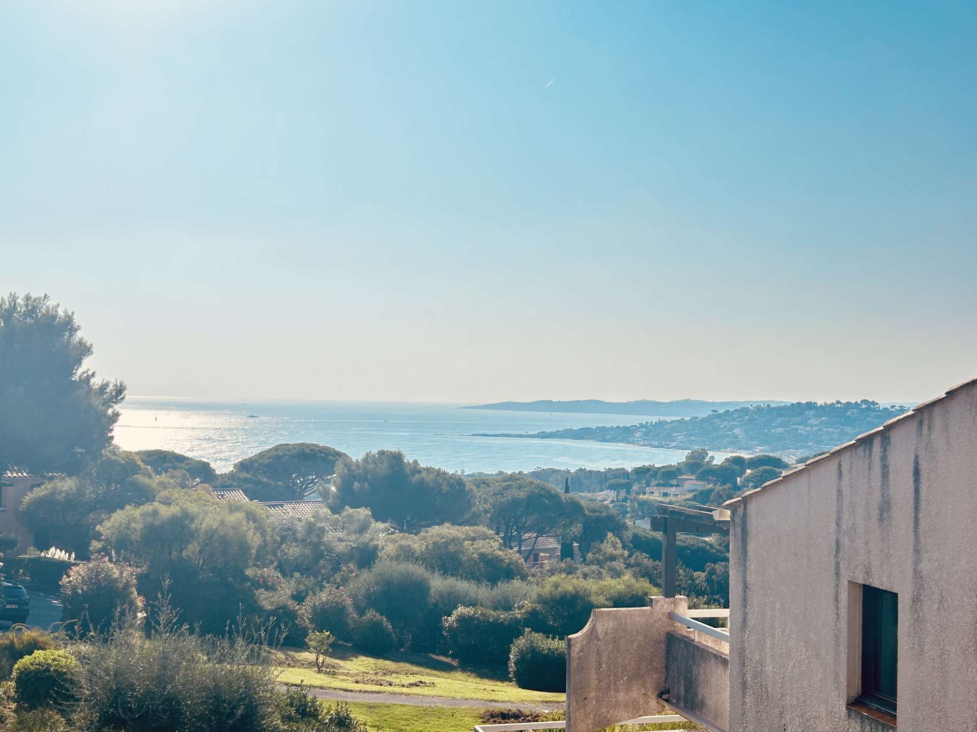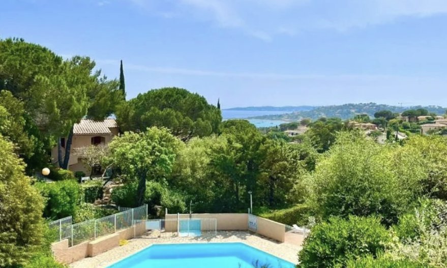 Residence "Les Coteaux de la Nartelle, 5 km from the center of Ste Maxime, in a sunny, elevated position on a slope, 400 m from the sea, 400 m from the beach. Shared: 10 ha park with plants and trees, swimming pool (6 m diameter, depth 140 - 240 cm, seasonal availability: 01.Jun. - 30.Sep.). Table tennis, pétanque court. Stepped path to the house. Parking (limited number of spaces). Shop 5 km, supermarket 2.5 km,