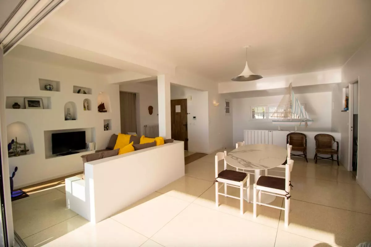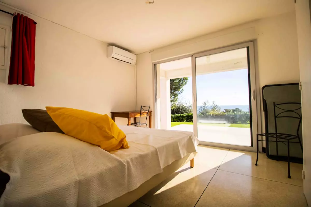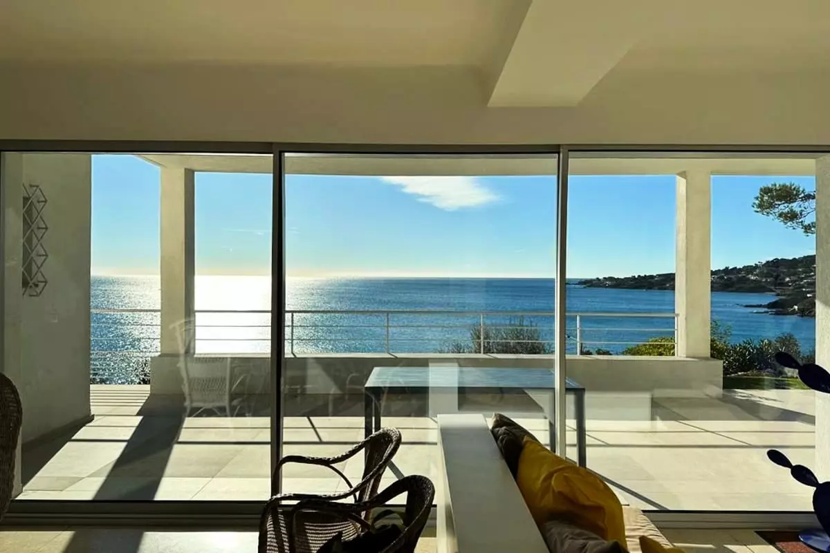 - a living room opening onto a terrace, with a 5-meter sliding window and an unobstructed view of the sea;