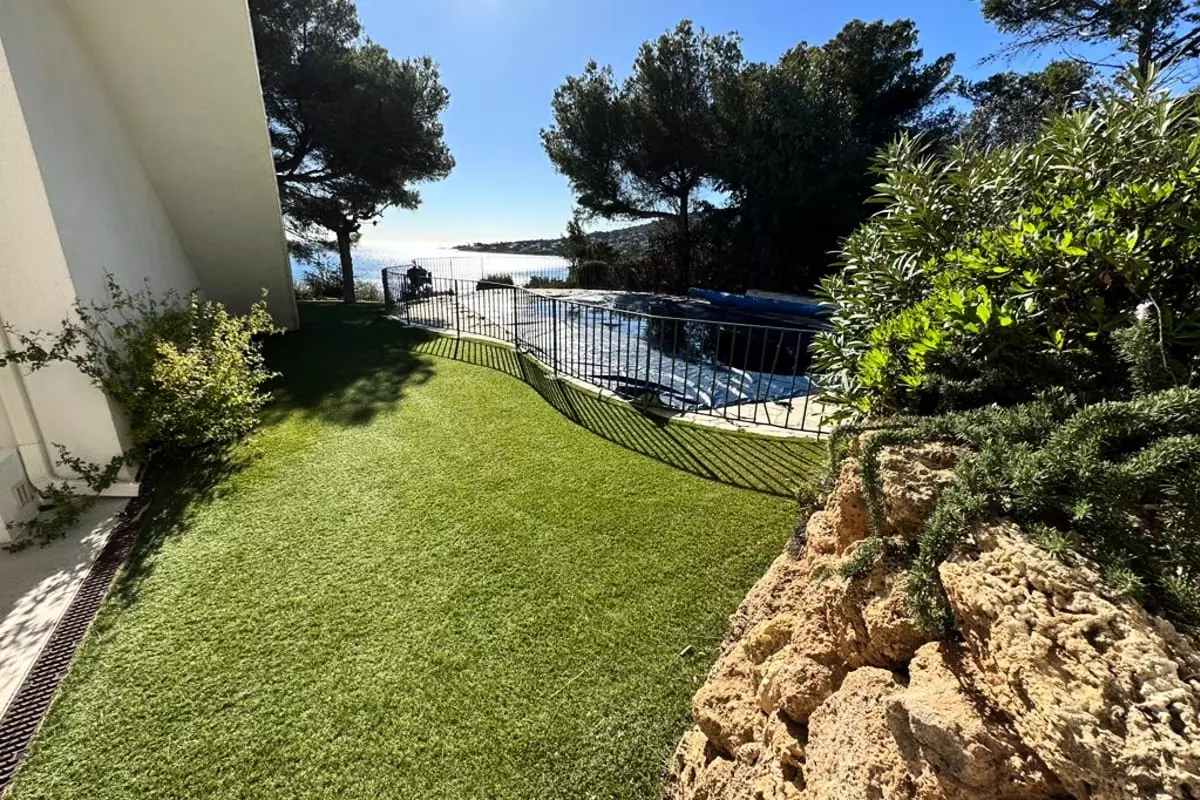 - a 70m² covered terrace with a dining table for 10 people, a 20m² roof terrace and a 30m² garden terrace. The three terraces offer a beautiful unobstructed view of the sea;