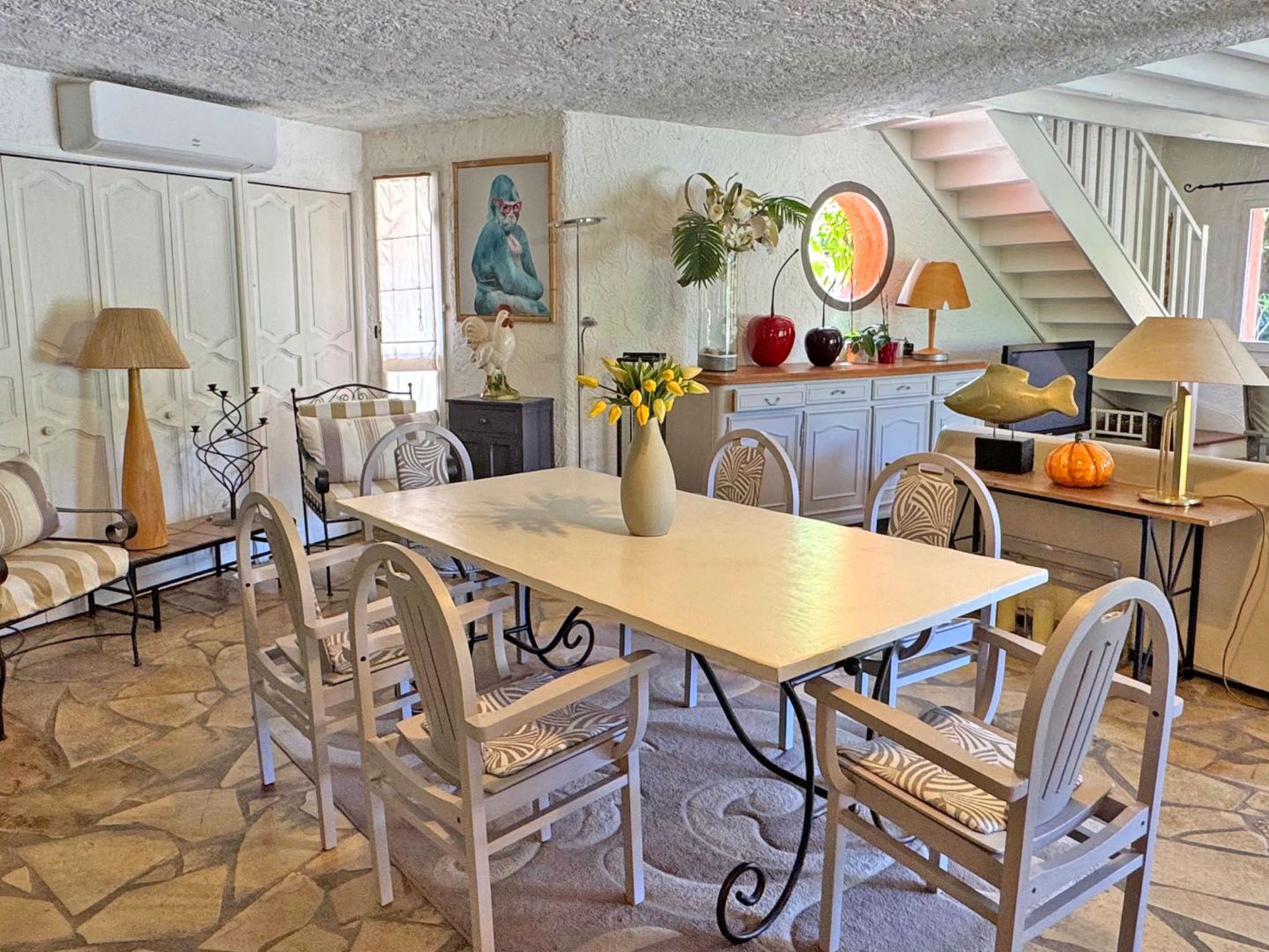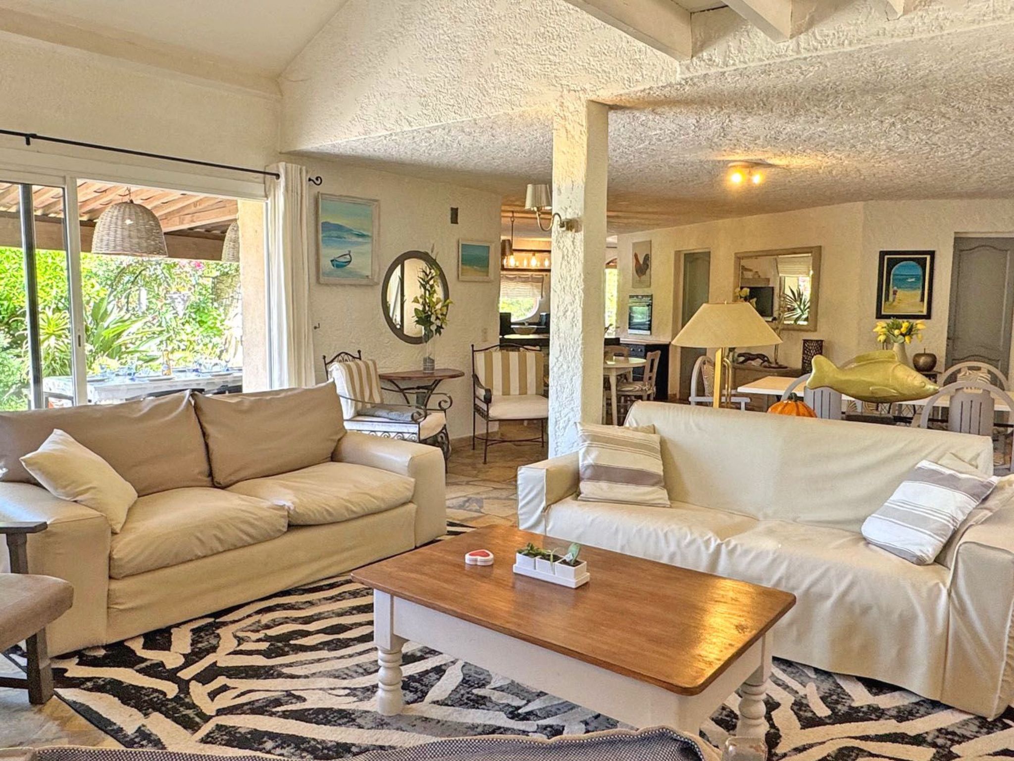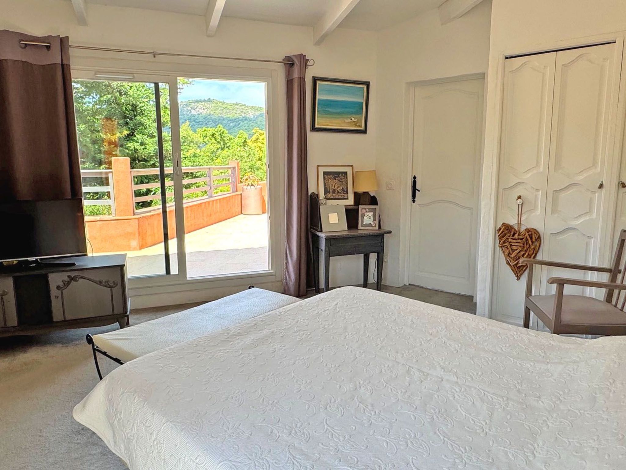 This detached villa is just 5 minutes from the centre of Le Plan de la Tour and the shops. You'll enjoy a haven of peace and quiet, yet close to the beaches and surrounding tourist attractions.Unclassified accommodation or awaiting classification*.Ground floor- Entrance hall- Laundry area with washing machine- Open-plan kitchen with oven, microwave, gas hob, dishwasher, fridge with freezer, electric coffee machine, Nespresso, etc...- 65 m² living space divided into 2 areas: dining room and lounge with access to terrace and swimming pool- Bedroom 1: Double bed 160x200 and wardrobe- Bedroom 2: Single beds 2x80x190 and wardrobe- Shower room with shower and vanity unit- Separate WC floor :- Bedroom 3: Double bed 160x200, TV and wardrobe- En-suite bathroom with bath, vanity unit and WC- Mezzanine lounge- Secure gated parking for 3 cars- Private swimming pool 10x5m with sun loungers- Terraces and patios for relaxing- WiFi access- Private swimming pool- Peaceful setting- In the heart of the Massif des MauresReception and key collection times :Monday to Friday between 3pm and 6pm maximum.Saturdays (July - August) between 4pm and 6pm maximum.Sundays and public holidays (except Saturdays): independent arrival from 3pm (key box, details given after booking).If you wish to arrive outside these times, please enquire before booking.Services included:- End-of-stay cleaning- Disposable mattress and pillow protectors- Kitchen towels- Bathroom matsHouse rules :- No parties or festive events- No smoking insideDistances:- Plan de la Tour town centre: 3,800m- Sainte-Maxime town centre: 12,000m- Shops: 3,000m- Beach: 8,000m. 8309400008838 // Reg. Nr.: 8309400008838