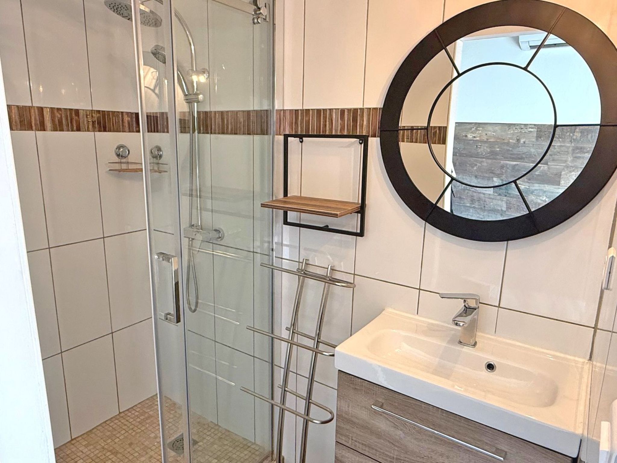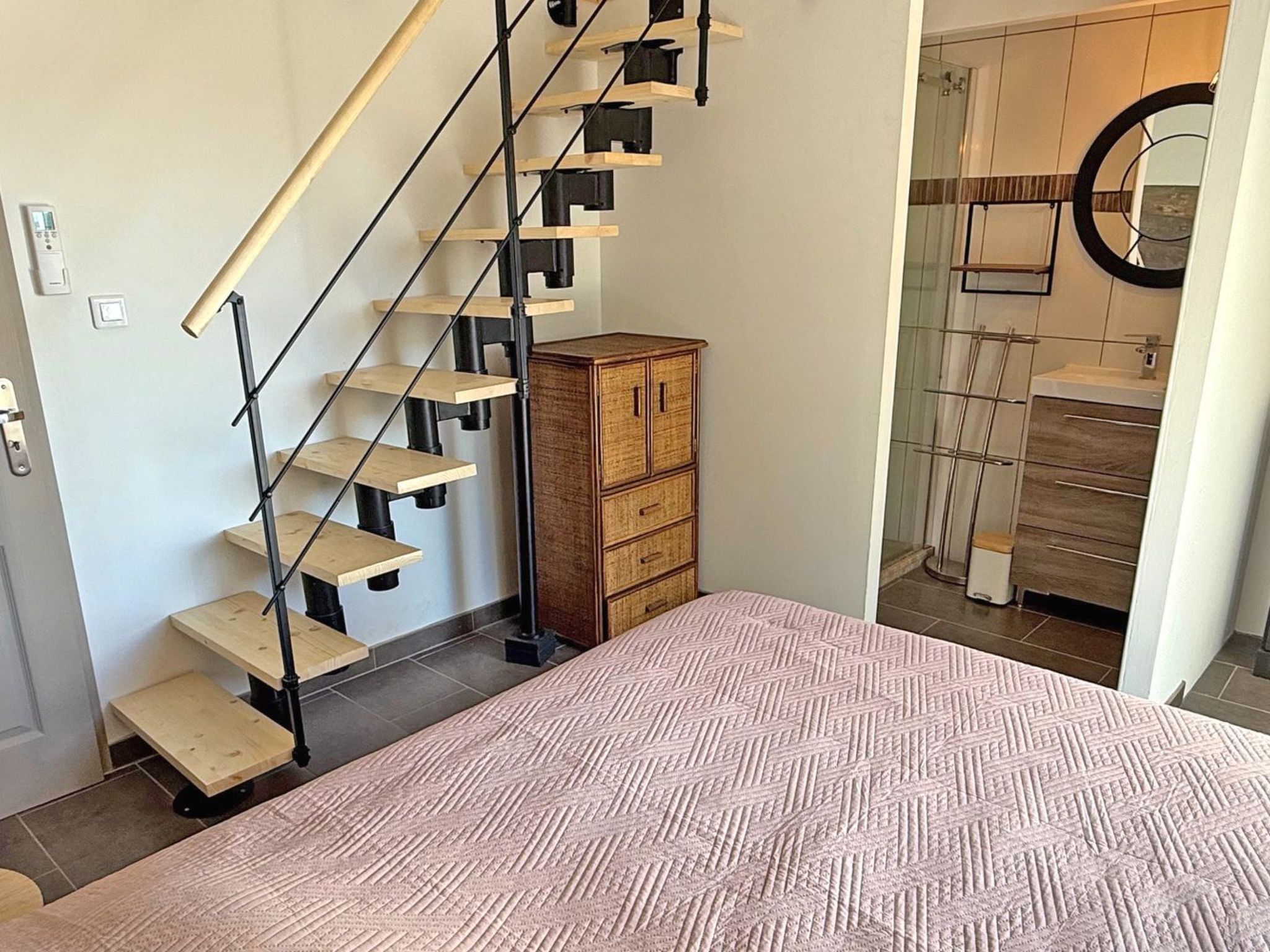 - Bedroom 2 air-conditioned (+ mezzanine storage area): 140cm double bed, wardrobe and shower room with shower and vanity unit