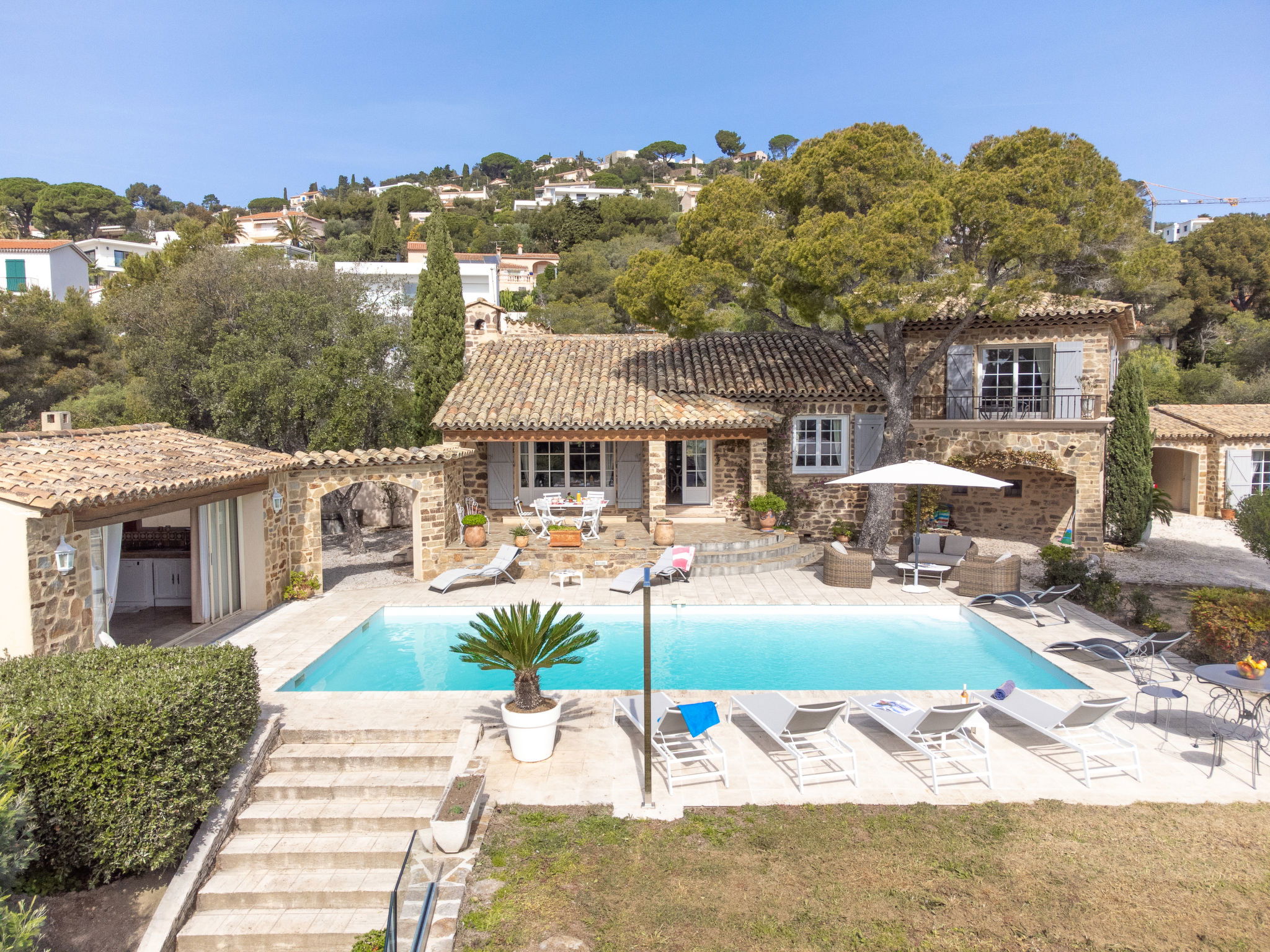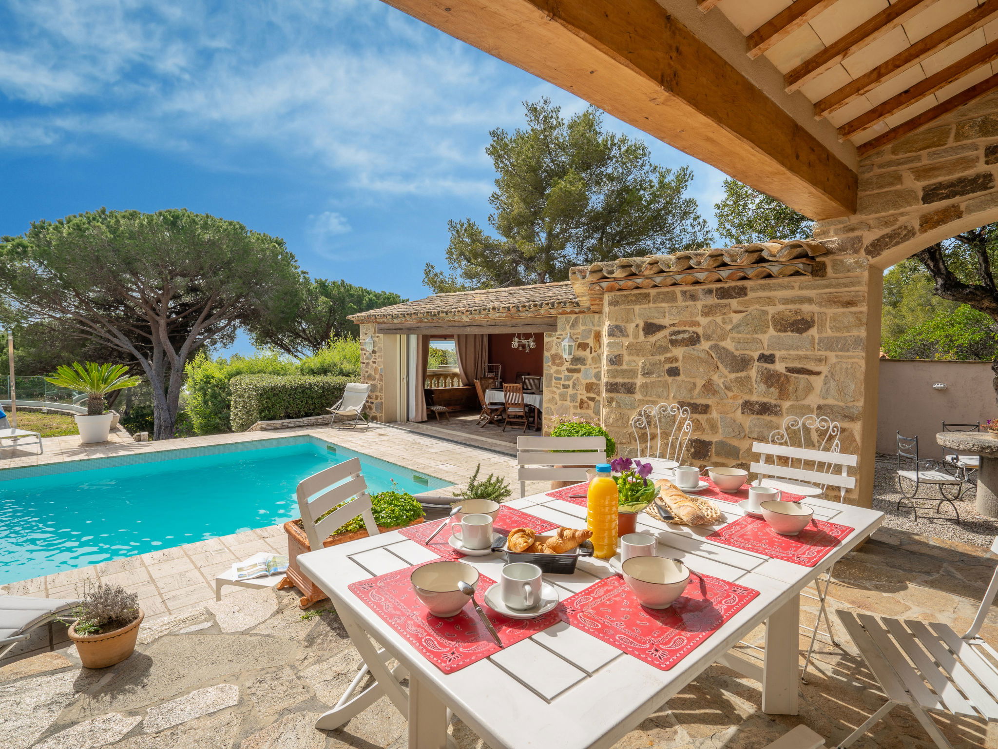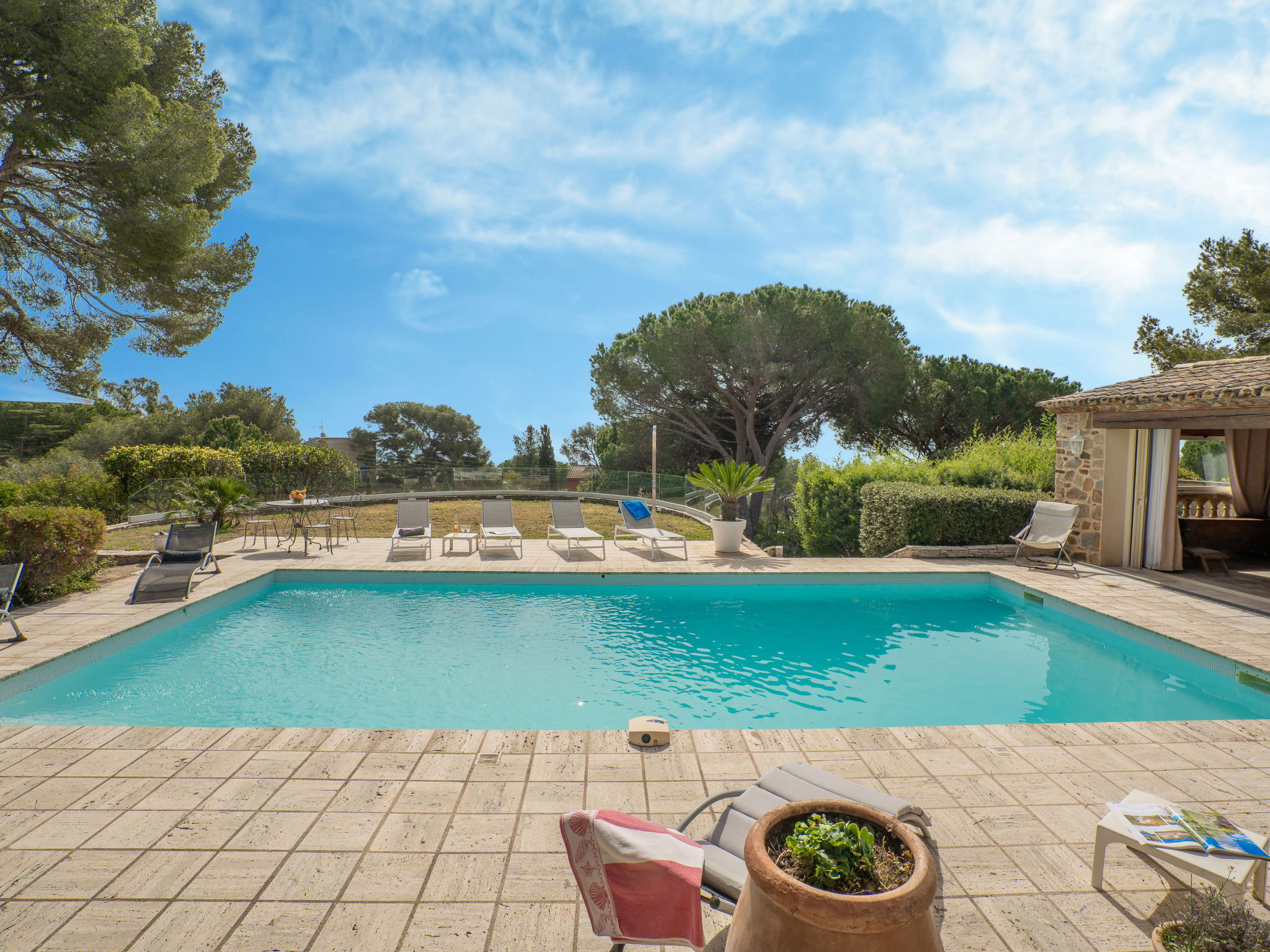 Very beautiful single-family house "La Crischona". 2 km from the centre of Les Issambres, 10 km from the centre of Sainte Maxime, 45 km from the centre of Cannes, in the residential district, 300 m from the sea, 300 m from the beach. Private: property 2'400 m2 (fenced), well-kept garden, swimming pool (10 x 5 m, depth 50 - 270 cm, seasonal availability: 01.Jan. - 31.Dec.) with alarm system and salt-electrolysis pool-cleaning system. WC in the pool area, outdoor shower, pool house with fridge, parking on the premises. Carport. Shop 2 km, sandy beach, rocky beach 300 m. As part of the water restriction measures linked to the drought in certain French areas, please note that the swimming pool may be closed until the lifting of the legal restrictions authorizing again the filling and the top-up in water from all swimming pools and basins for private use. Here you will find all the official information on the measures to limit or suspend the use of water in France : Propluvia - Accueil (developpement-durable.gouv.fr).