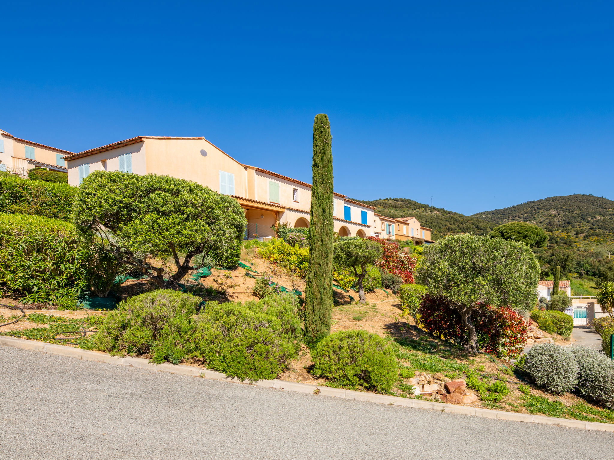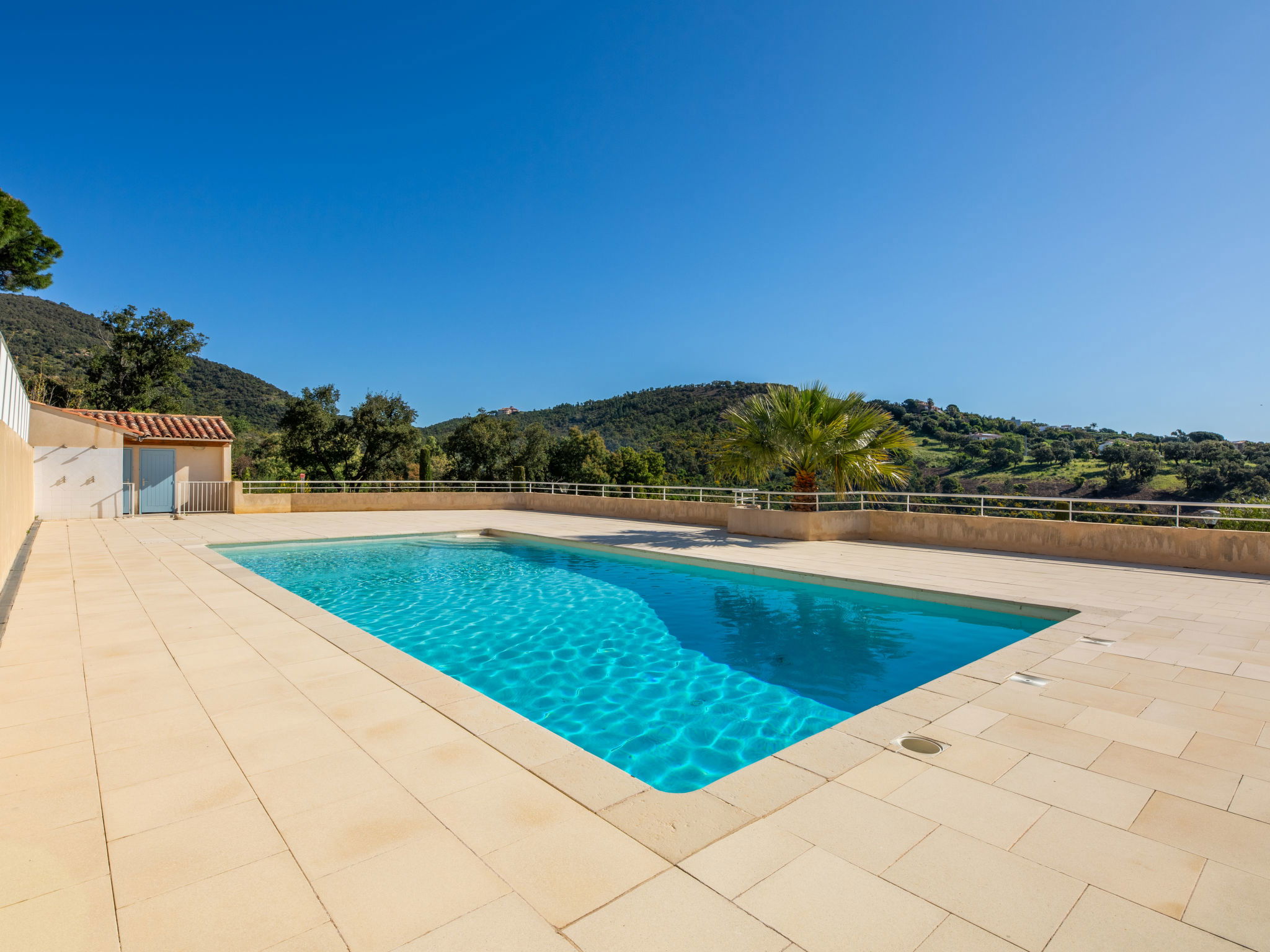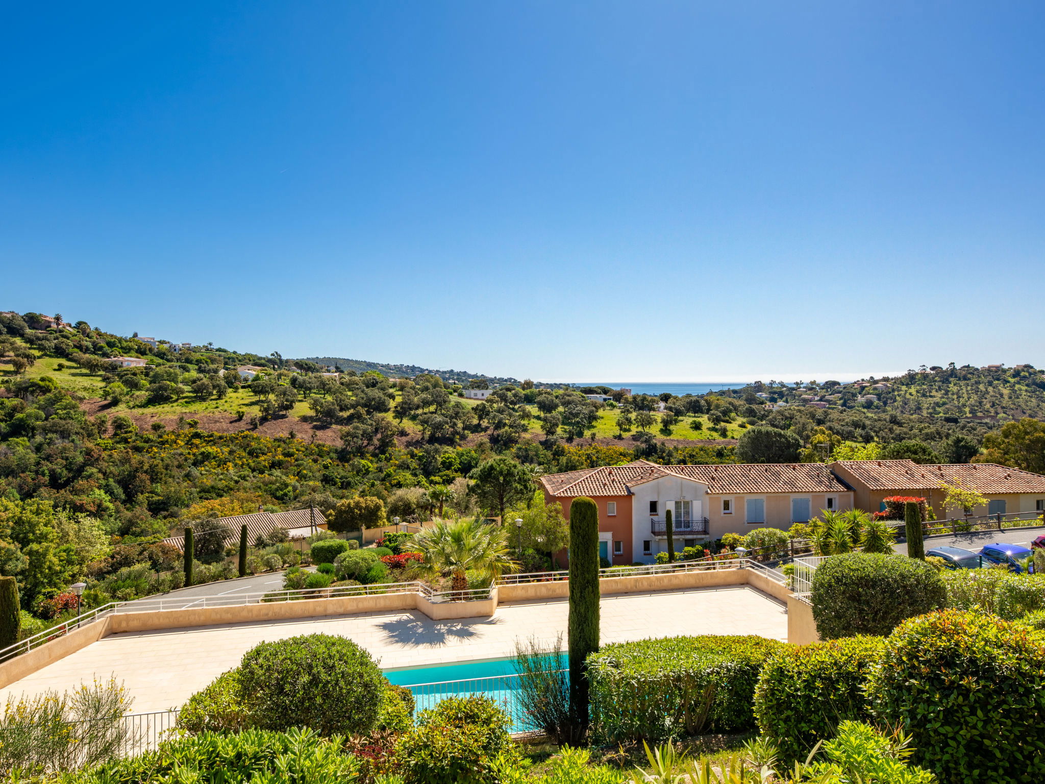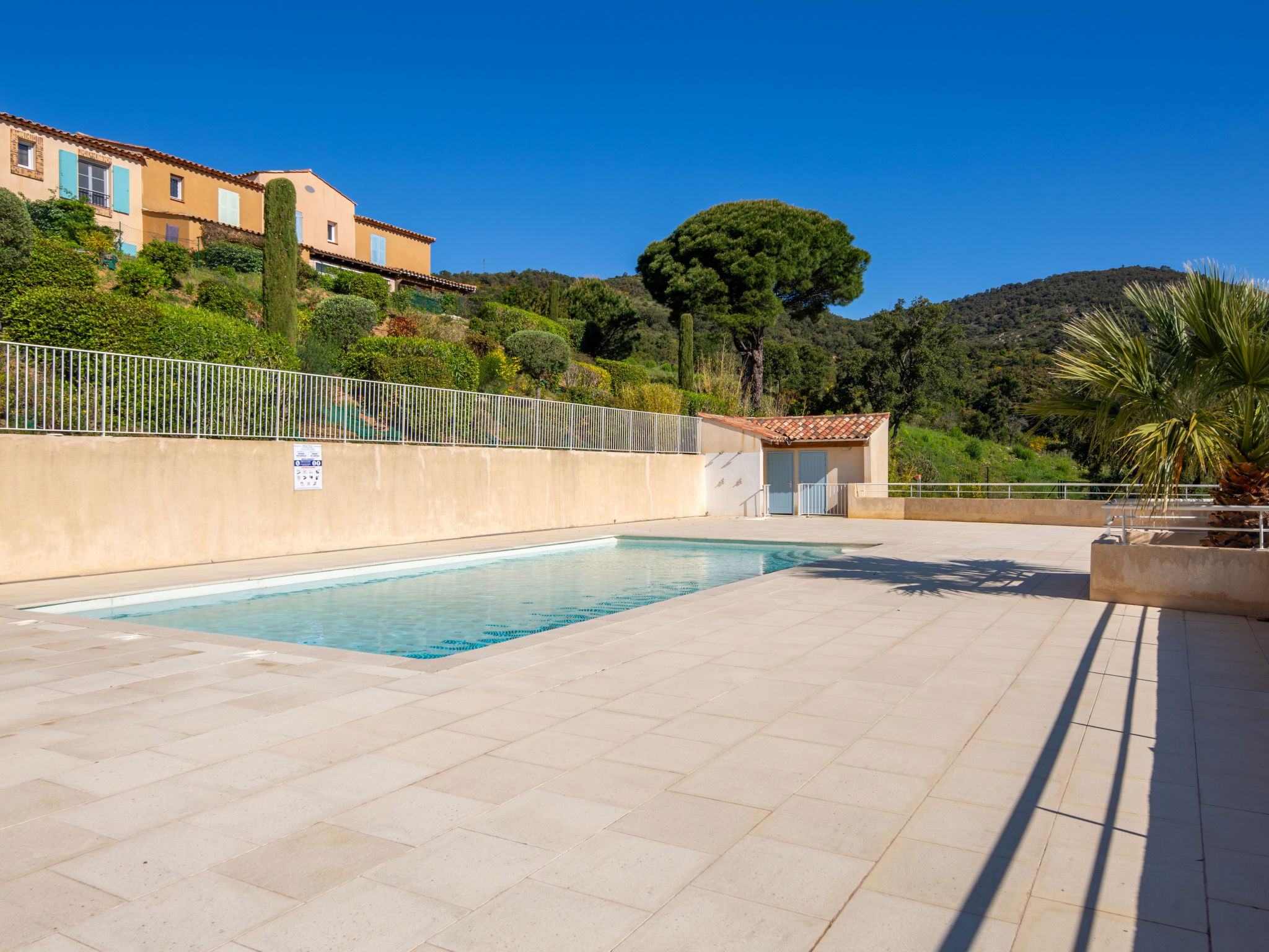 Residence "Les Coralines". Outside the resort, 2.7 km from the centre of Les Issambres, 1.7 km from the sea, 1.7 km from the beach, in a cul-de-sac, in the countryside. For shared use: swimming pool fenced (seasonal availability: 01.Jun. - 30.Sep.). Parking. Shop 2 km, supermarket 2 km, restaurant 2 km, bar 2 km, bakery 2.7 km, 35 minute walk to the centre, bus stop "Plage de la Garonnette" 1.9 km, railway station "Saint-Raphael TGV" 20 km, sandy beach "La Garonnette" 1.7 km, thermal baths "Thalasso Les Issambres" 2.6 km. Sports harbour 2 km, golf course (18 hole) 8 km. Nearby attractions: Aqualand waterpark 9 km, Azur Park attractions 20 km, Saint-Tropez/Ramatuelle 22 km, Port-Grimaud 18 km, Navette / shuttle boat St-Tropez 15min 2 km, Gorges du Verdon 100 km. Hiking paths: Massif des Maures 14 km, Massif de l'Esterel 33 km. Please note: car recommended. Residence with electric gates. The keys‘ handover takes place by the agency in Sainte-Maxime, 7 km. Airfield 73 km from the property. Neighbourhood highly sensitive to noise. Quietness and good behaviour expected.