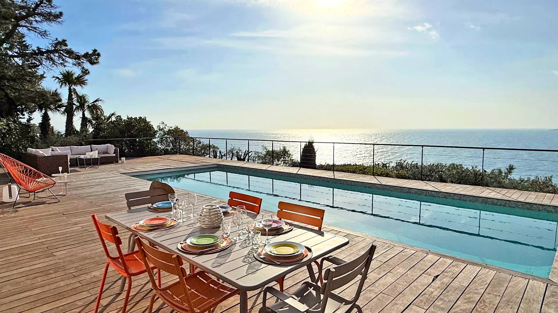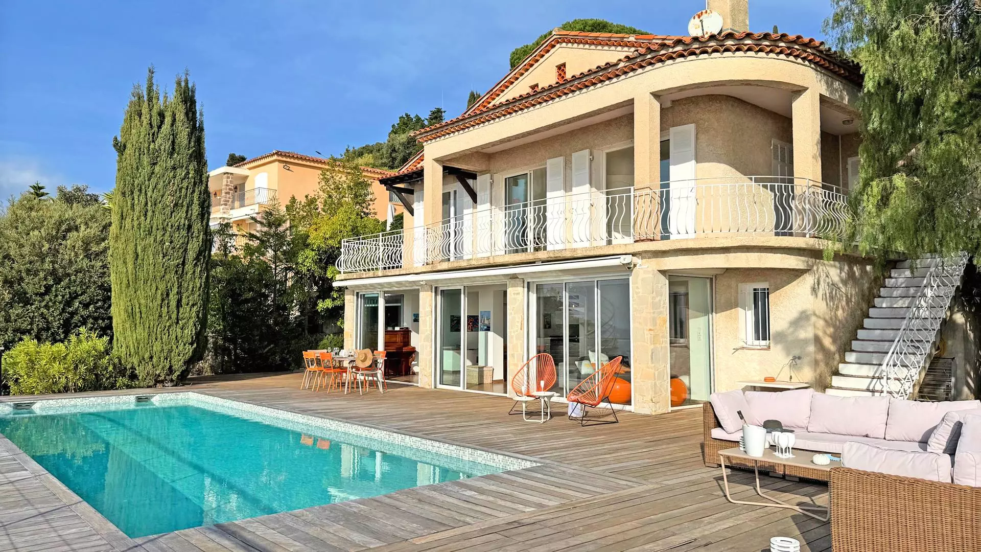Spacious family villa with 4 bedrooms and a beautiful swimming pool offering breathtaking sea views overlooking the tip of the Gulf of St Tropez. Ideally located close to the beach and the town centre of Les Issambres.