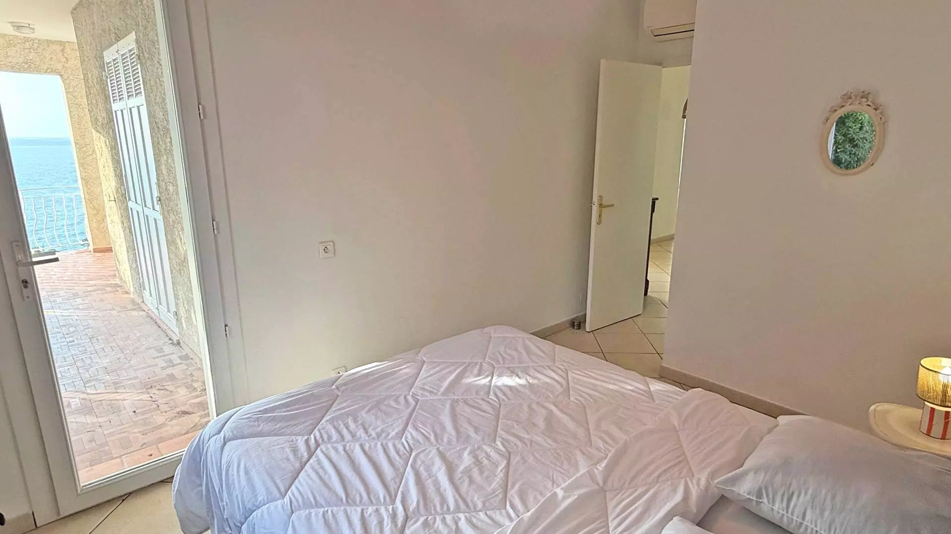 - Bedroom 2 - Sea view and access to terrace and pool - Air conditioning - 1 double bed (140cm) and storage