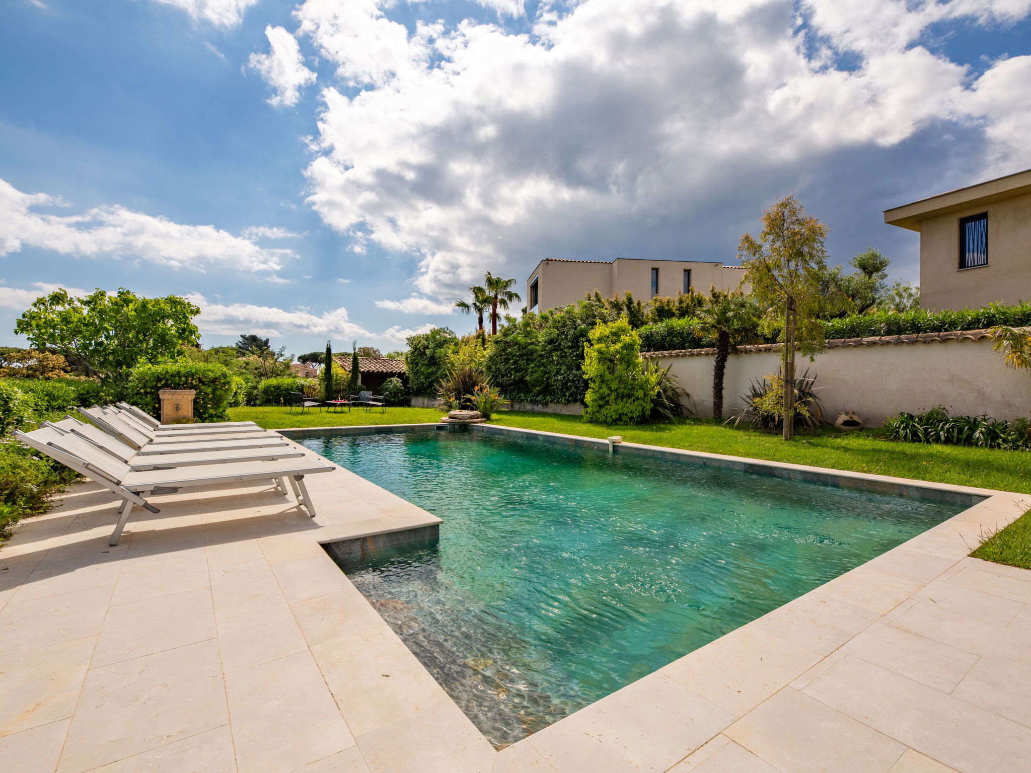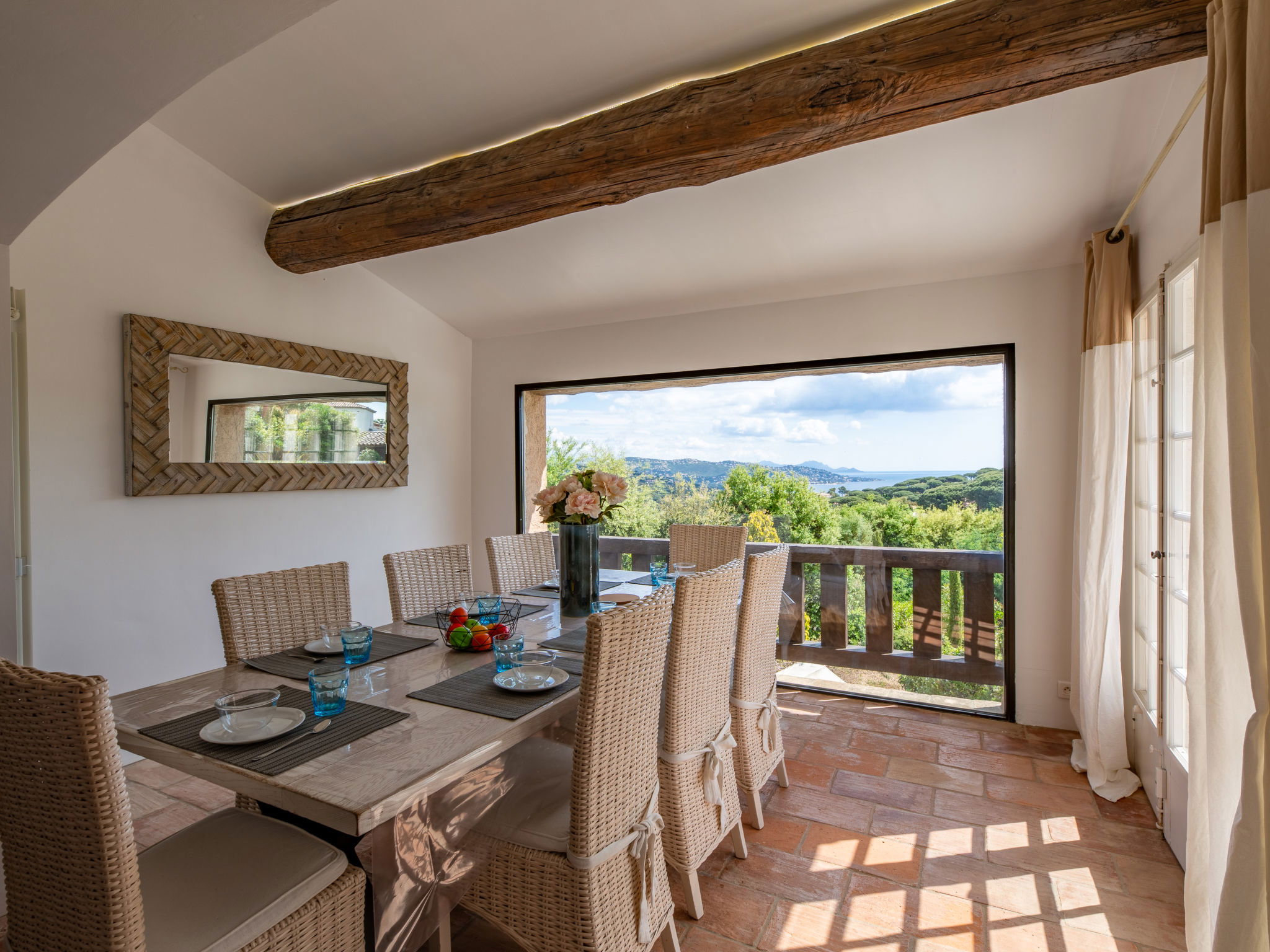 Very comfortable single-family house "La Canopée", 2 storeys. In the district of Sémaphore, in the resort 2 km from the centre of Sainte-Maxime, in a quiet position on top of a hill, in the residential district, 2 km from the sea, 2 km from the beach. Private: property 1'500 m2 (fenced) with flowers and trees, swimming pool (11 x 6 m, depth 220 cm, seasonal availability: 28.Mar. - 31.Oct.). Outdoor shower, pool house, table tennis, boules, terrace, garden furniture, barbecue, parking on the premises. Shop 2 km, supermarket 4 km, restaurant 2 km, bakery 2 km, pedestrian zone 2 km, railway station "TGV Saint-Raphael" 20 km, ferry "Les Bateaux Verts Saint-Tropez" 2 km, sandy beach 2 km, thermal baths "Thalasso Spa Les Issambres" 7 km. Sports harbour 2 km, golf course (18 hole) 5 km, tennis 4 km. Nearby attractions: Aqualand Waterpark 4 km, Saint-Tropez, Ramatuelle 16 km, Port-Grimaud 10 km, Gorges du Verdon 75 km, Navette / shuttle boat St-Tropez 15min 2 km. Hiking paths: Massif de l'Esterel 25 km, Massif des Maures 10 km. Please note: car recommended. Residence with electric gates. The keys‘ handover takes place by the agency in Sainte-Maxime.