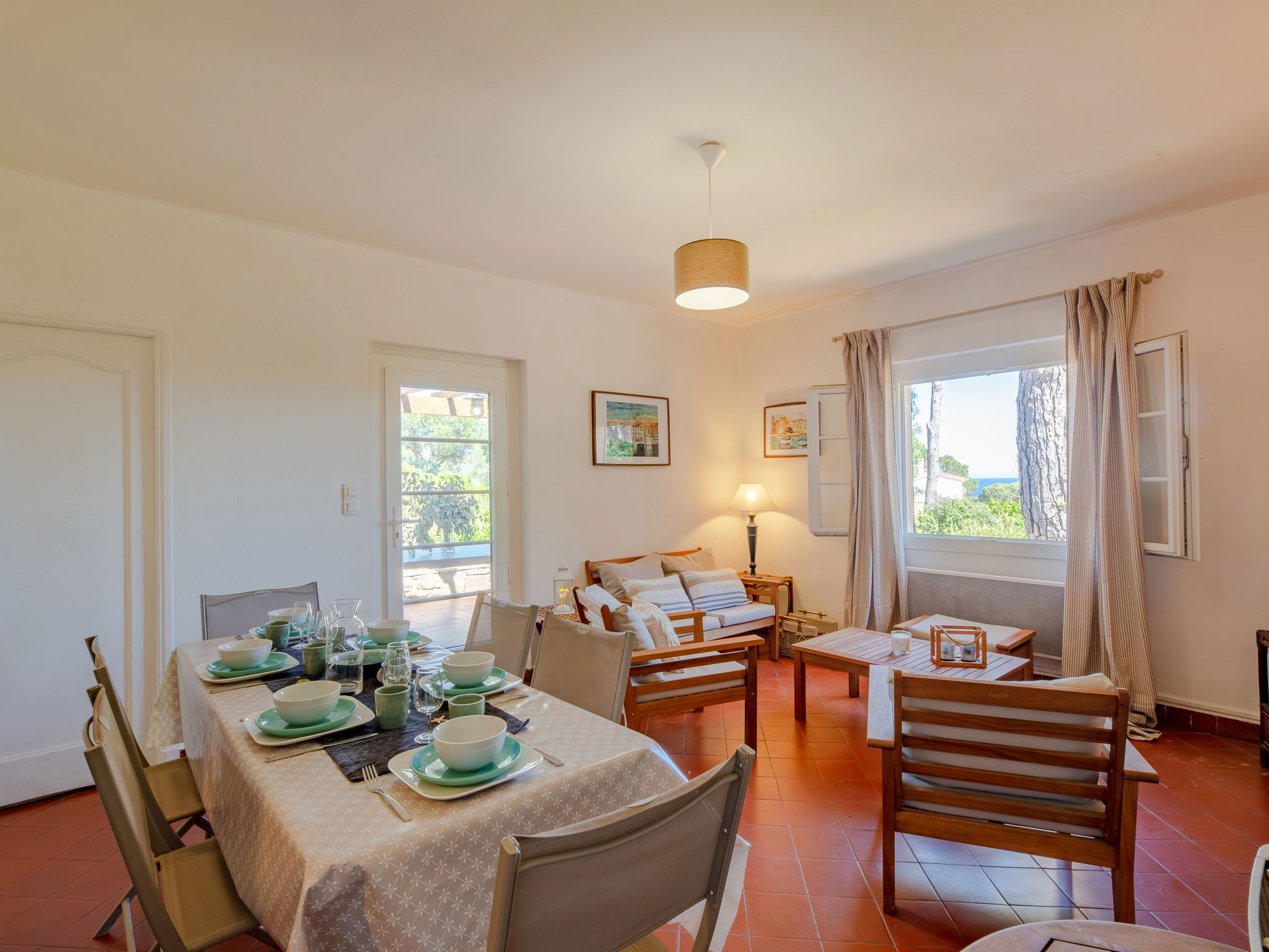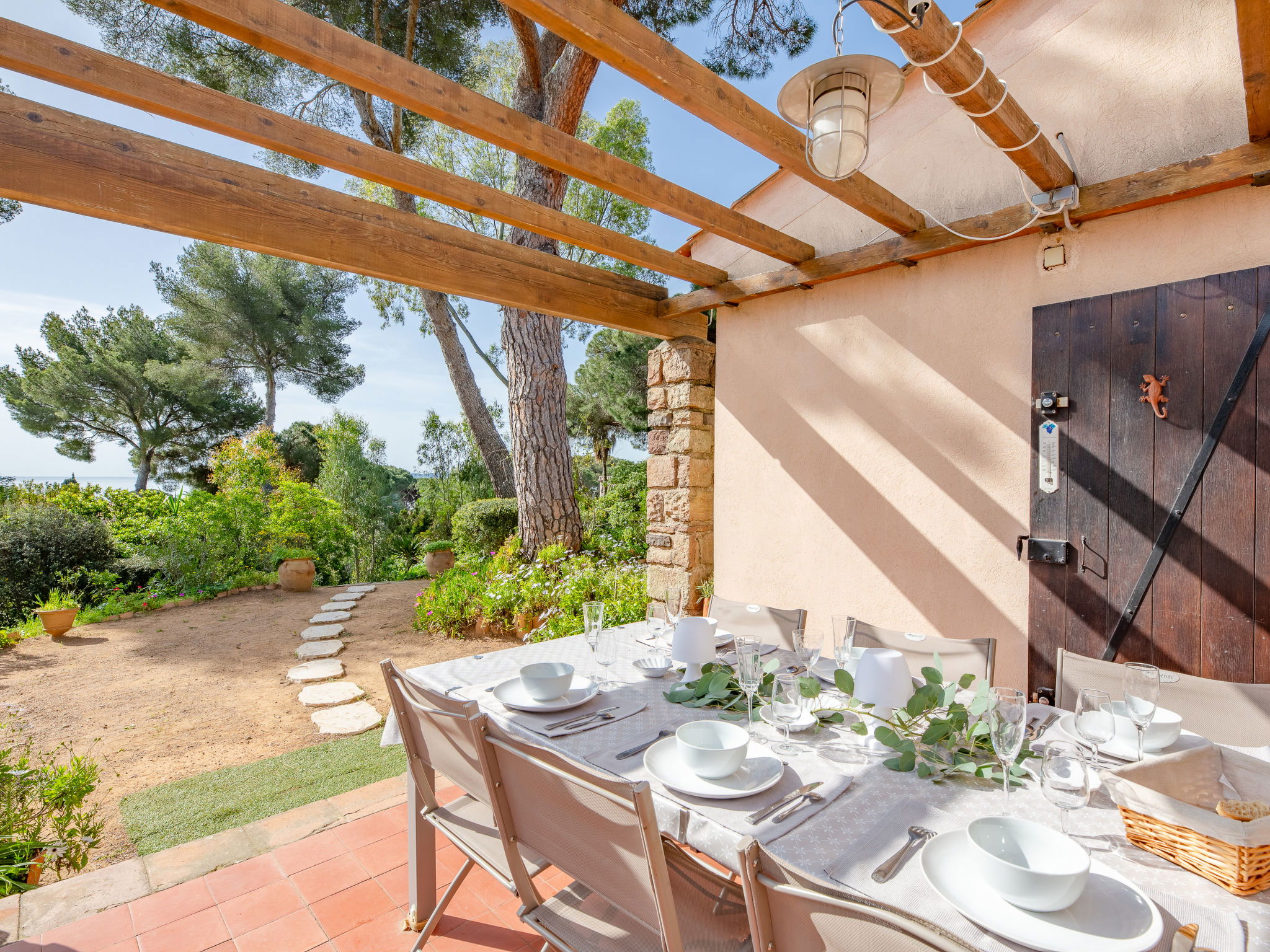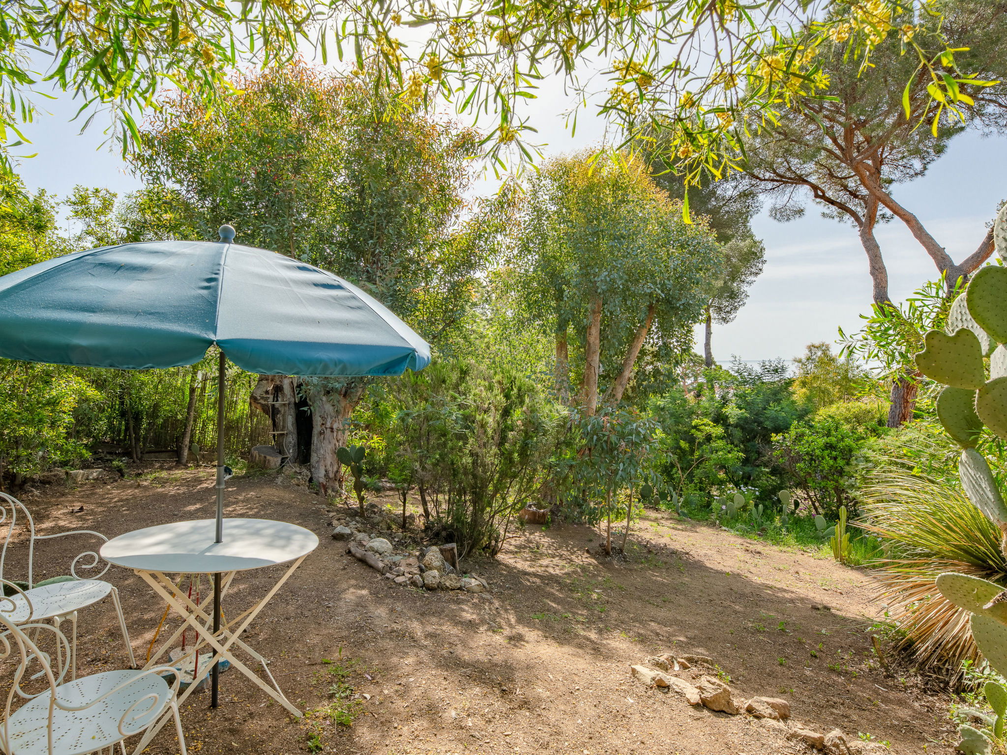 Single-family house "La Treille", surrounded by trees. In the district of Le Saut du Loup, outside the resort, 2 km from the centre of Les Issambres, in a quiet, sunny position on top of a hill, 300 m from the sea, 900 m from the beach, in the countryside, south facing position. Private: natural state property 1'200 m2 (fenced), garden with wildlife garden and flowers. Terrace, garden furniture, single garage, public parking on the road. Shop 1.5 km, grocery 1 km, supermarket 1 km, restaurant 800 m, bakery 1.5 km, bus stop 1 km, railway station "Saint-Raphael TGV" 20 km, sandy beach "La Garonnette" 900 m, thermal baths "Thalasso les Issambres" 1 km. Sports harbour 1.5 km, golf course (18 hole) 4 km, tennis 4 km. Nearby attractions: Aqualand waterpark 7 km, Azur Park attractions 16 km, Saint-Tropez/Ramatuelle 16 km, Port-Grimaud 12 km, Gorges du Verdon 95 km, Navette / shuttle boat St-Tropez 15min 1.5 km. Hiking paths: Massif des Maures 5 km, Massif de l'Esterel 25 km. Please note: car recommended. The owner does not accept any youth groups. The keys‘ handover takes place by the agency in Sainte Maxime, 5 km. Airfield 70 km from the property.