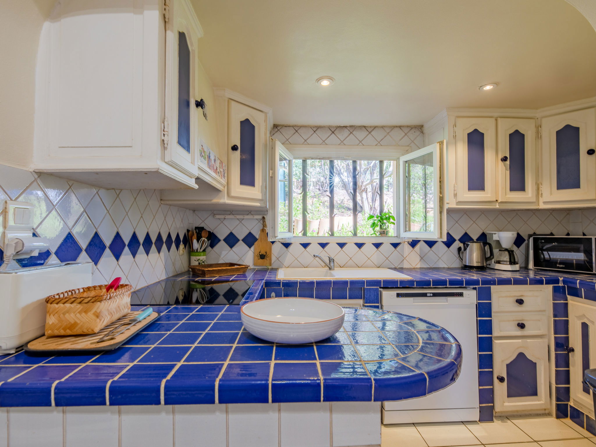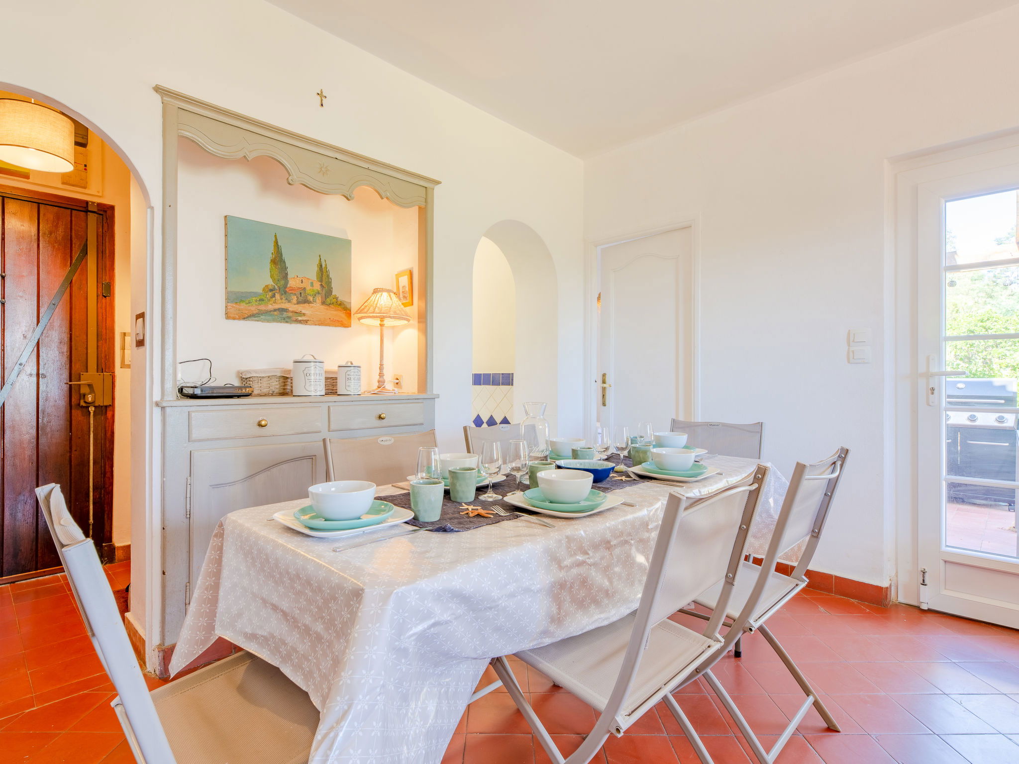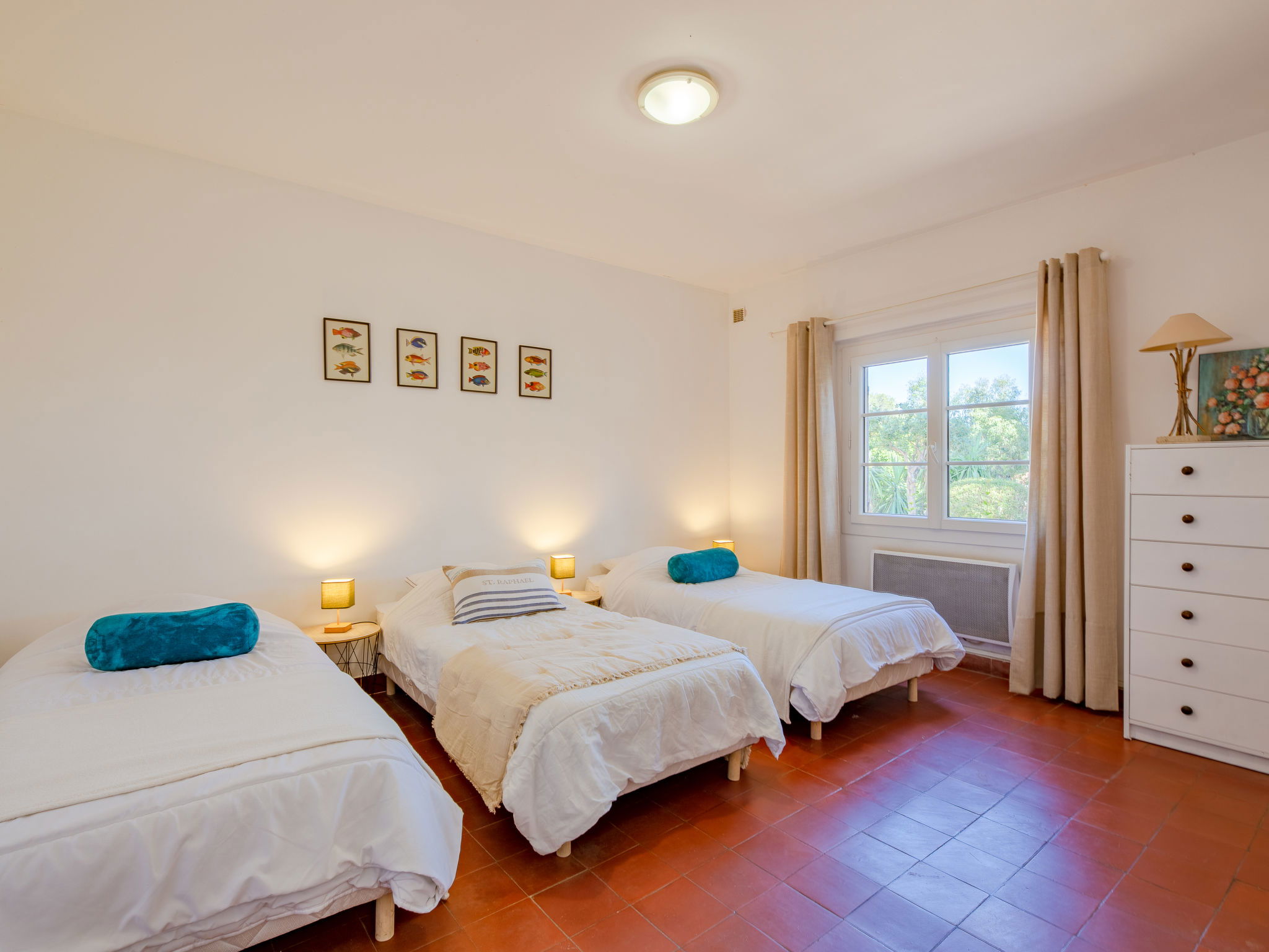 Single-family house "La Treille", surrounded by trees. In the district of Le Saut du Loup, outside the resort, 2 km from the centre of Les Issambres, in a quiet, sunny position on top of a hill, 300 m from the sea, 900 m from the beach, in the countryside, south facing position. Private: natural state property 1'200 m2 (fenced), garden with wildlife garden and flowers. Terrace, garden furniture, single garage, public parking on the road. Shop 1.5 km, grocery 1 km, supermarket 1 km, restaurant 800 m, bakery 1.5 km, bus stop 1 km, railway station "Saint-Raphael TGV" 20 km, sandy beach "La Garonnette" 900 m, thermal baths "Thalasso les Issambres" 1 km. Sports harbour 1.5 km, golf course (18 hole) 4 km, tennis 4 km. Nearby attractions: Aqualand waterpark 7 km, Azur Park attractions 16 km, Saint-Tropez/Ramatuelle 16 km, Port-Grimaud 12 km, Gorges du Verdon 95 km, Navette / shuttle boat St-Tropez 15min 1.5 km. Hiking paths: Massif des Maures 5 km, Massif de l'Esterel 25 km. Please note: car recommended. The owner does not accept any youth groups. The keys‘ handover takes place by the agency in Sainte Maxime, 5 km. Airfield 70 km from the property.