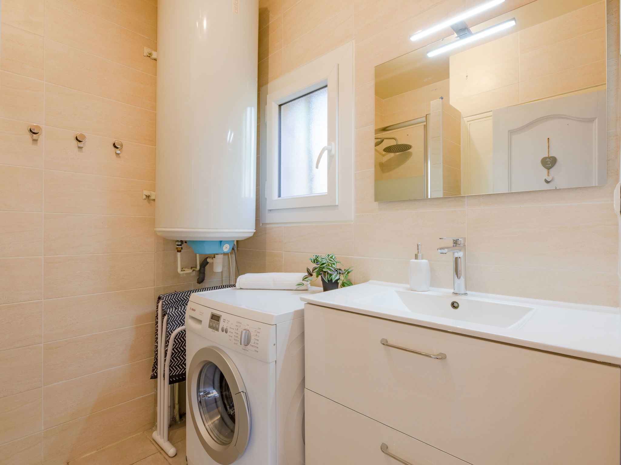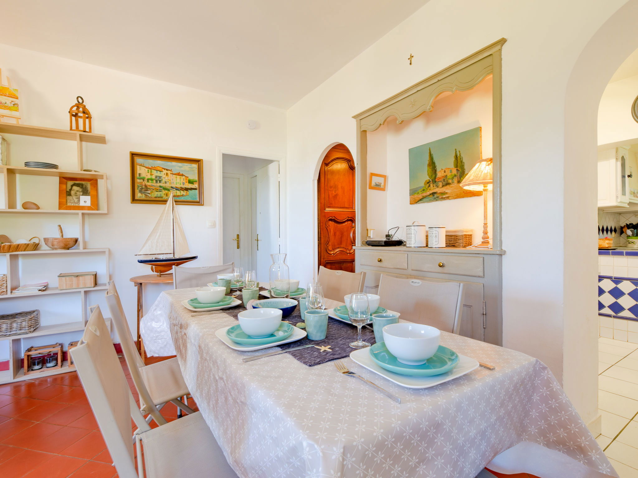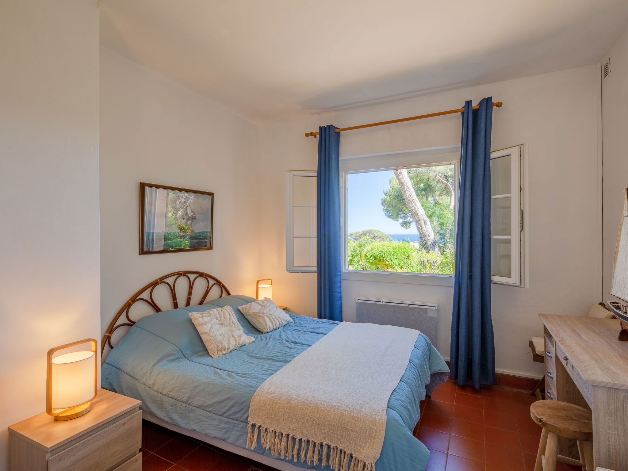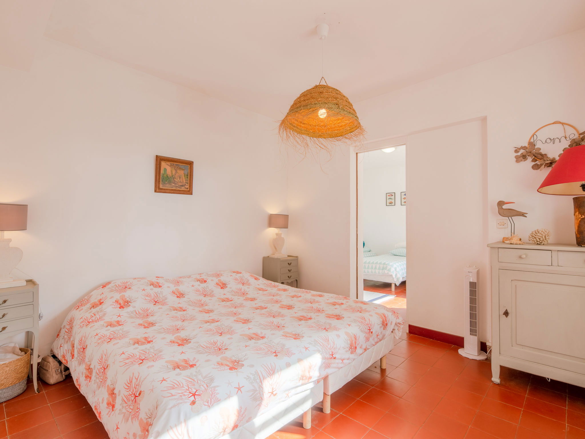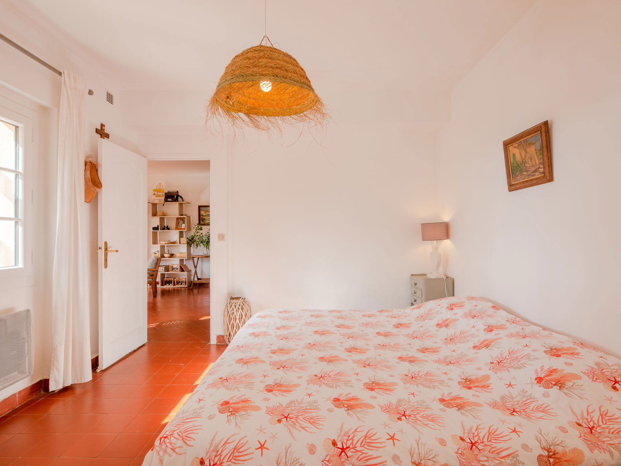 4-room house 75 m2. Beautiful furnishings: living/dining room with TV (flat screen). Exit to the garden, to the terrace. Walk-through room with 2 beds (90 cm, length 190 cm). 1 room with 2 beds (90 cm, length 190 cm). 1 room with 1 double bed (140 cm, length 190 cm). Open kitchen (oven, dishwasher, 3 induction hot plates, toaster, kettle, freezer, electric coffee machine). Shower, sep. WC. Electric heating. Terrace 15 m2, south facing position. Terrace furniture. View of the sea. Facilities: washing machine, iron, hair dryer. Internet (WiFi, free). Garage on the property. Please note: non-smoking house. Smoke alarm. Accommodation not suitable for people with reduced mobility. Offer by a private individual according to Art. 155, IV of CGI. 83115005132JD