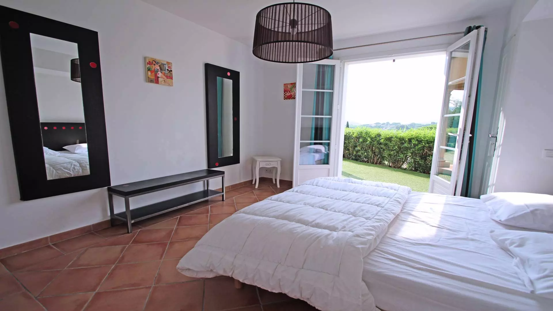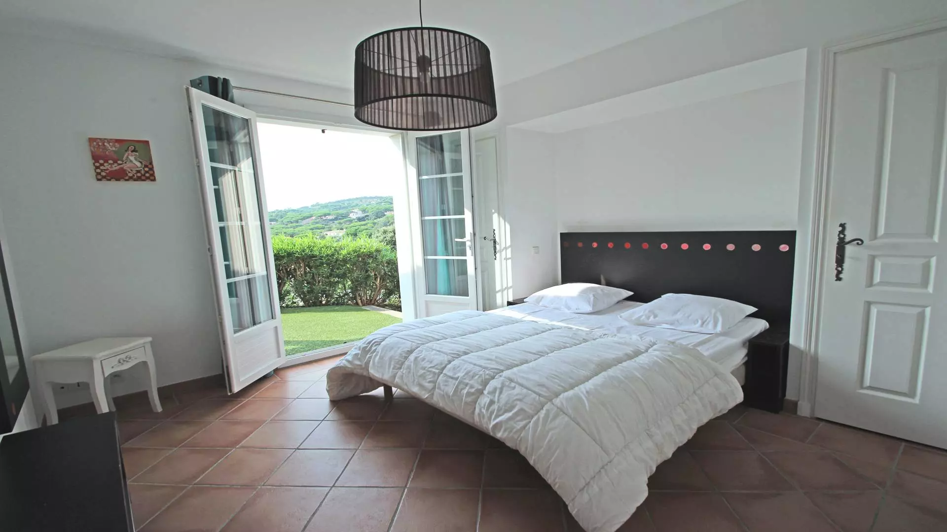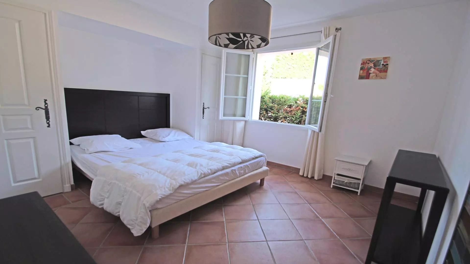 - Air-conditioned master suite (160cm) with bathroom (bath + shower) and WC, closet - Access to terrace and swimming pool